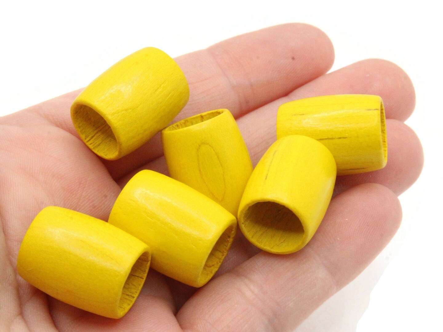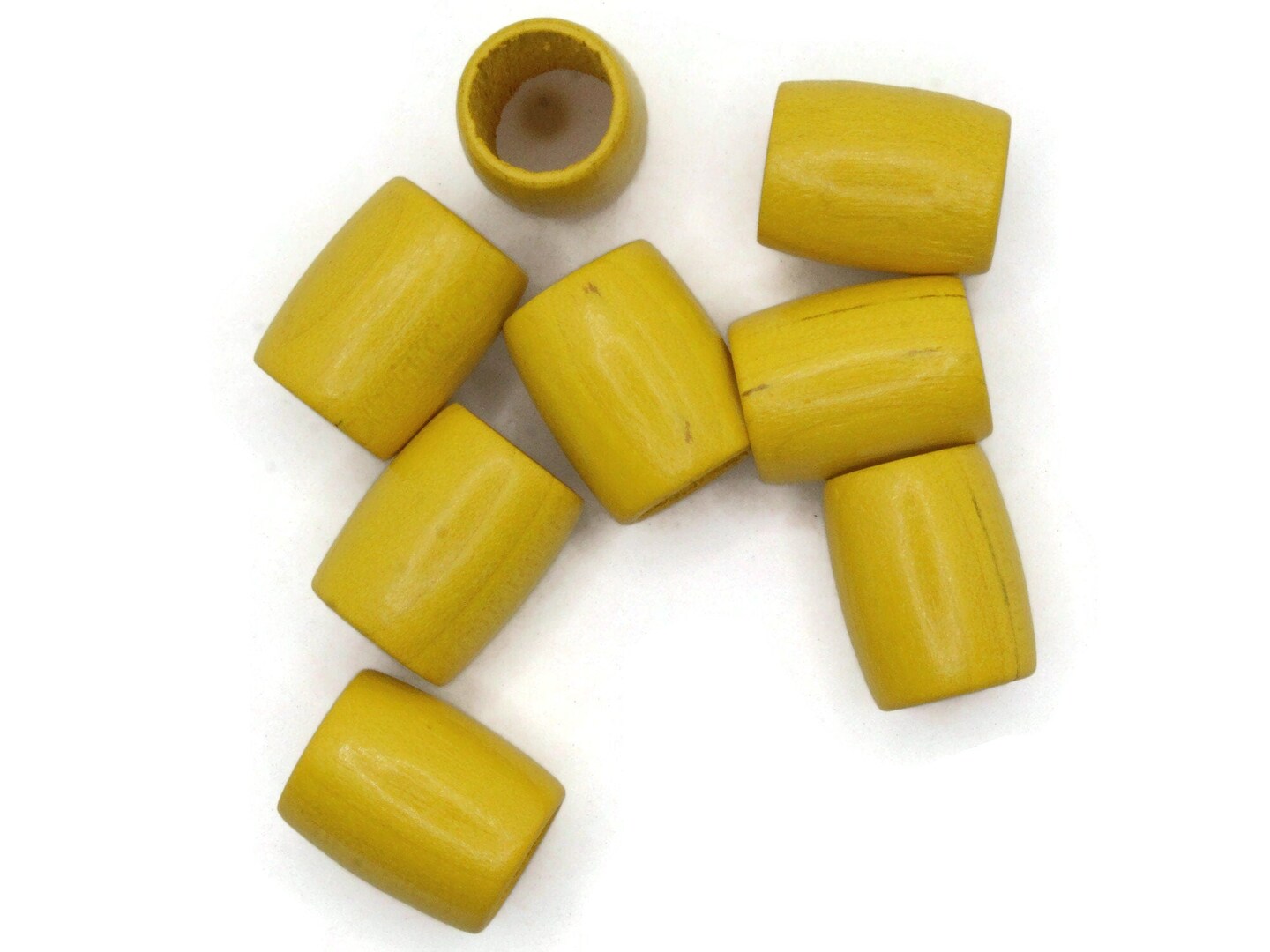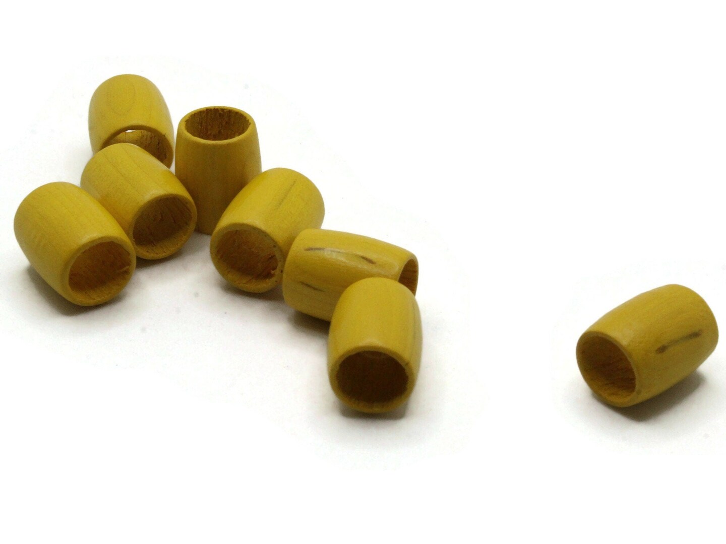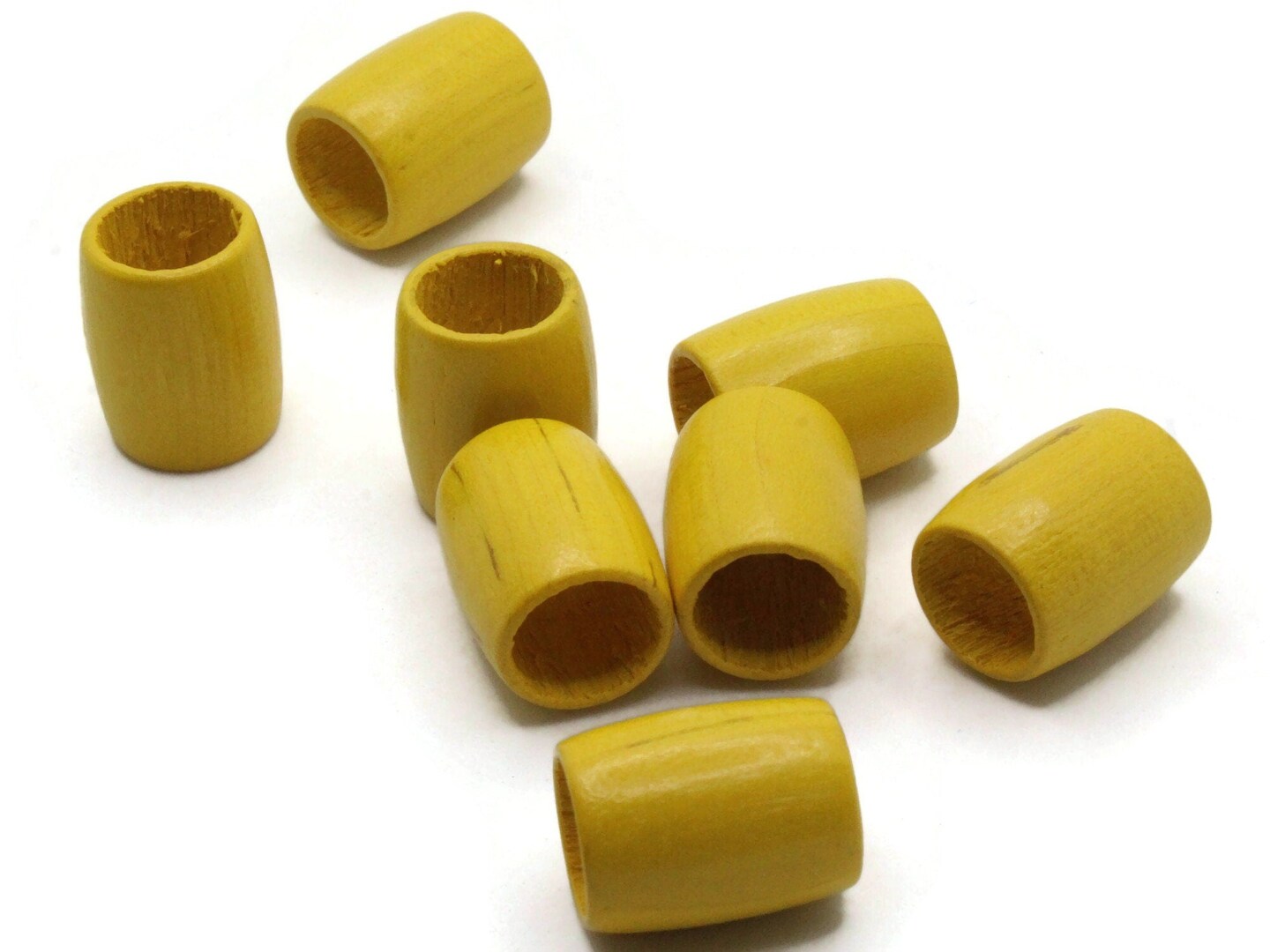 8 19mm x 15mm Yellow Vintage Wood Large Hole Tube Beads