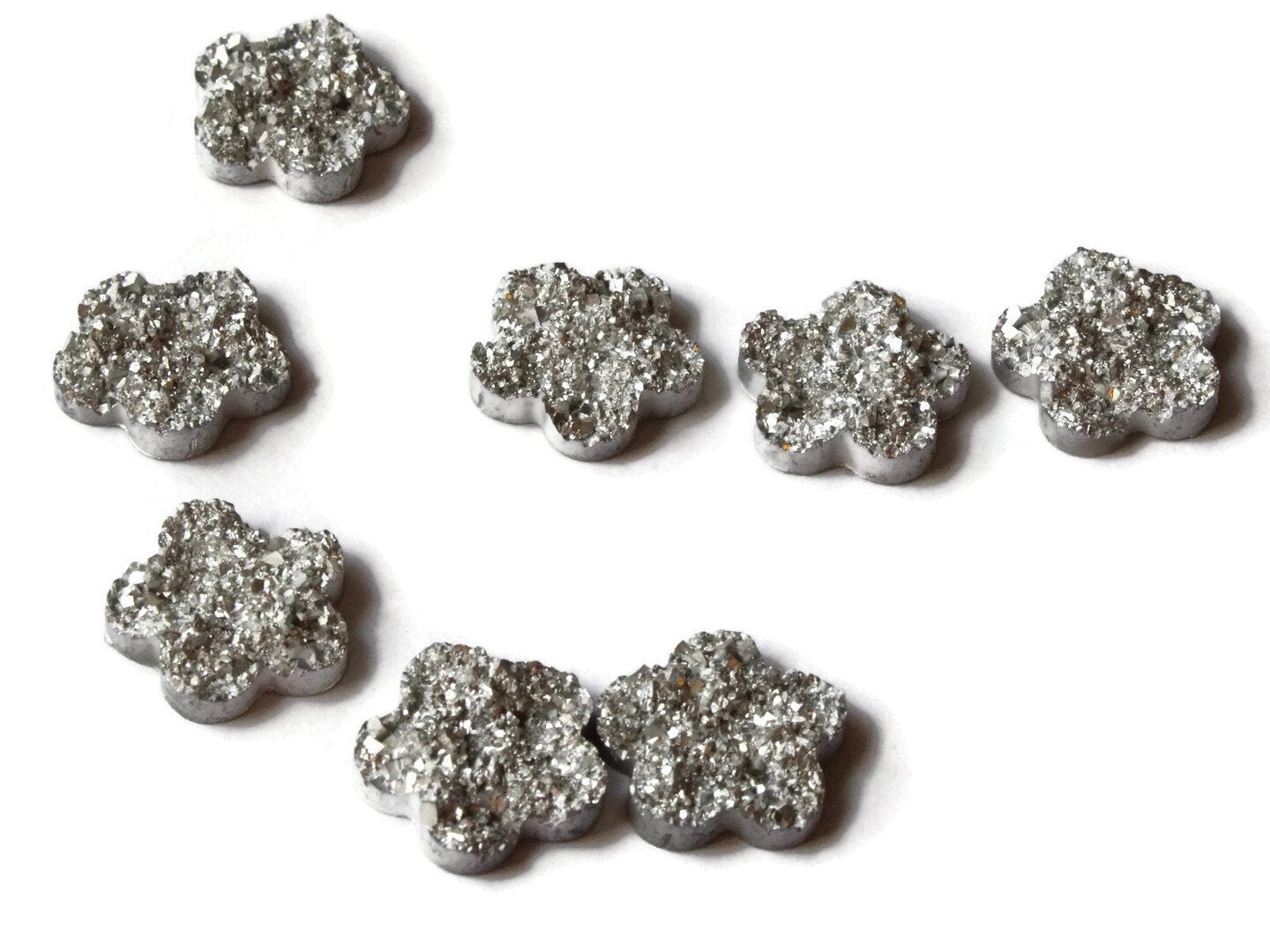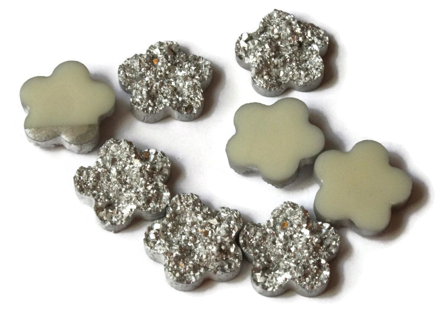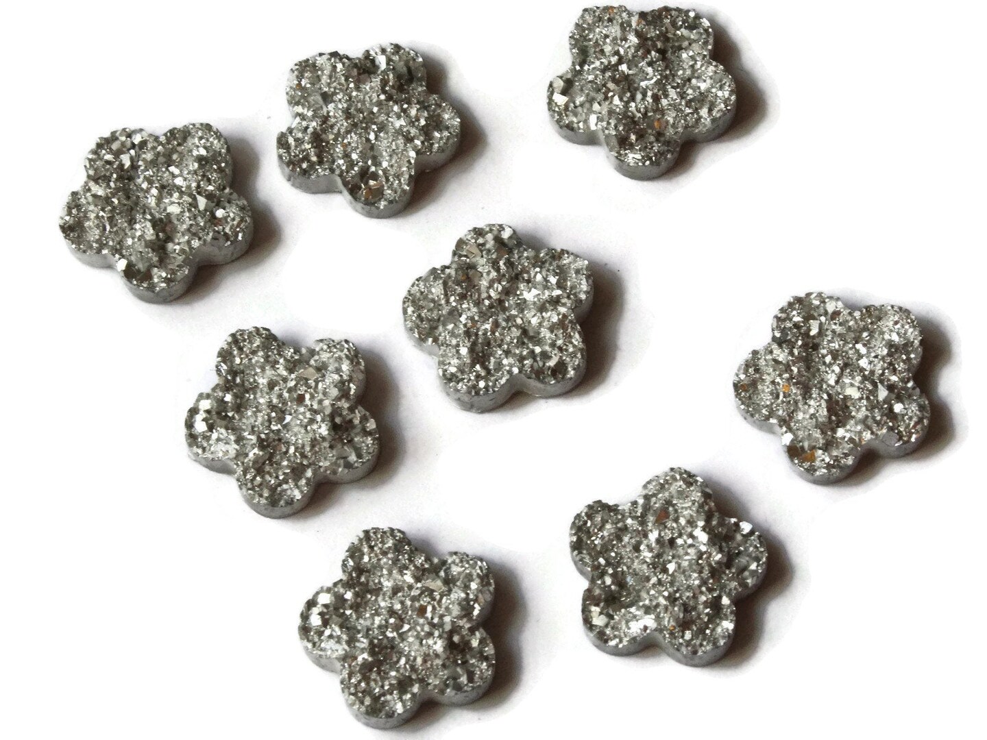 8 20mm Flower Silver Faux Druzy Resin Cabochons
