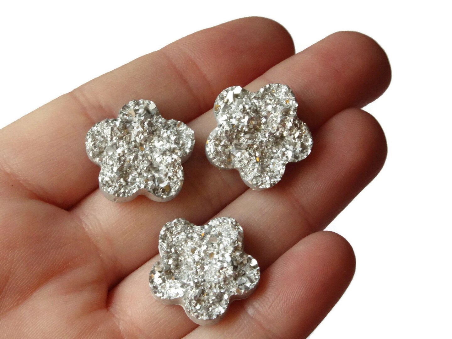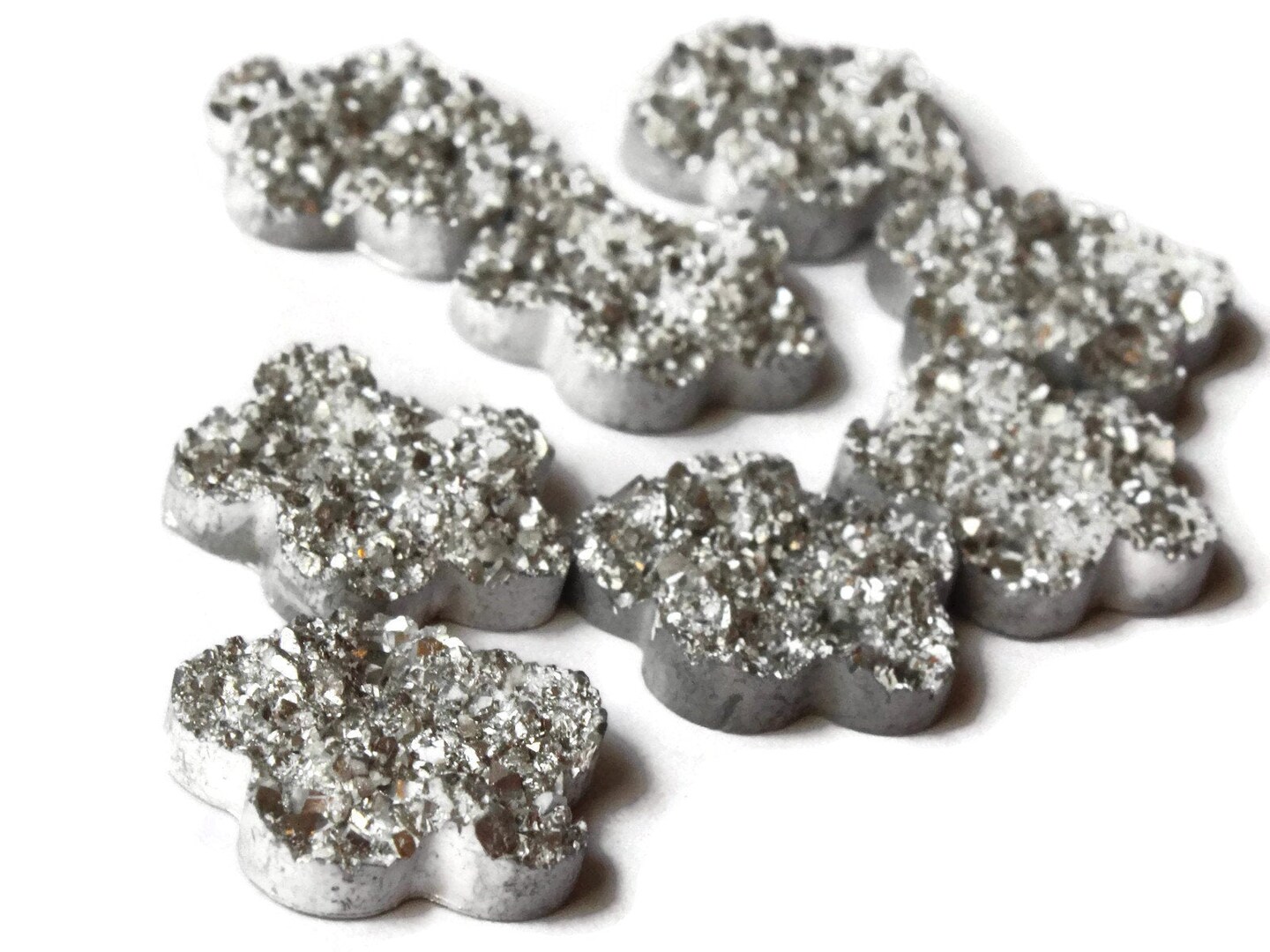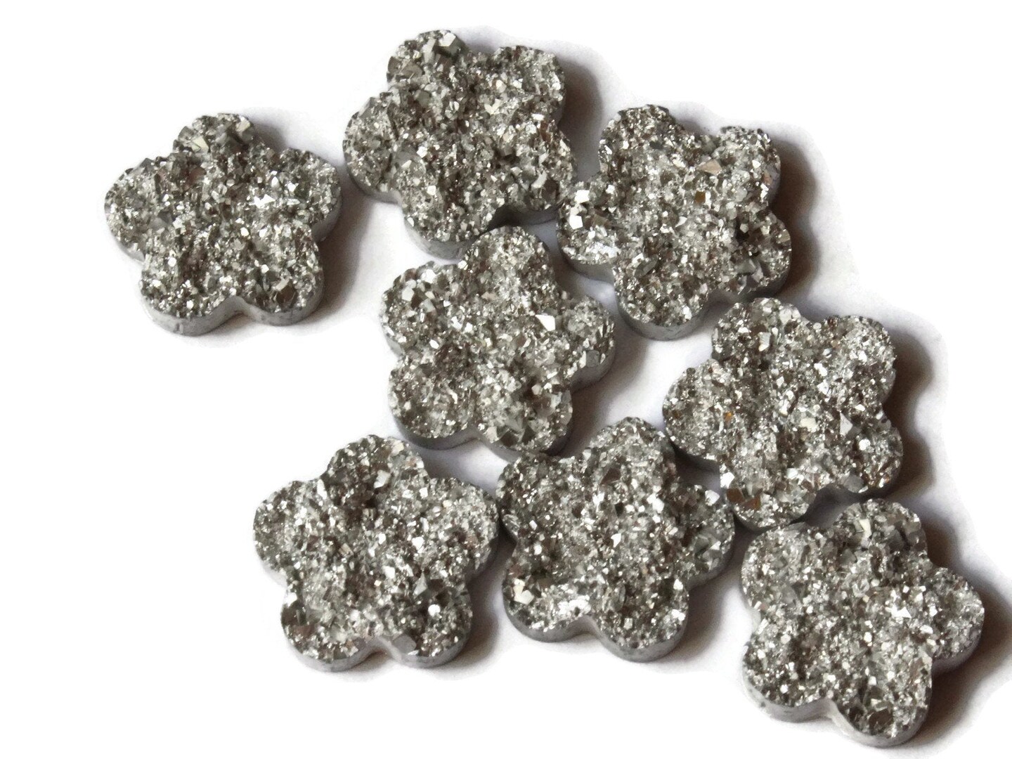 8 20mm Flower Silver Faux Druzy Resin Cabochons