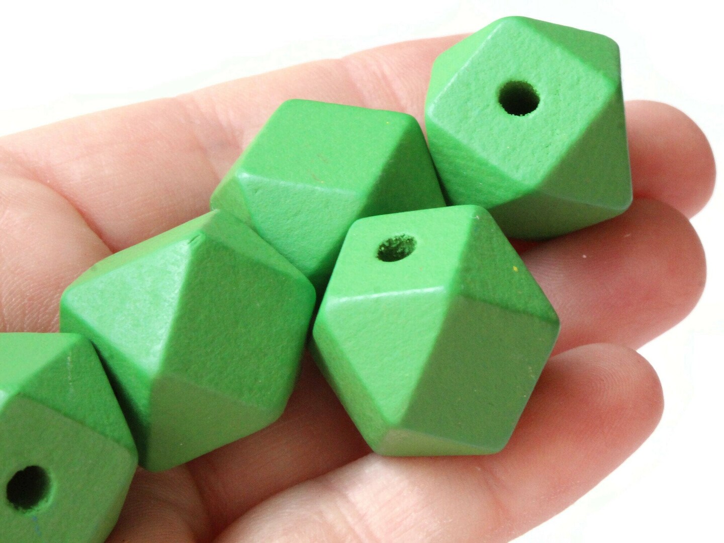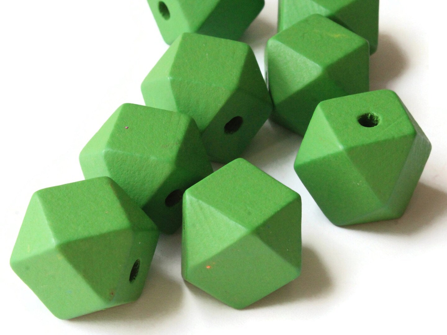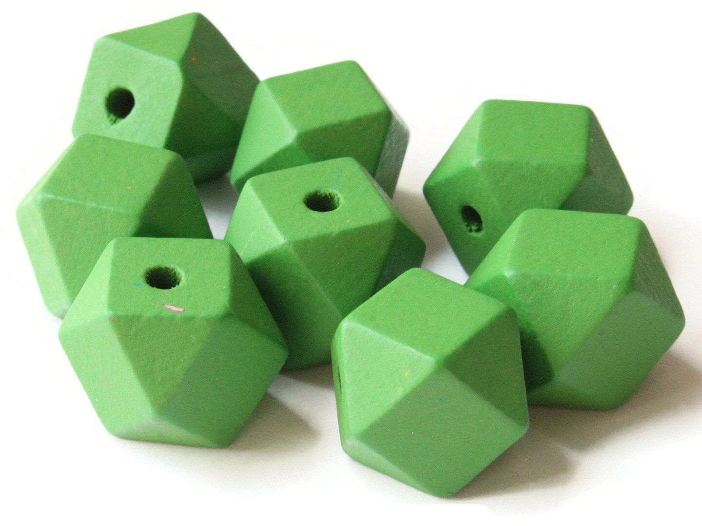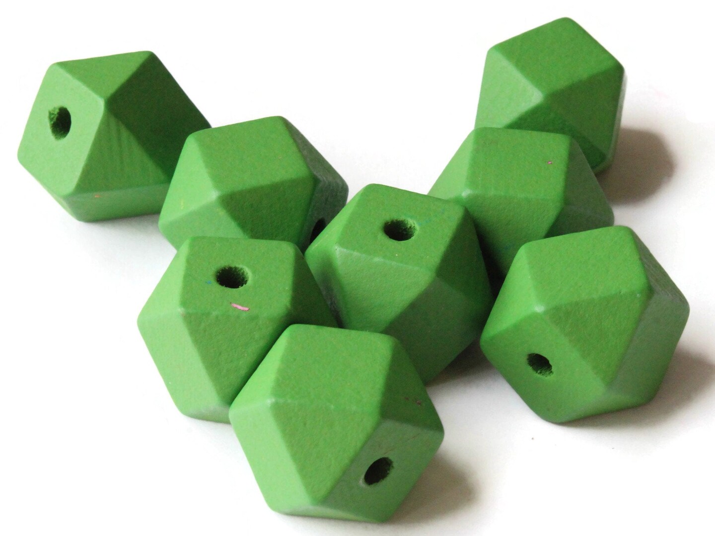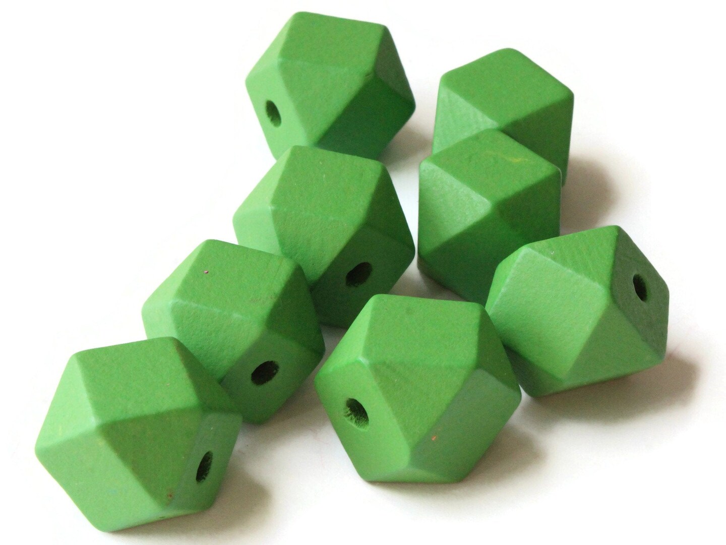 8 20mm Green Wood Faceted Cube Beads