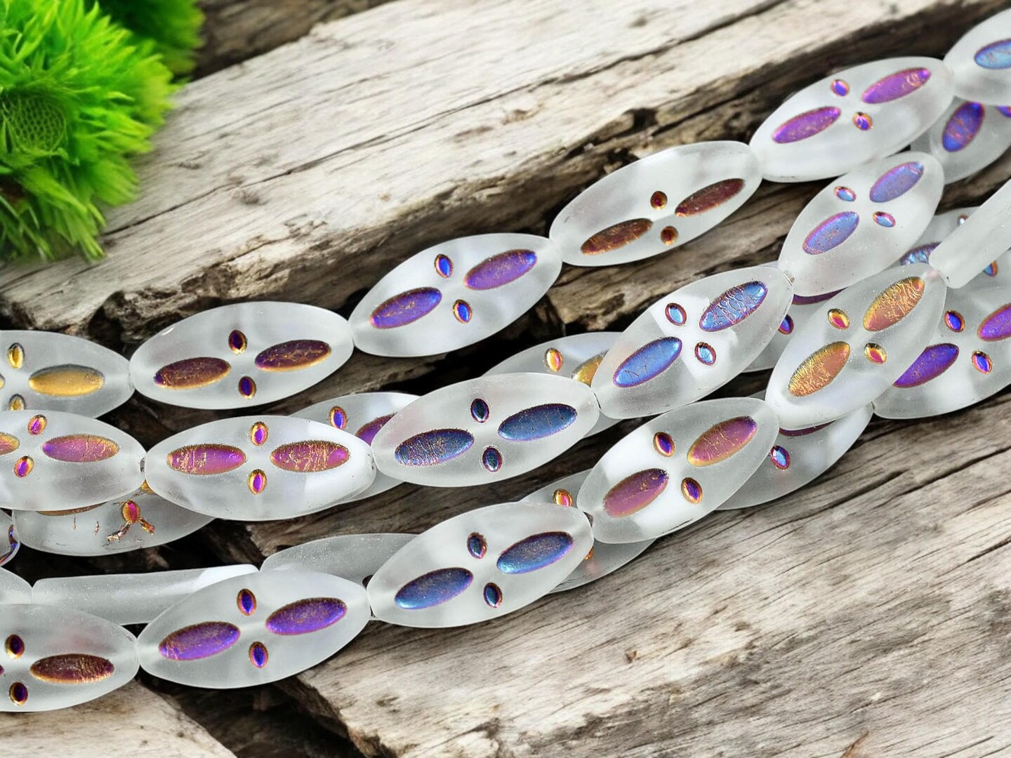 *8* 20x9mm Metallic Volcano Washed Matte White Crystal Cloud Marquise Oval Beads
