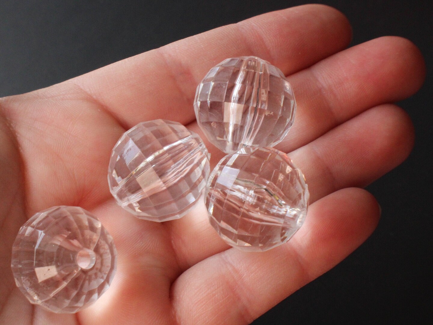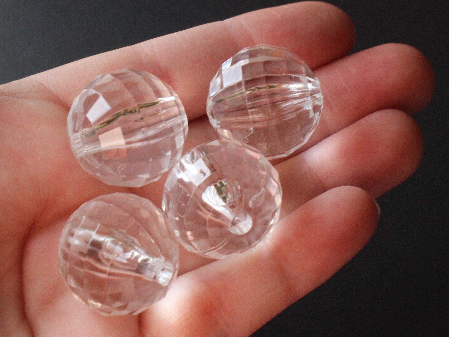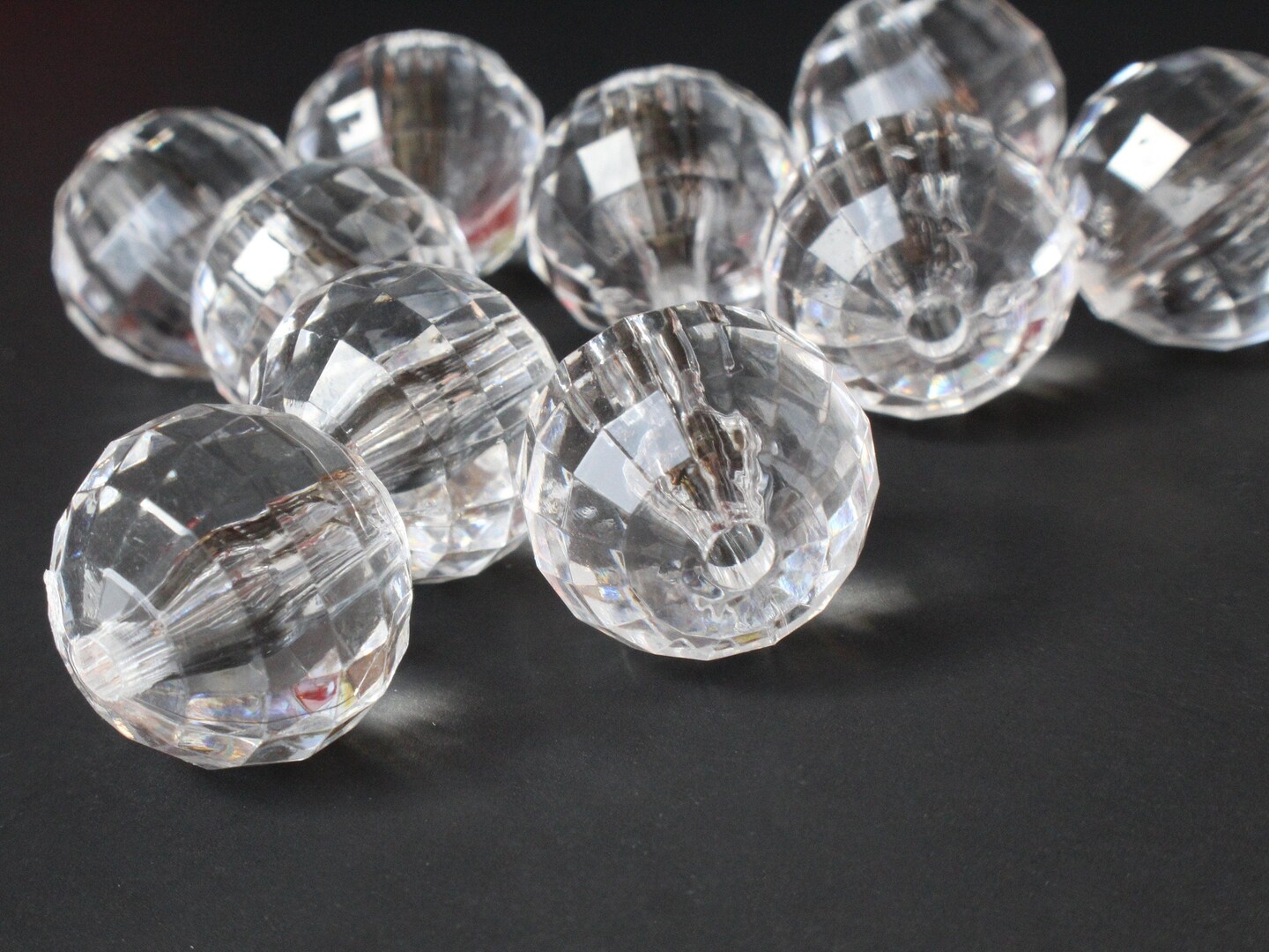 8 22mm Clear Faceted Acrylic Round Beads