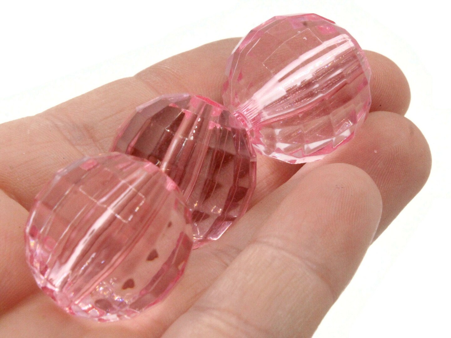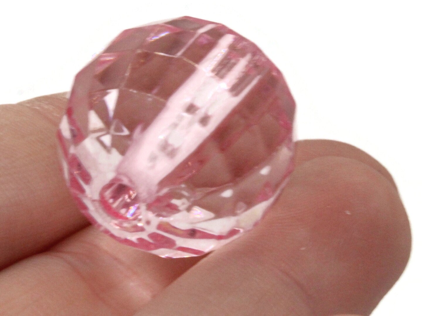 8 22mm Clear Light Pink Faceted Round Acrylic Beads