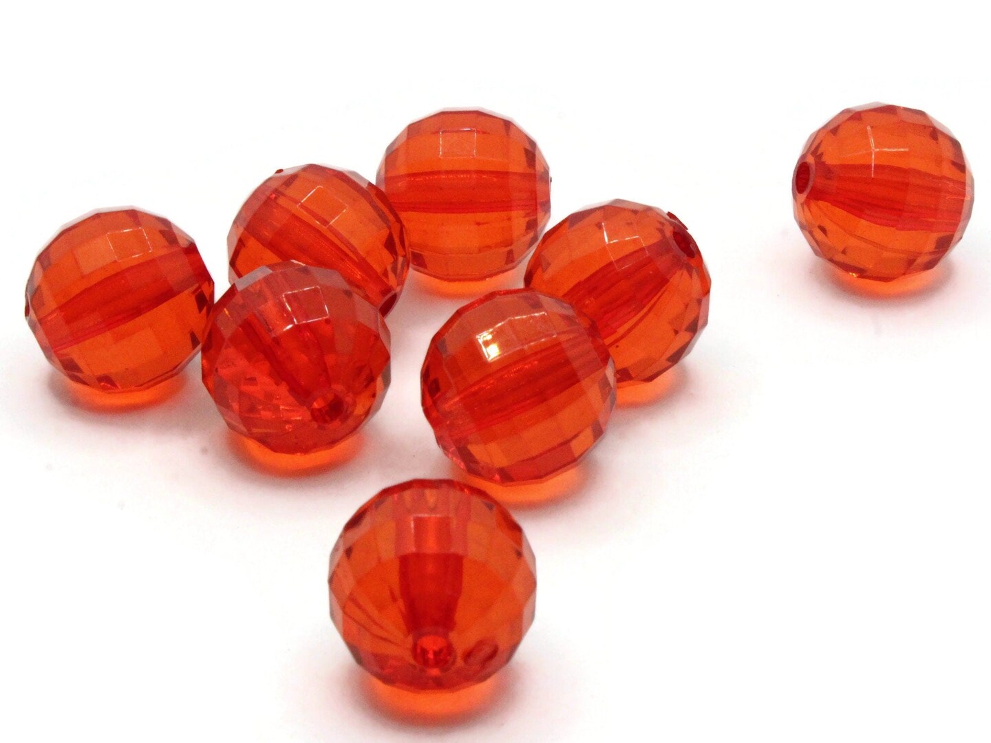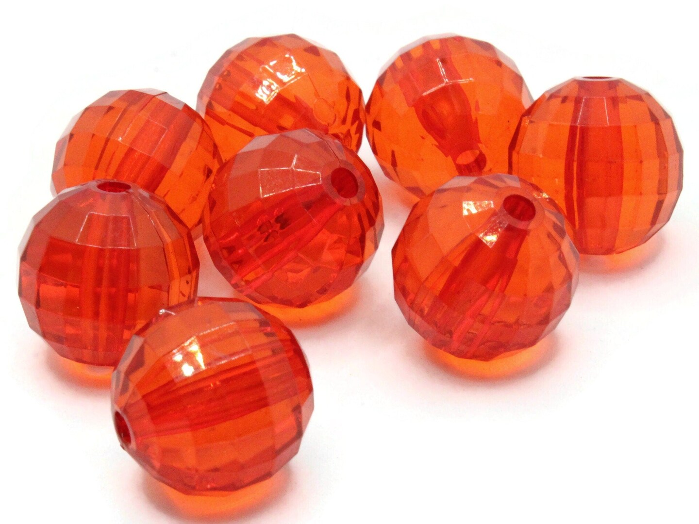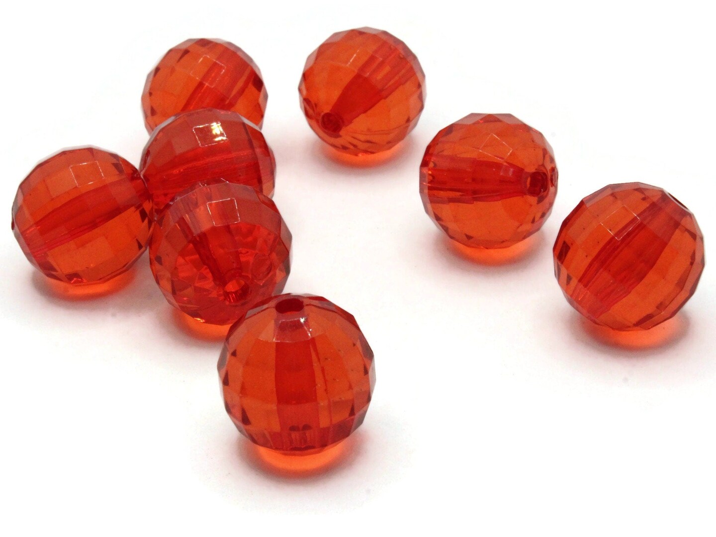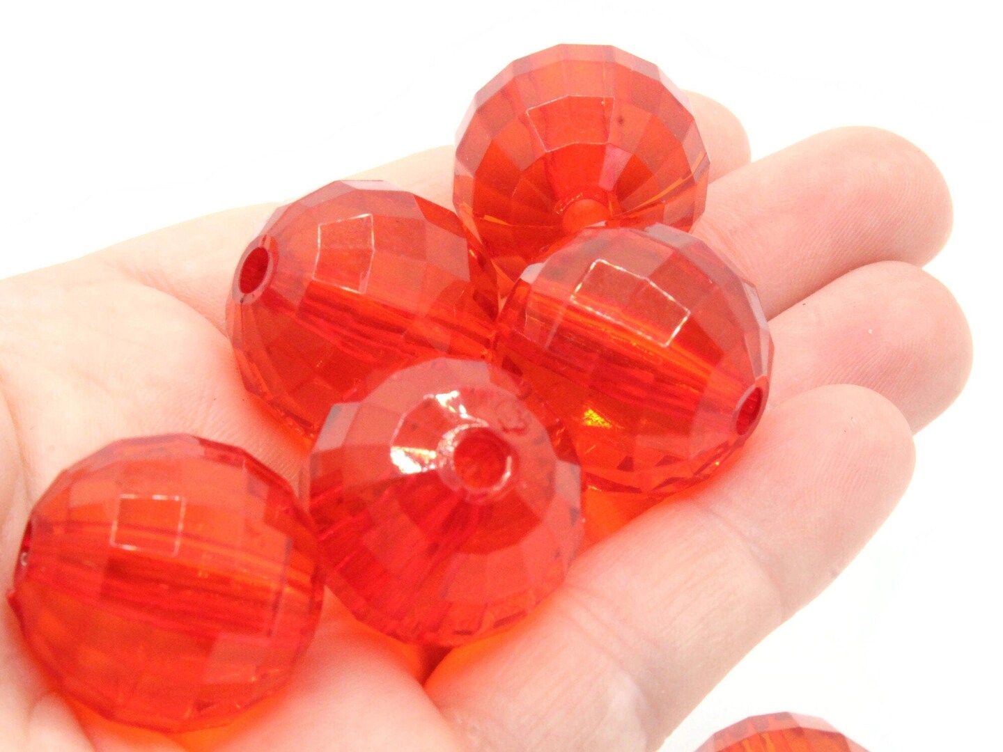 8 22mm Clear Red Faceted Round Acrylic Beads