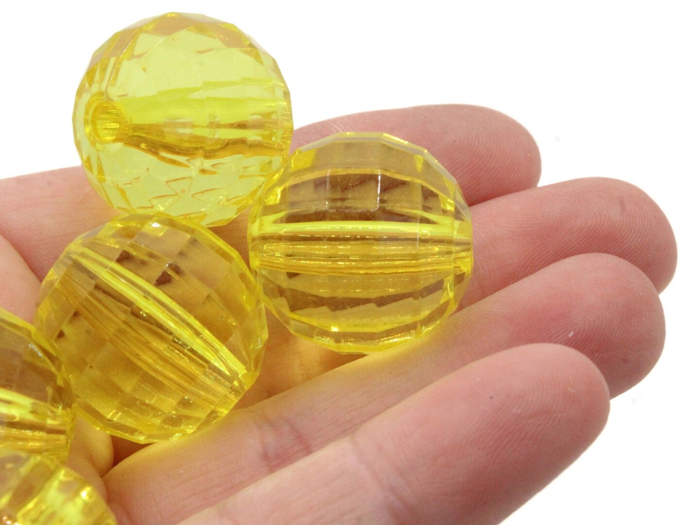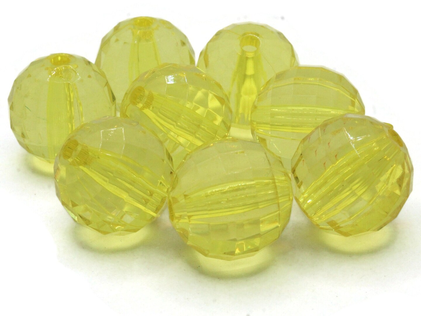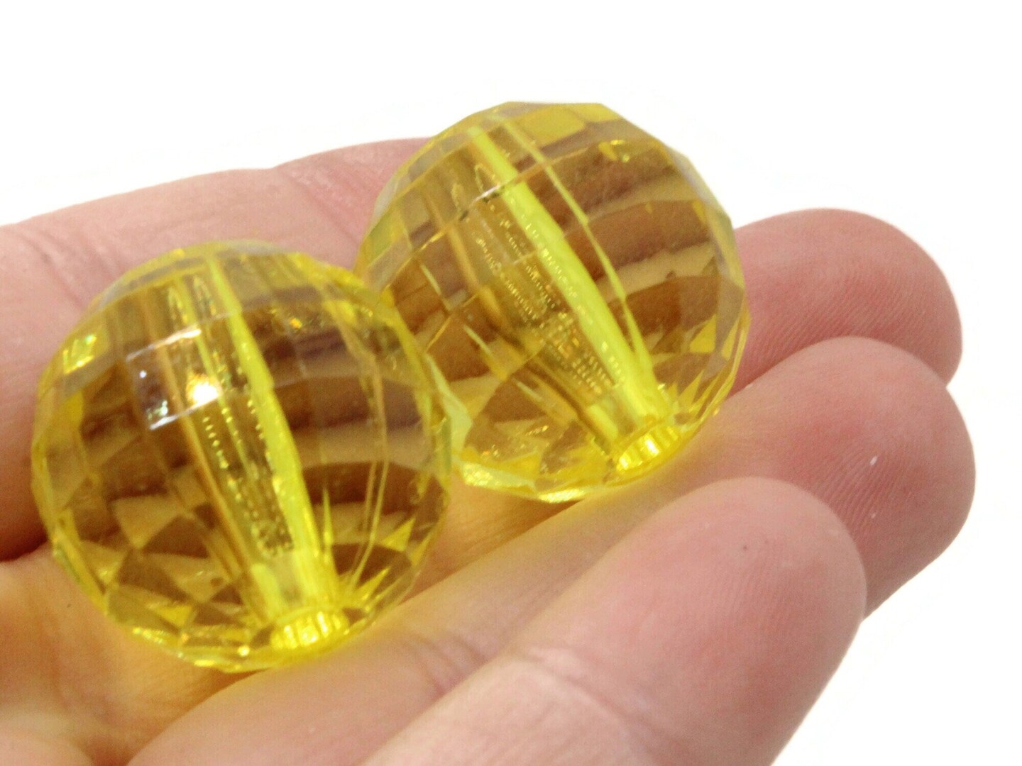 8 22mm Clear Yellow Faceted Round Acrylic Beads