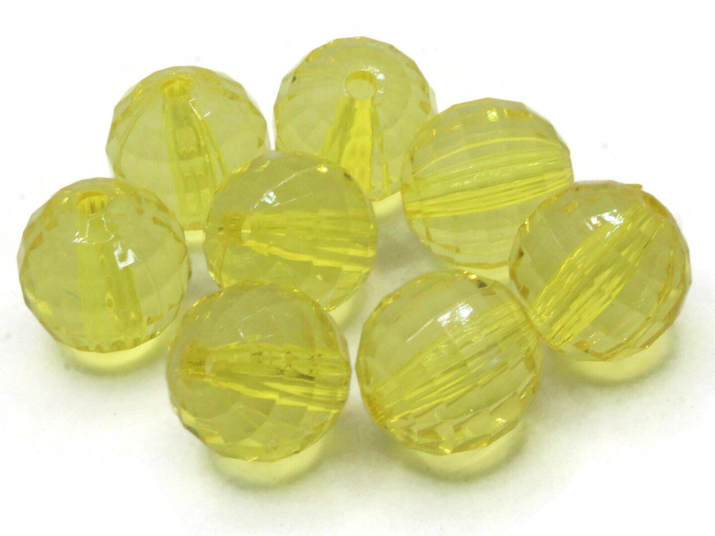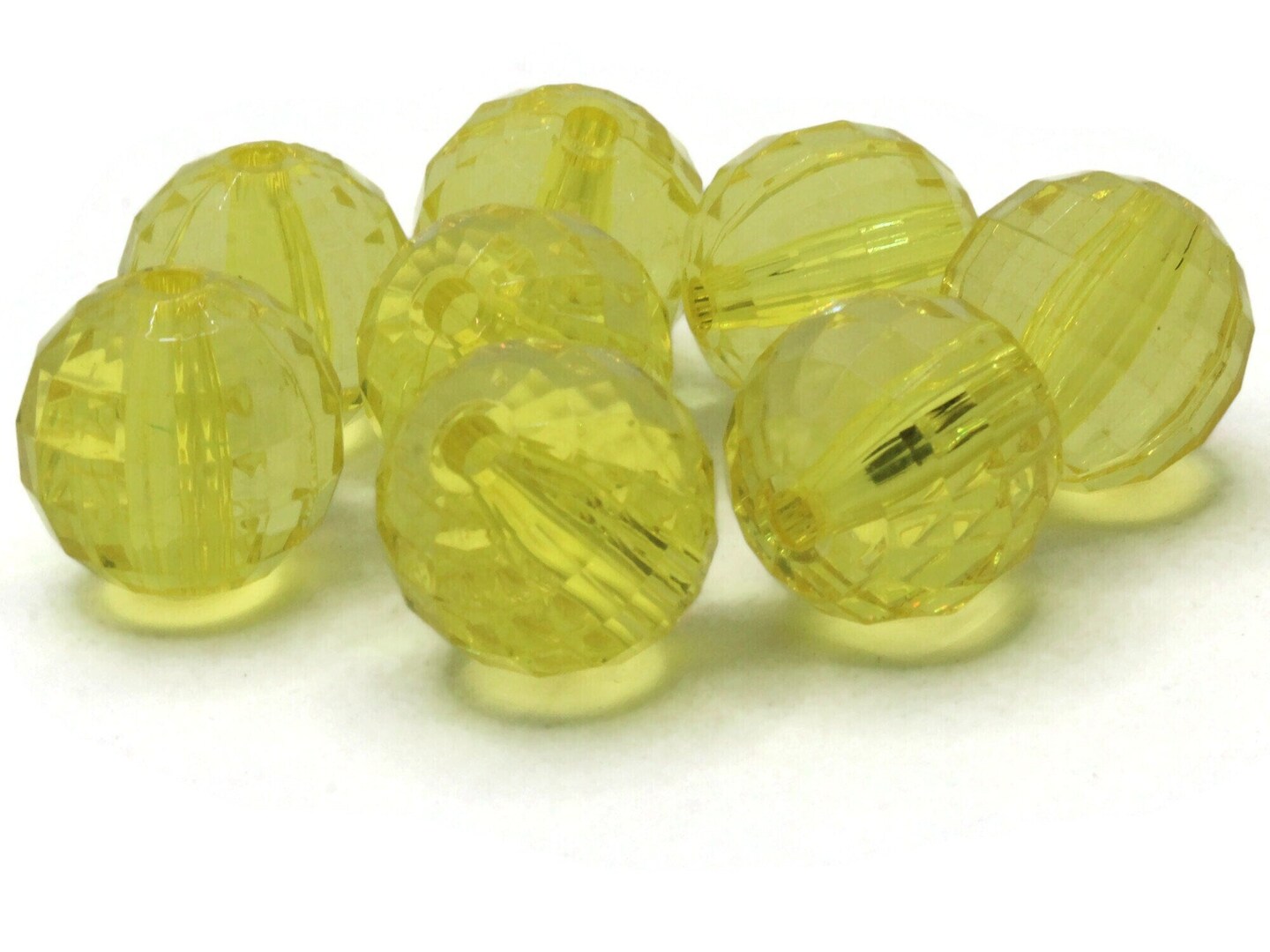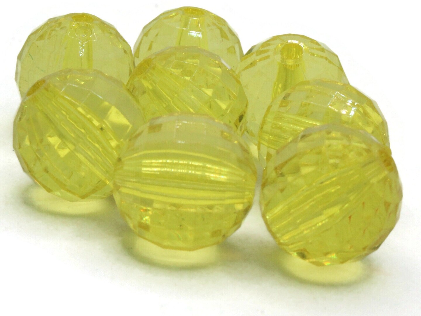 8 22mm Clear Yellow Faceted Round Acrylic Beads