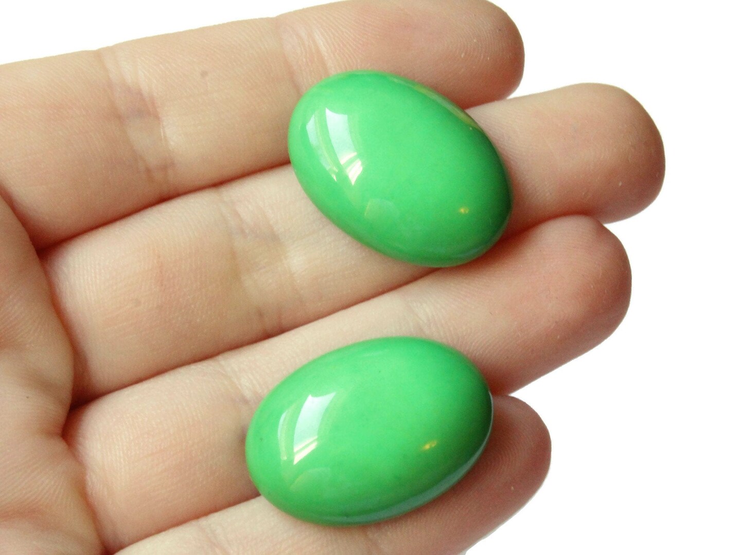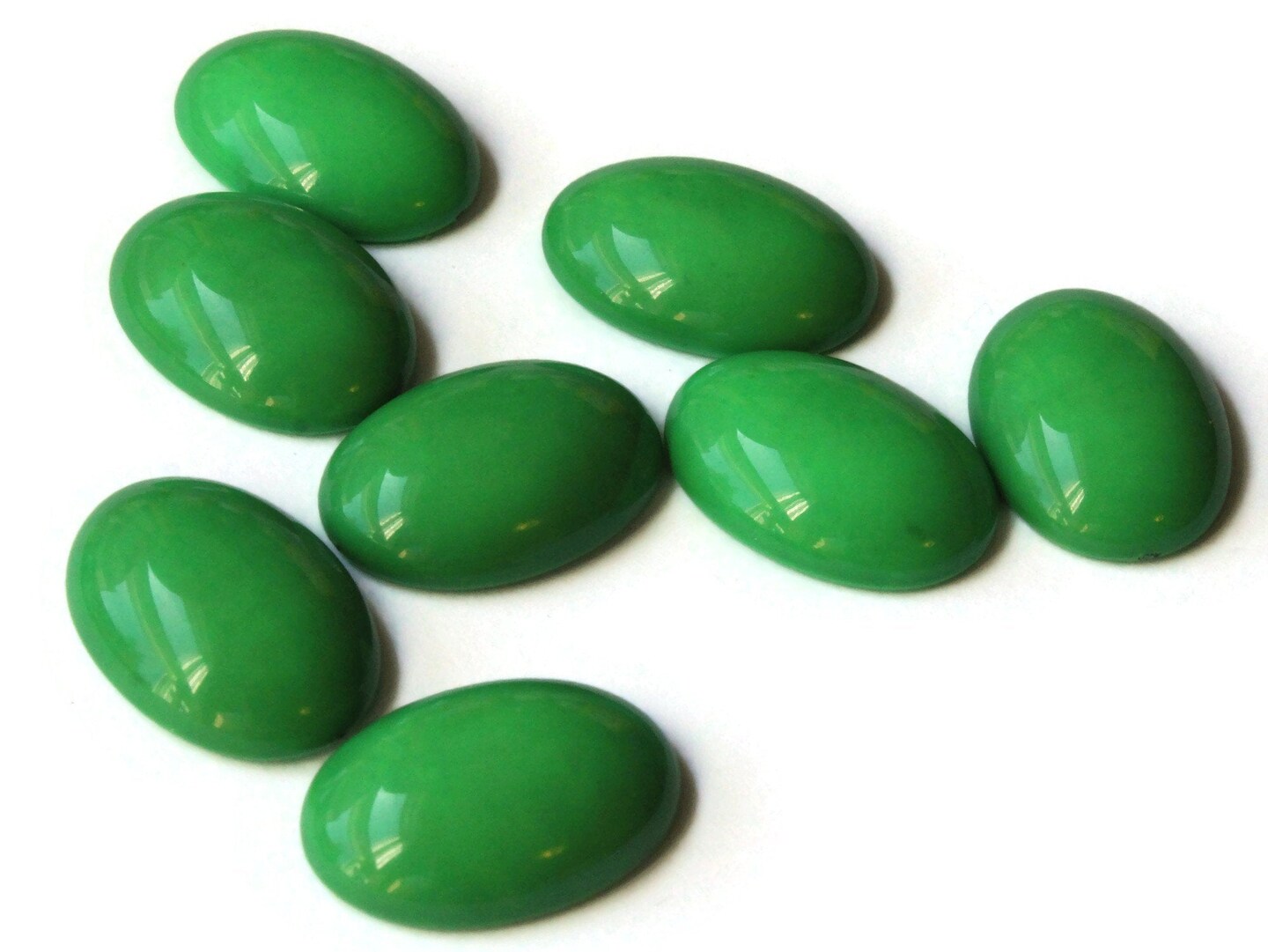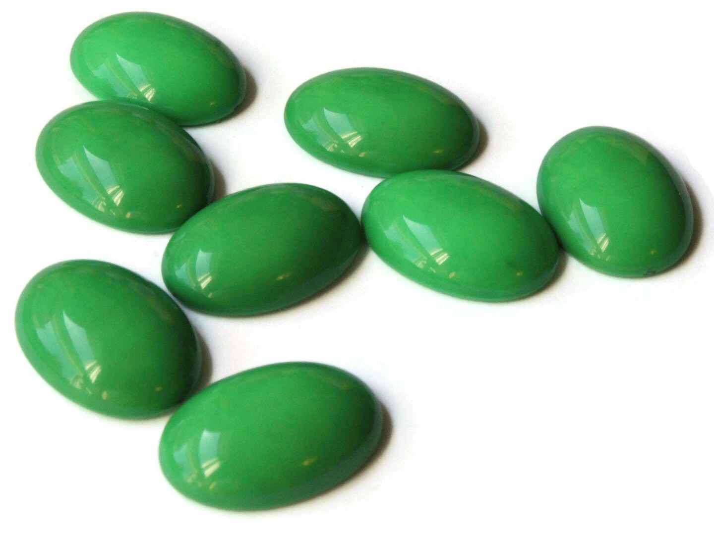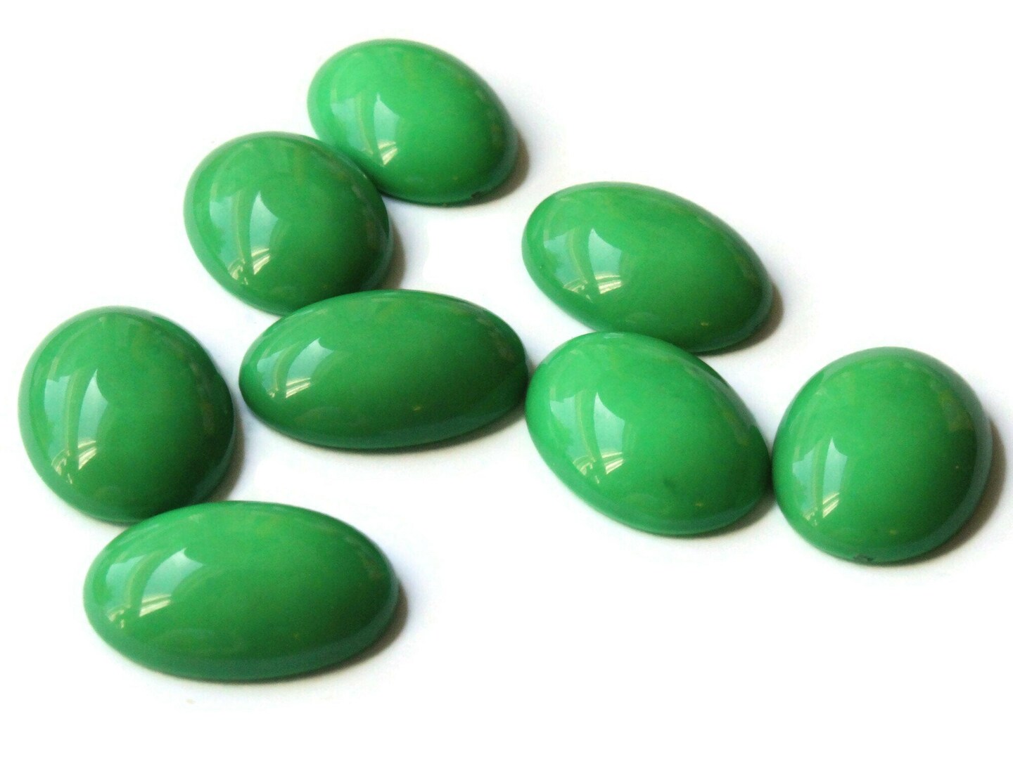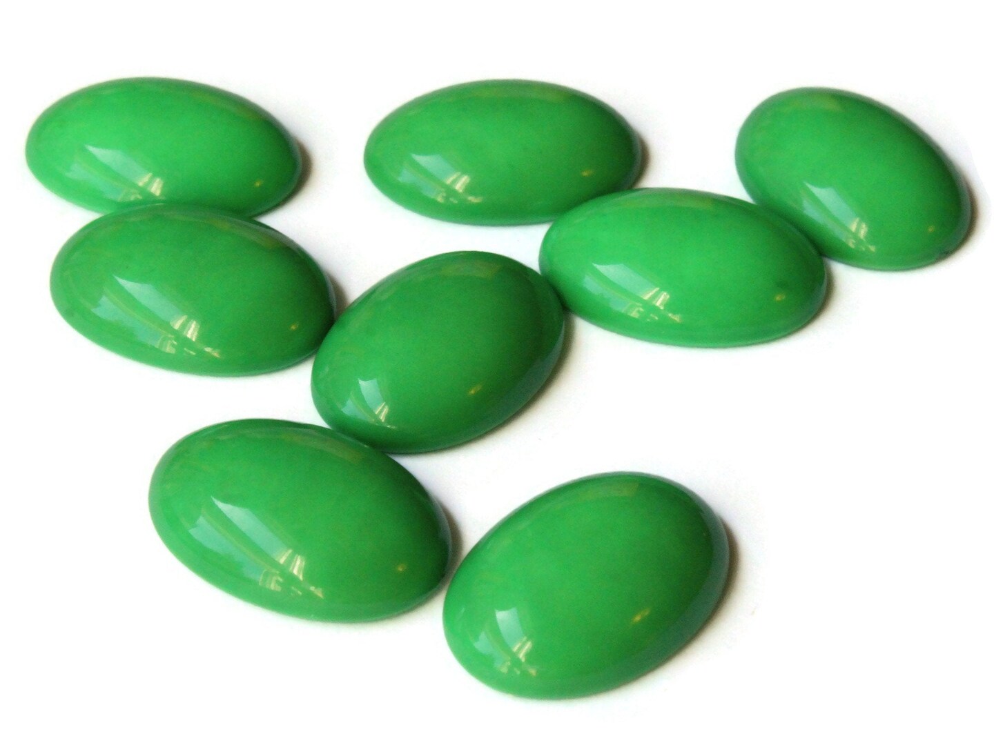 8 25mm x 18mm Green Oval Flat Back Vintage Lucite Cabochons