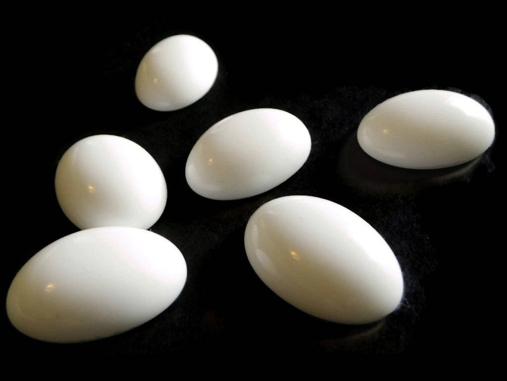 8 25mm x 18mm White Oval Vintage Lucite Cabochons