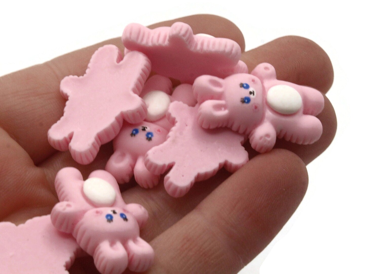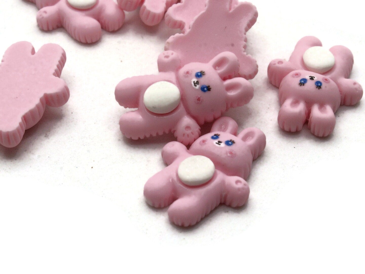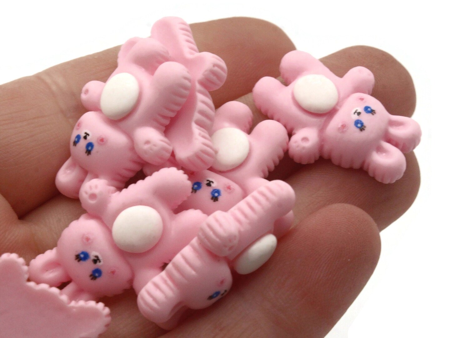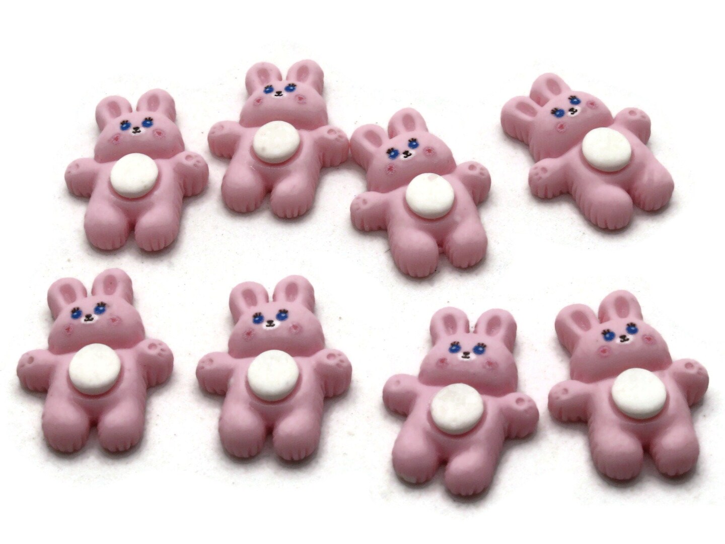 8 26mm Pink Rabbit Flatback Plastic Cabochons