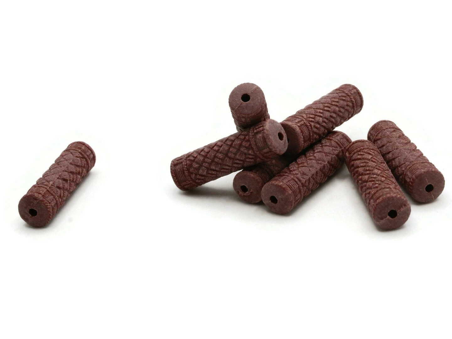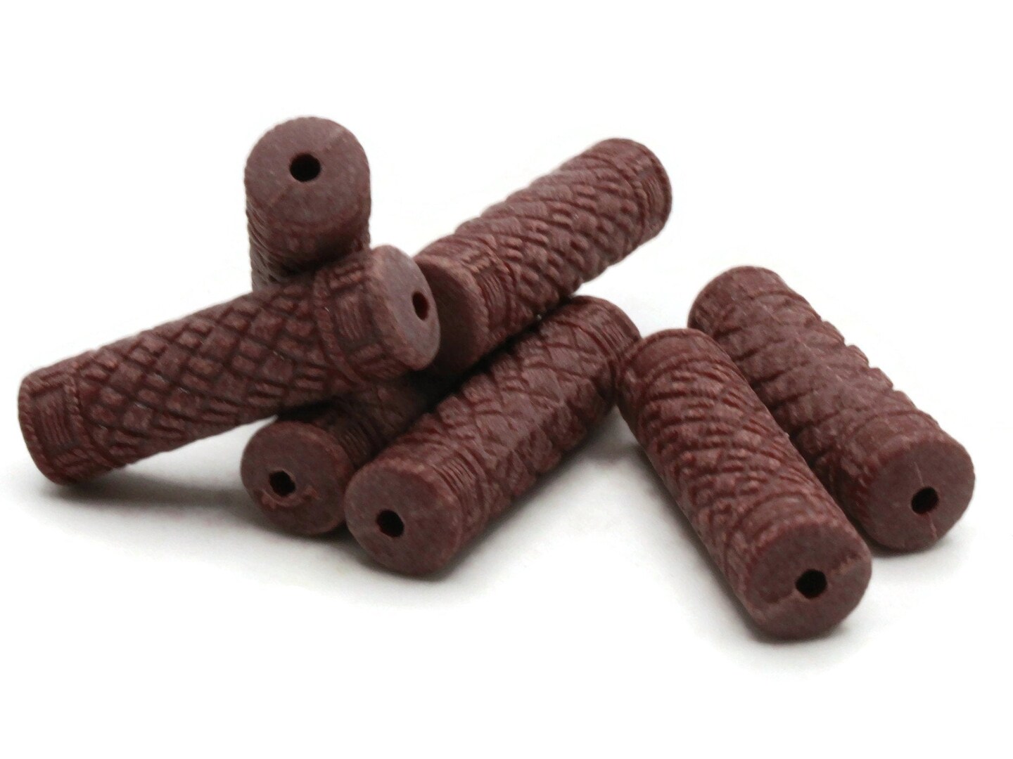 8 27mm Reddish Brown Vintage Plastic Crosshatch Patterned Tube Beads