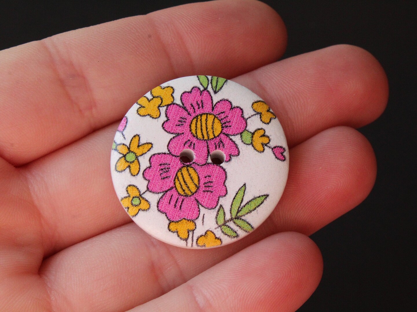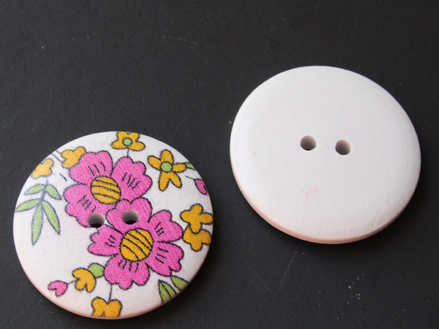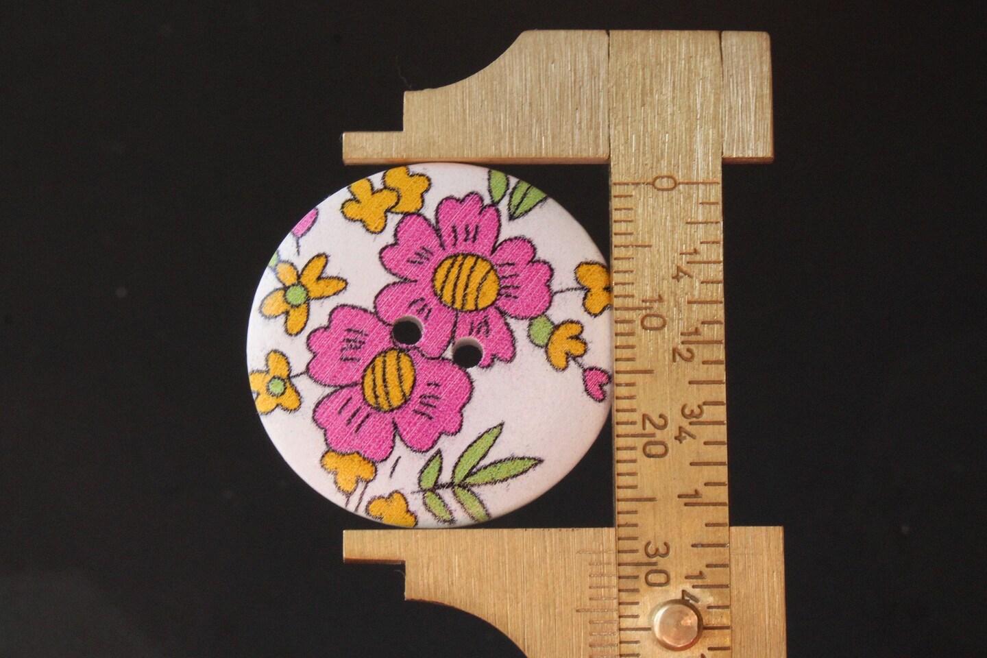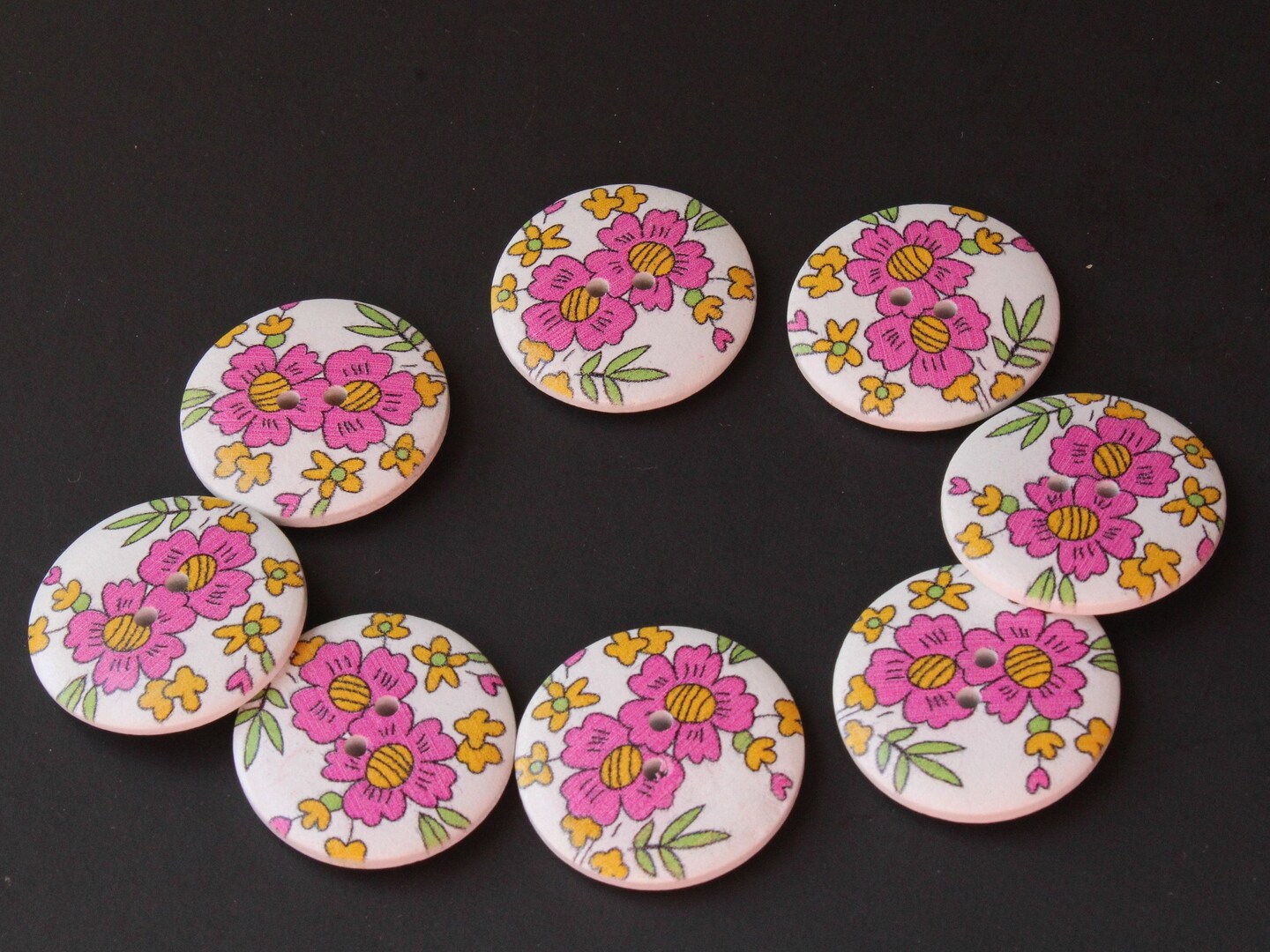 8 30mm Pink Flower Big White Two Hole Wooden Buttons