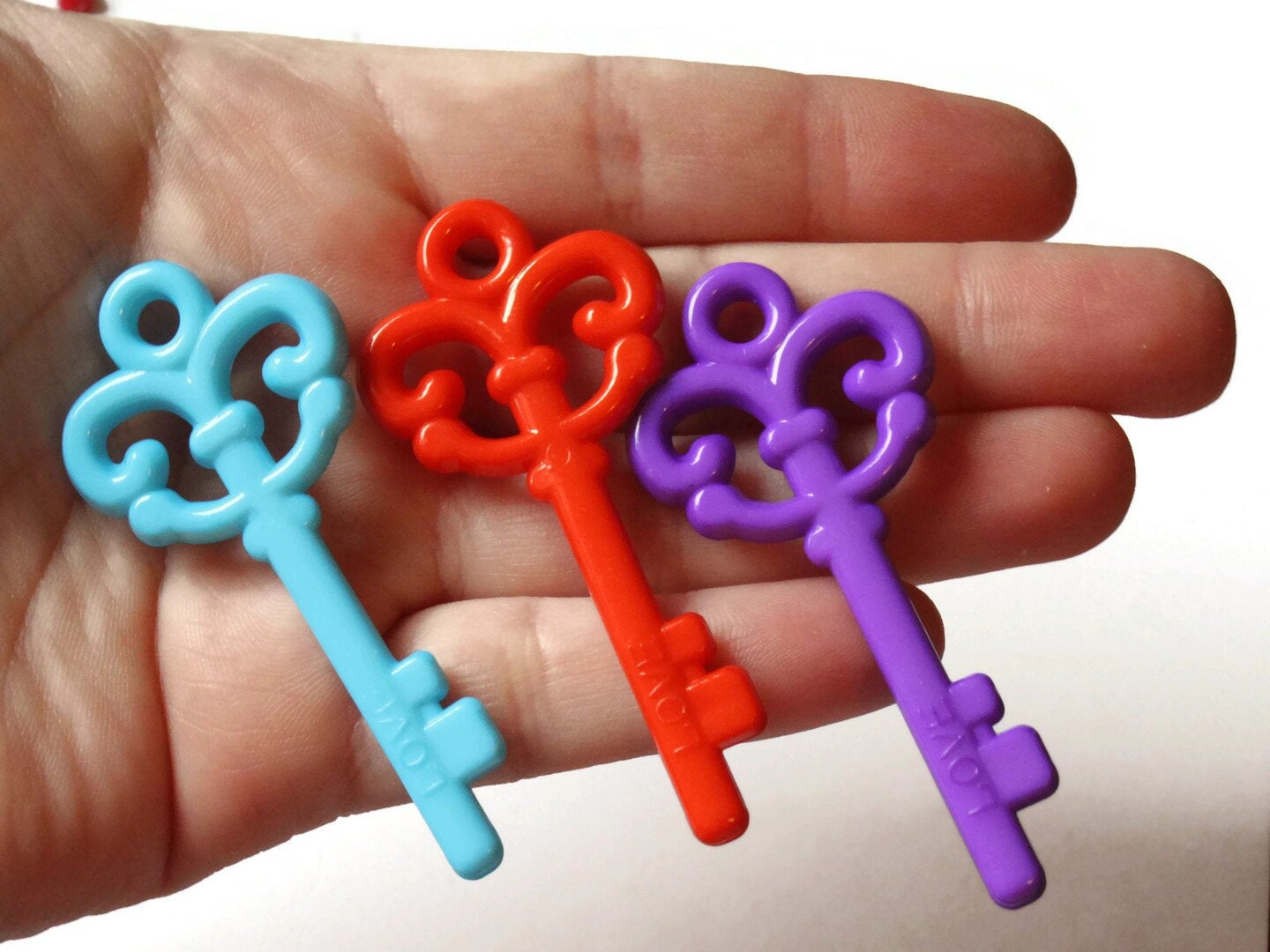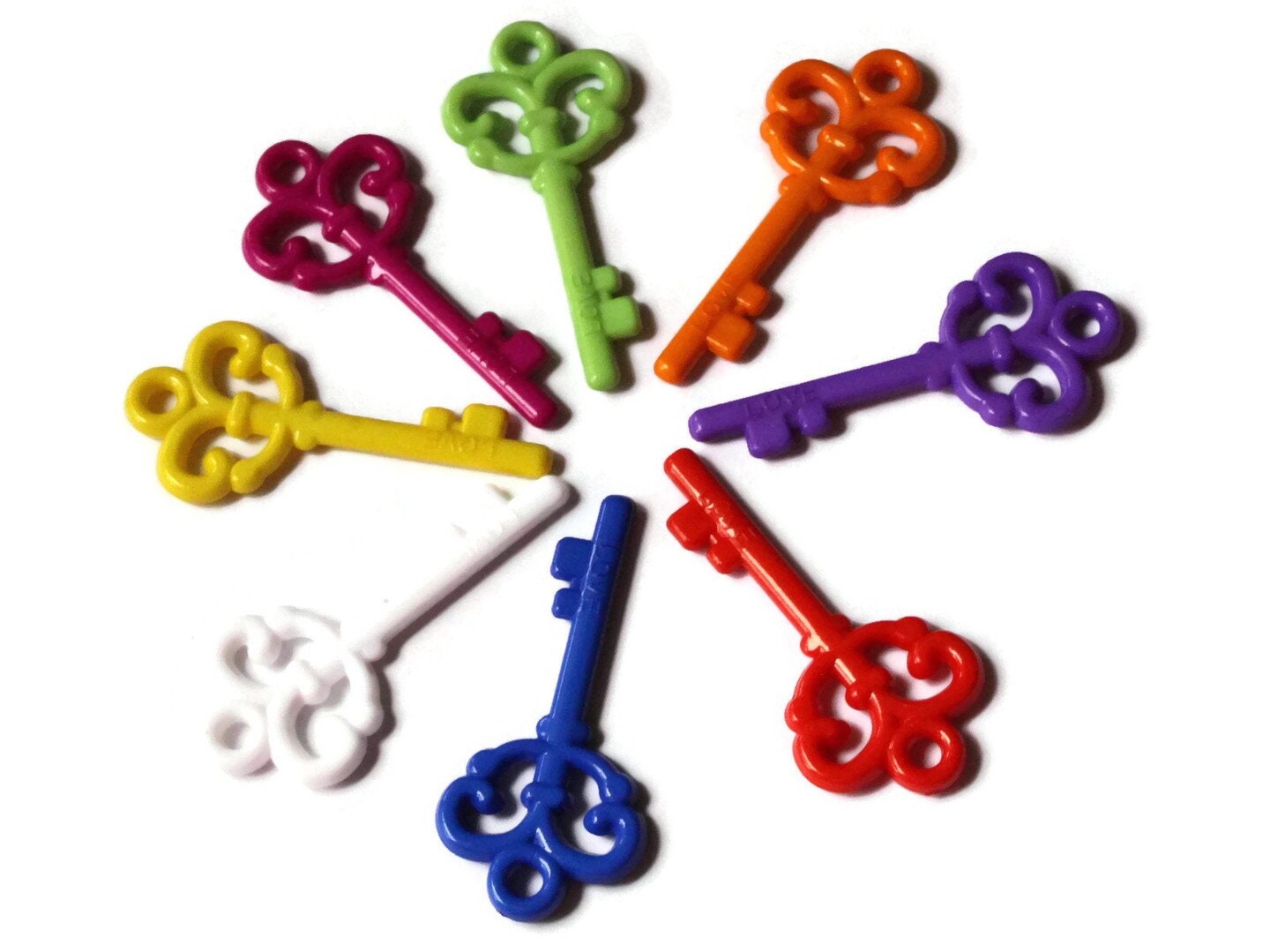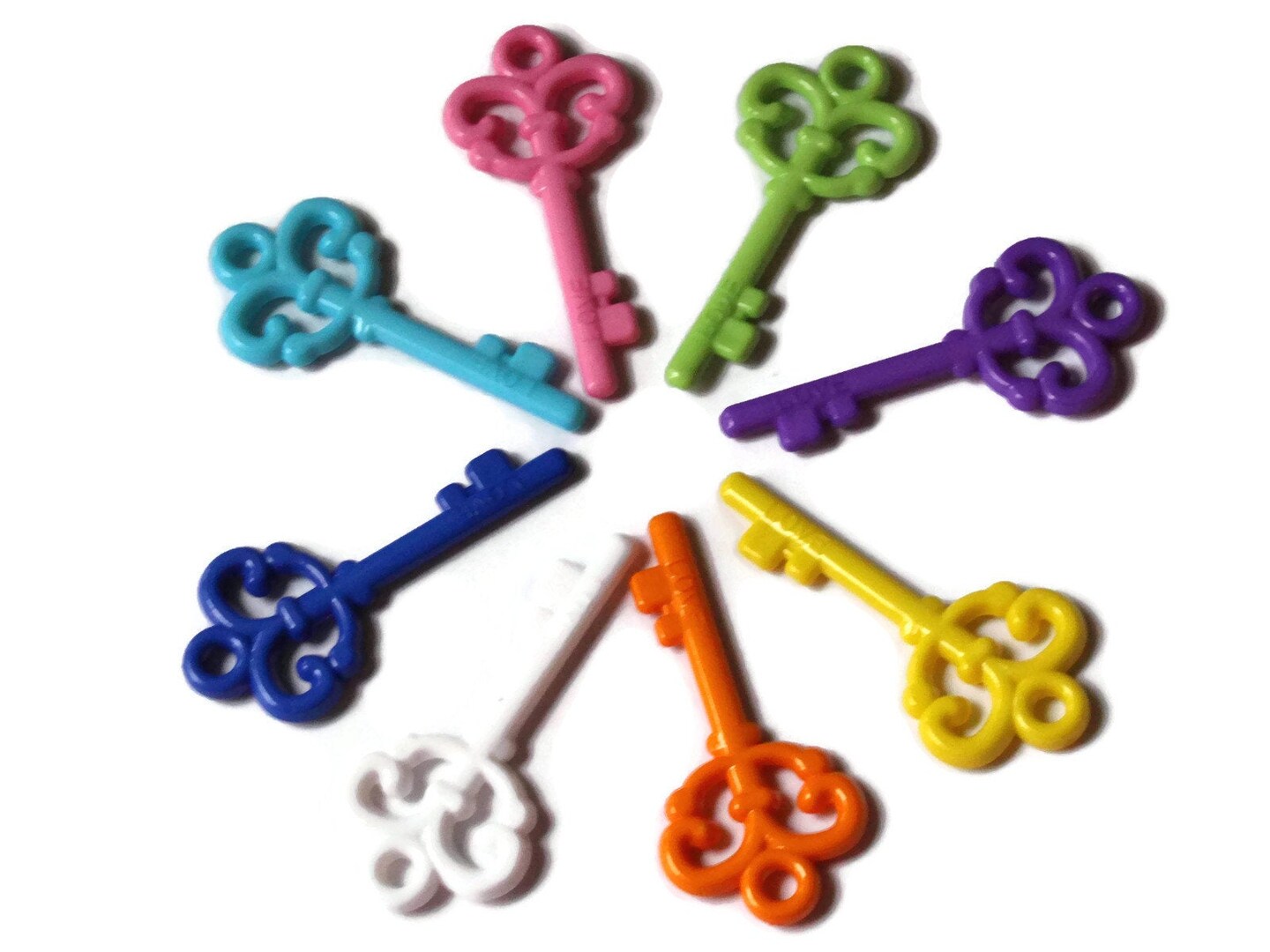 8 62mm Mixed Color Plastic Skeleton Key Charms