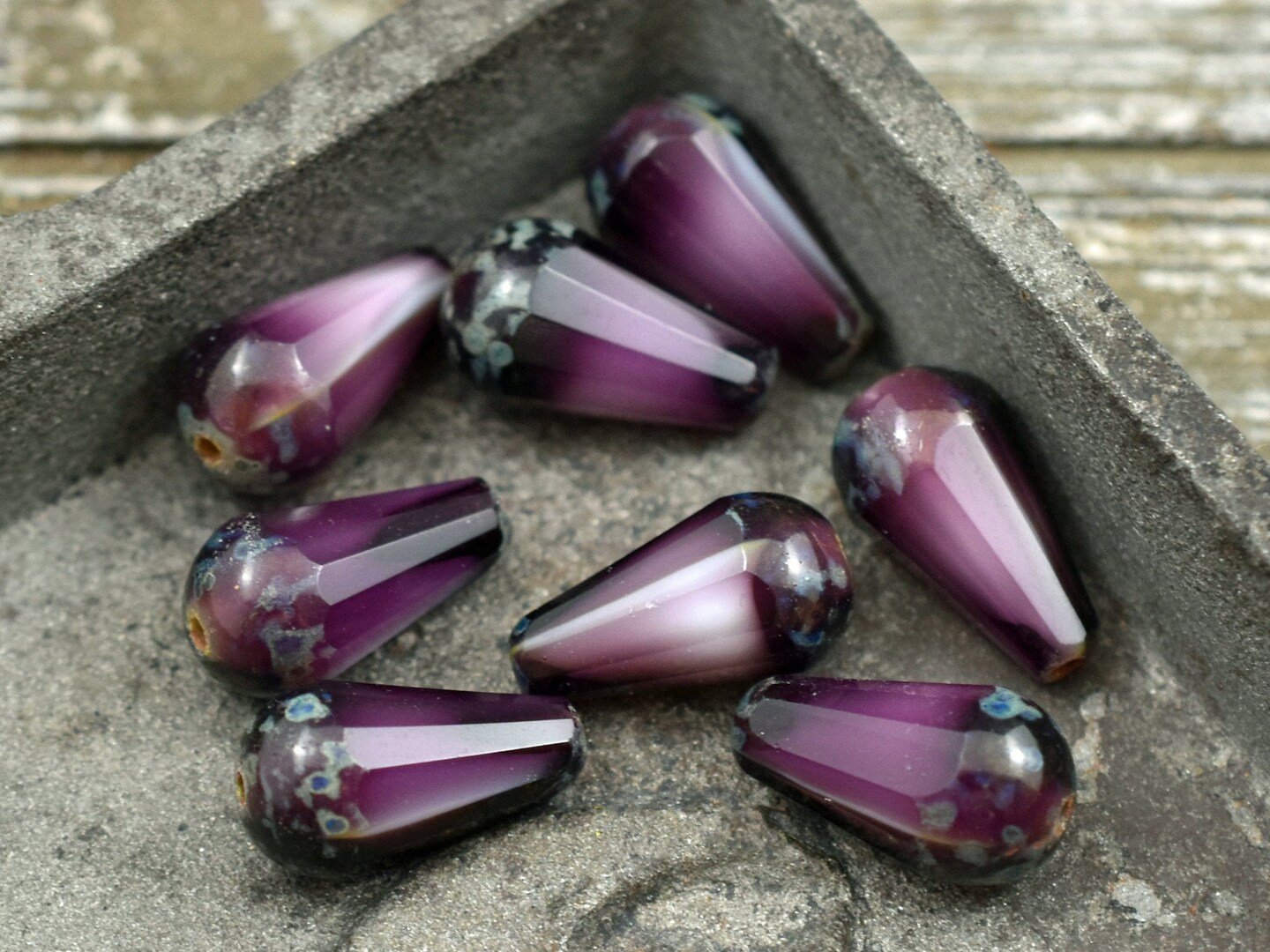 *8* 8x15mm Amethyst Cloud Picasso Faceted Drop Beads