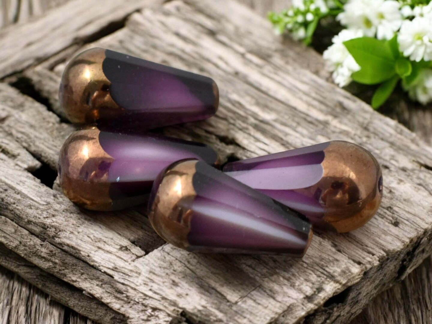 *8* 8x15mm Bronze Tipped Amethyst Cloud Faceted Drop Beads