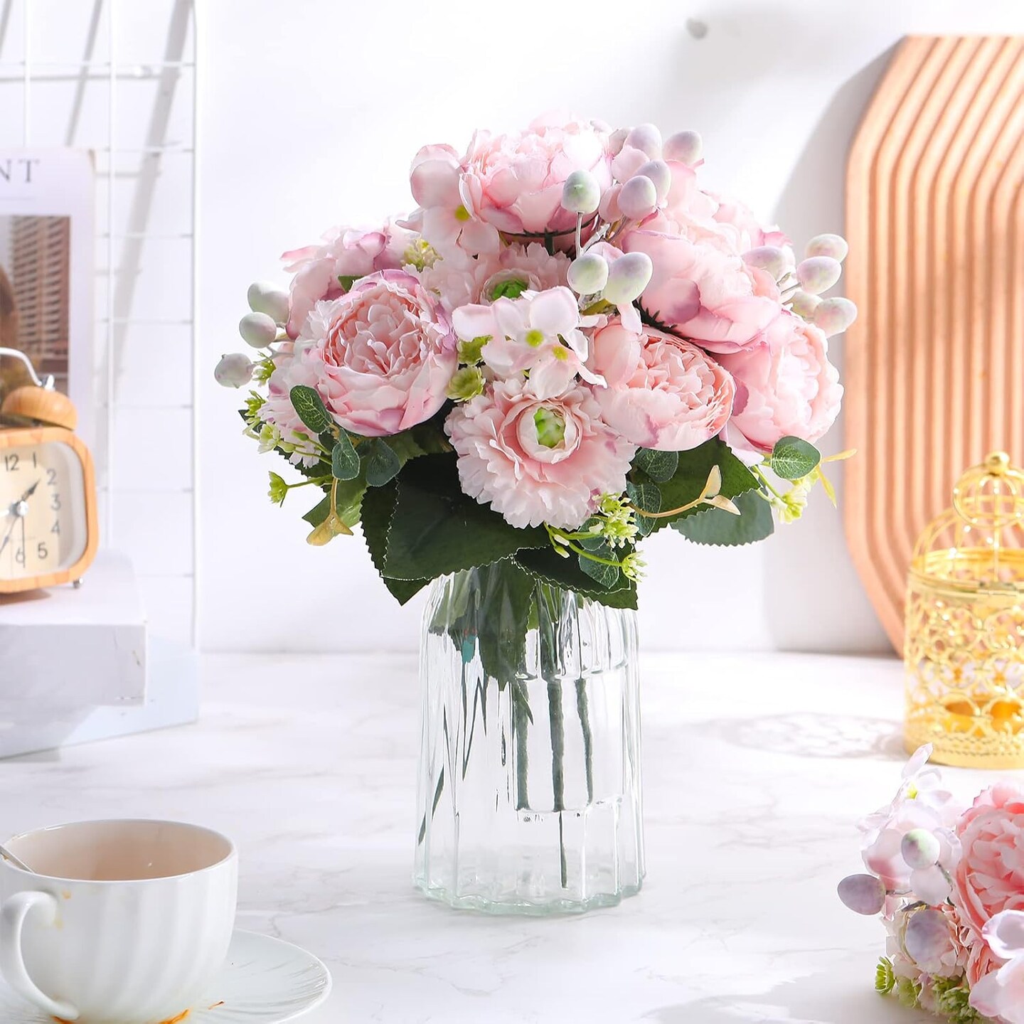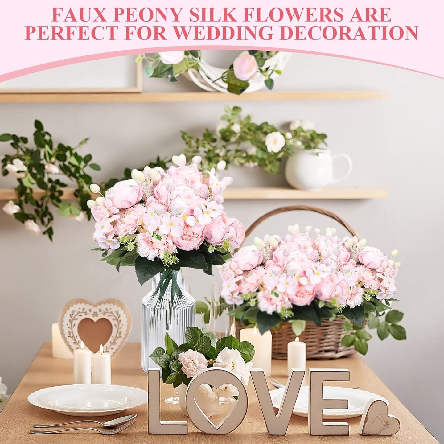 8 Bouquets Wedding Silk Peony Hydrangea Flowers with Stems Elegant Faux Vintage Artificial Flowers for Decoration for DIY Table Party Decor Centerpieces Home