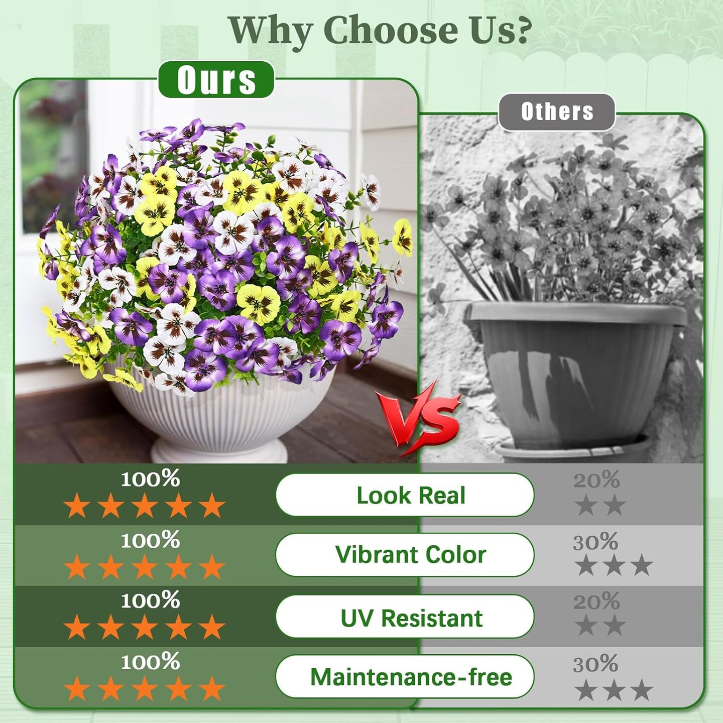 8 Bundles Look Real Artificial Flowers for Outdoors, Realistic Fake Outdoor Flowers, UV Resistant Silk Pansy Flowers for Outside Faux Flower Plants for Outdoor Porch Garden, Mixed Colors