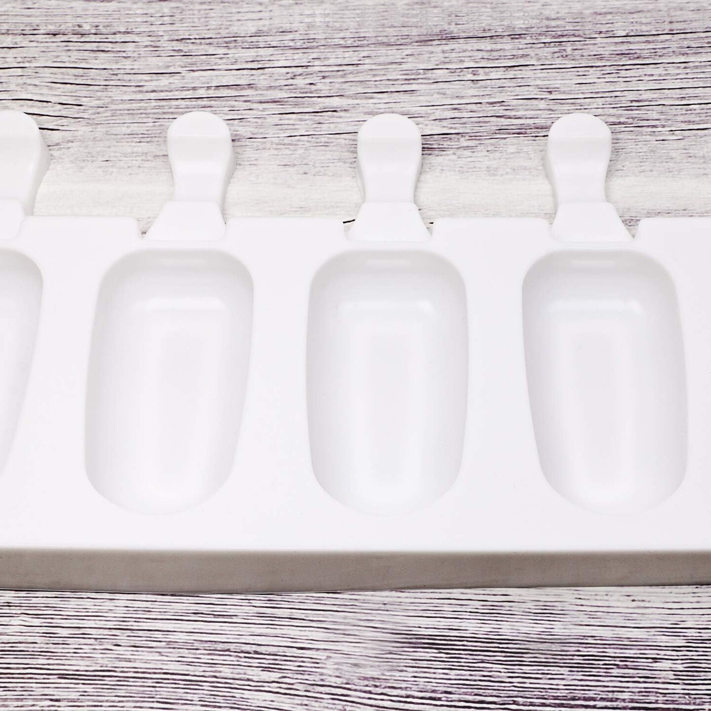 8- Cavities White Silicone Ice cream Bar Mold Reusable DIY Classic Shape Ice cream Makers with 50Pcs Wooden Sticks for Homemade Ice cream,1PCS