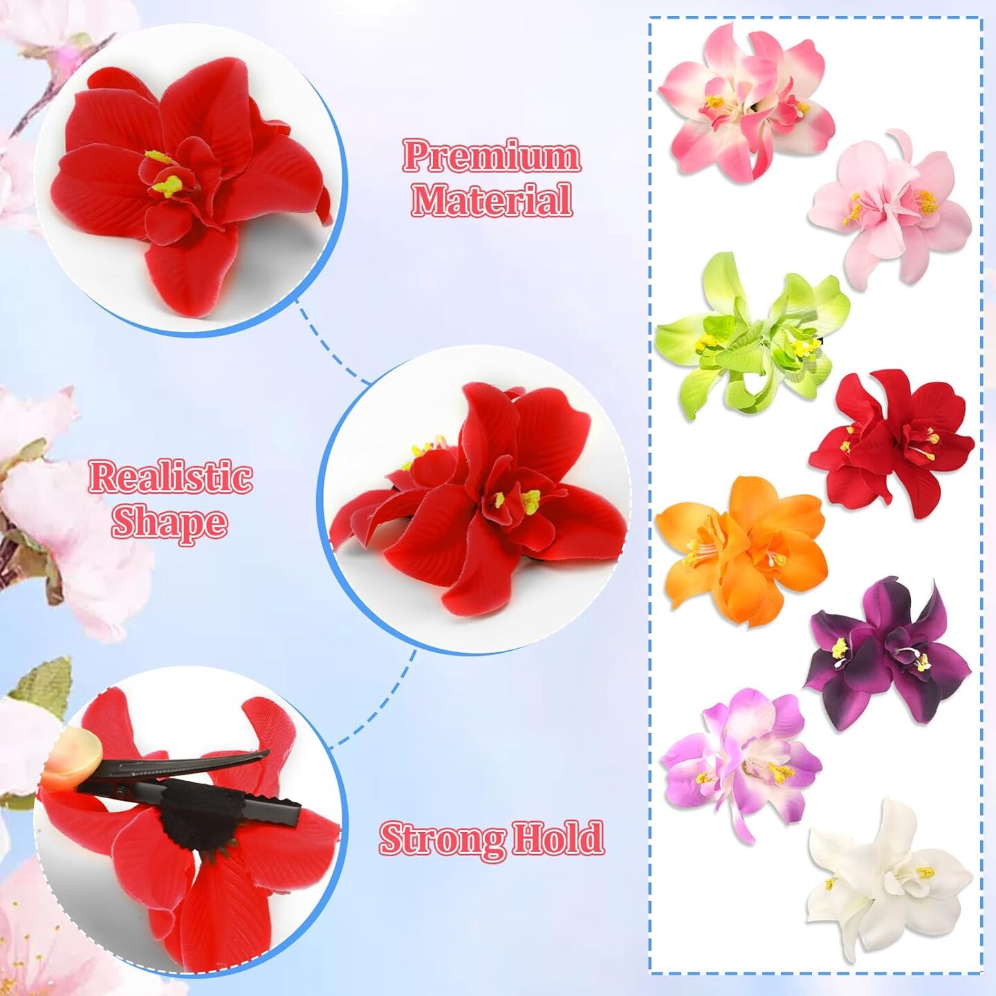 8 Colors Bohemian Hawaiian Fabric Flower Hair Clips (Hawaiian Orchid)