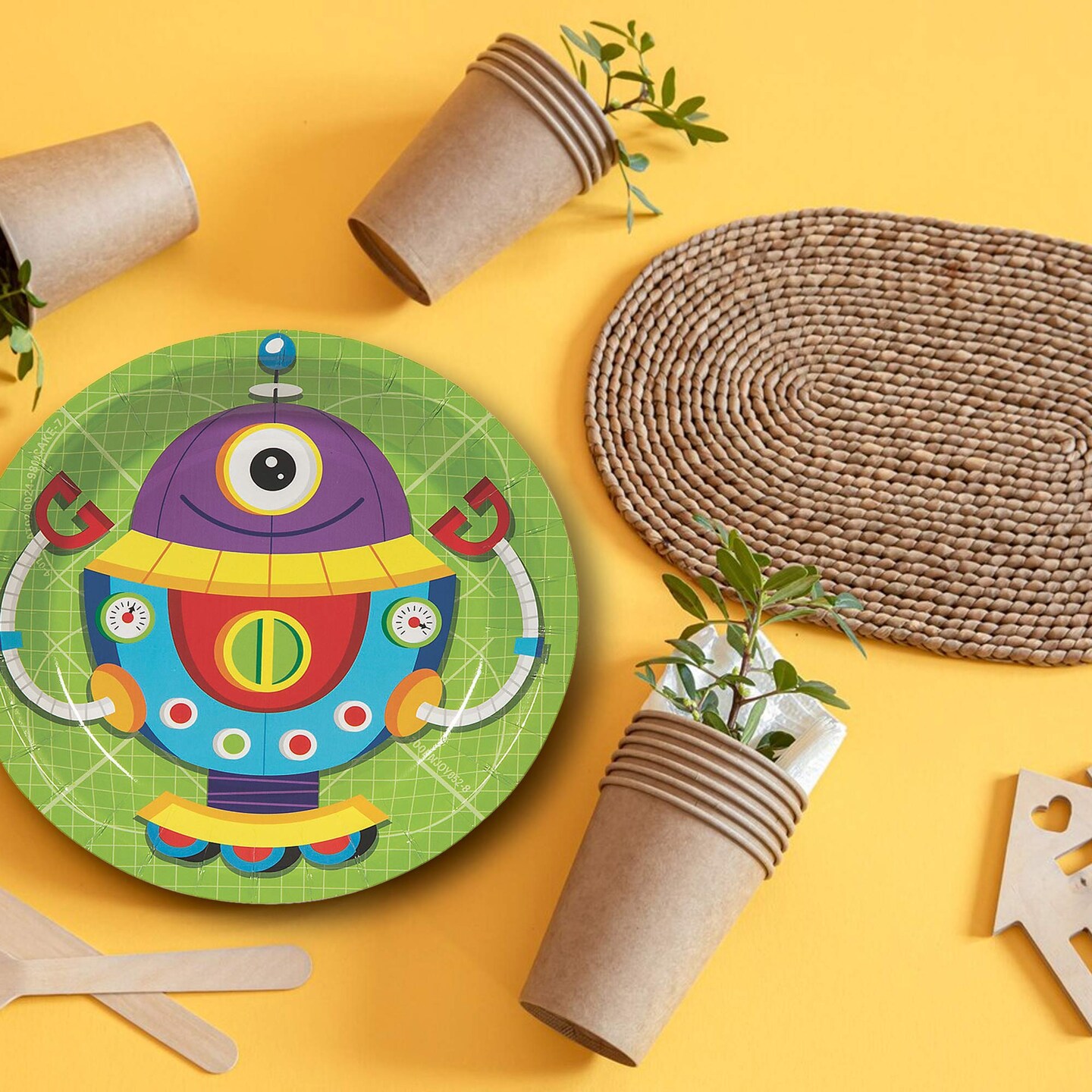 8 Count 7" Robot Party Round Disposable Dessert Plates Fun Robot Birthday Tableware