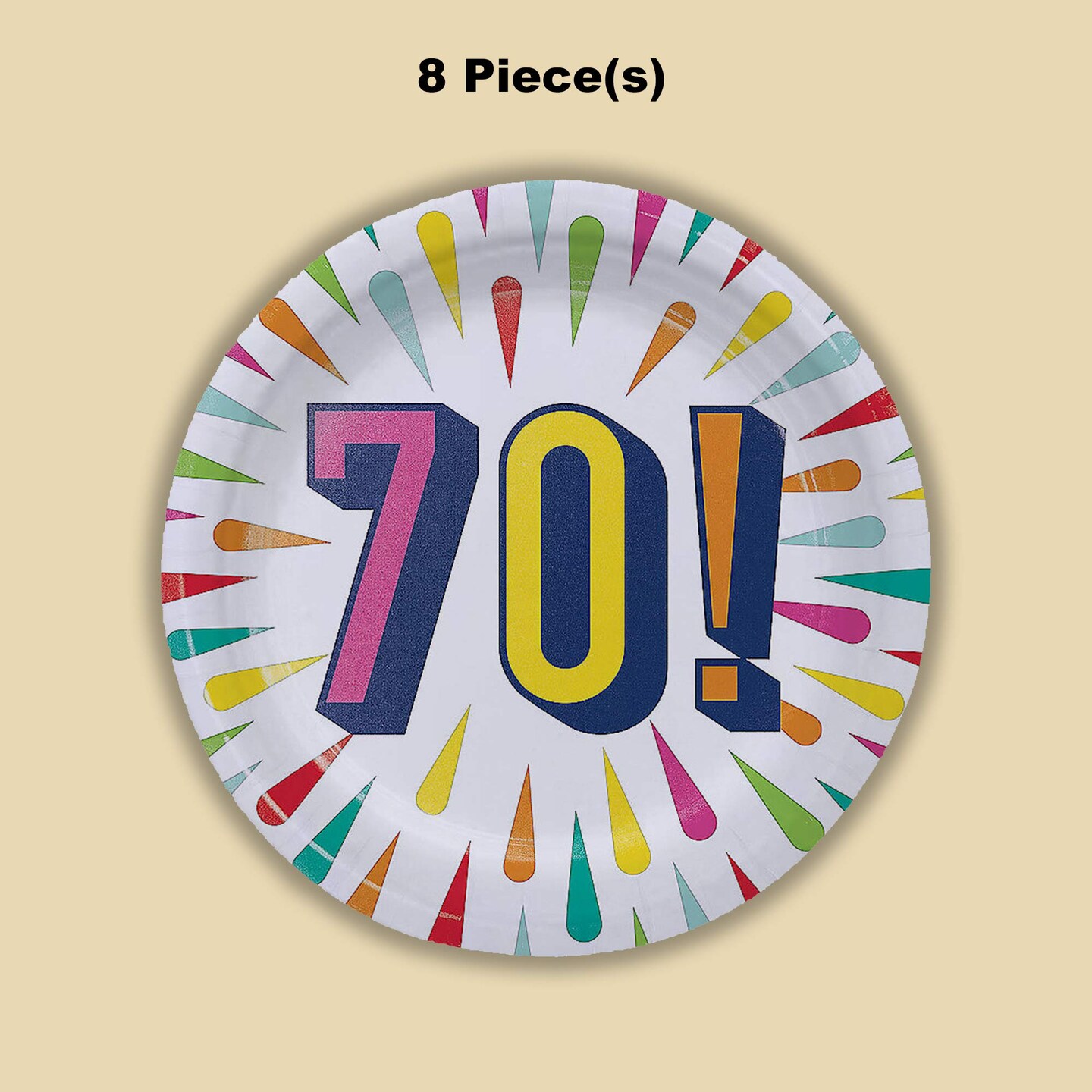 8 Count 70th Birthday Burst Paper Dessert Plates 7 Inch Milestone Celebration Party Supplies