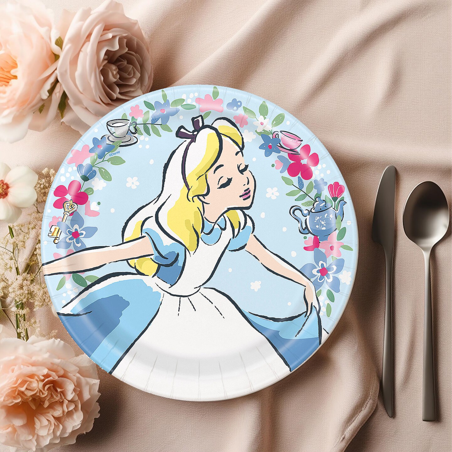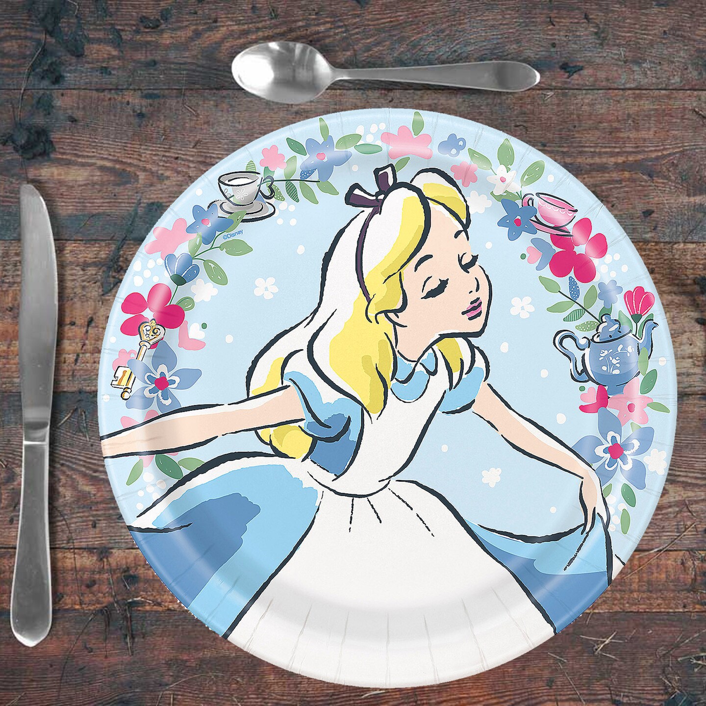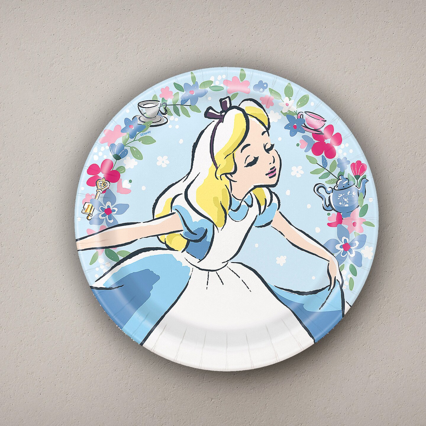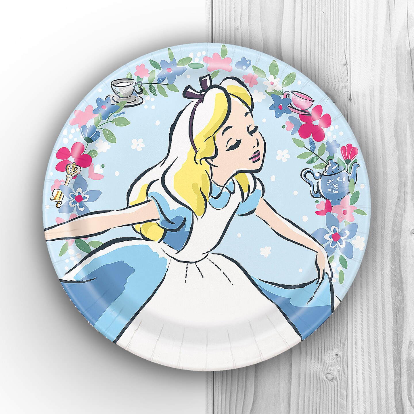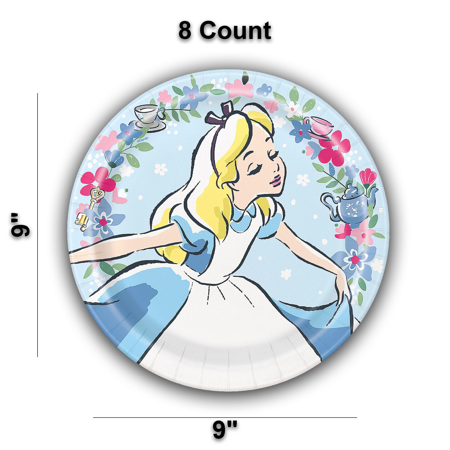 8 Count. Alice in Wonderland Pastel Floral Paper Dinner Plates 9" Birthday Party Plates