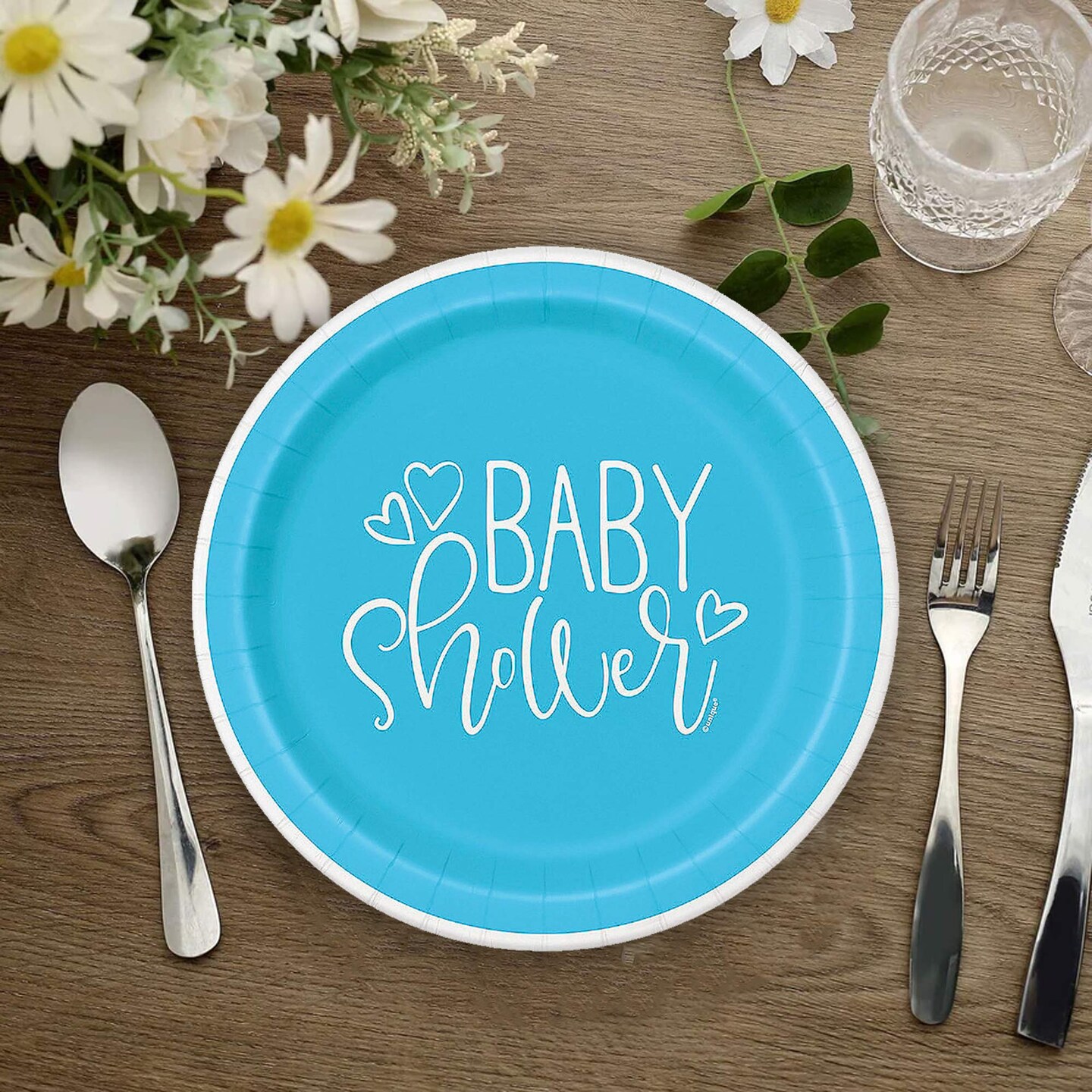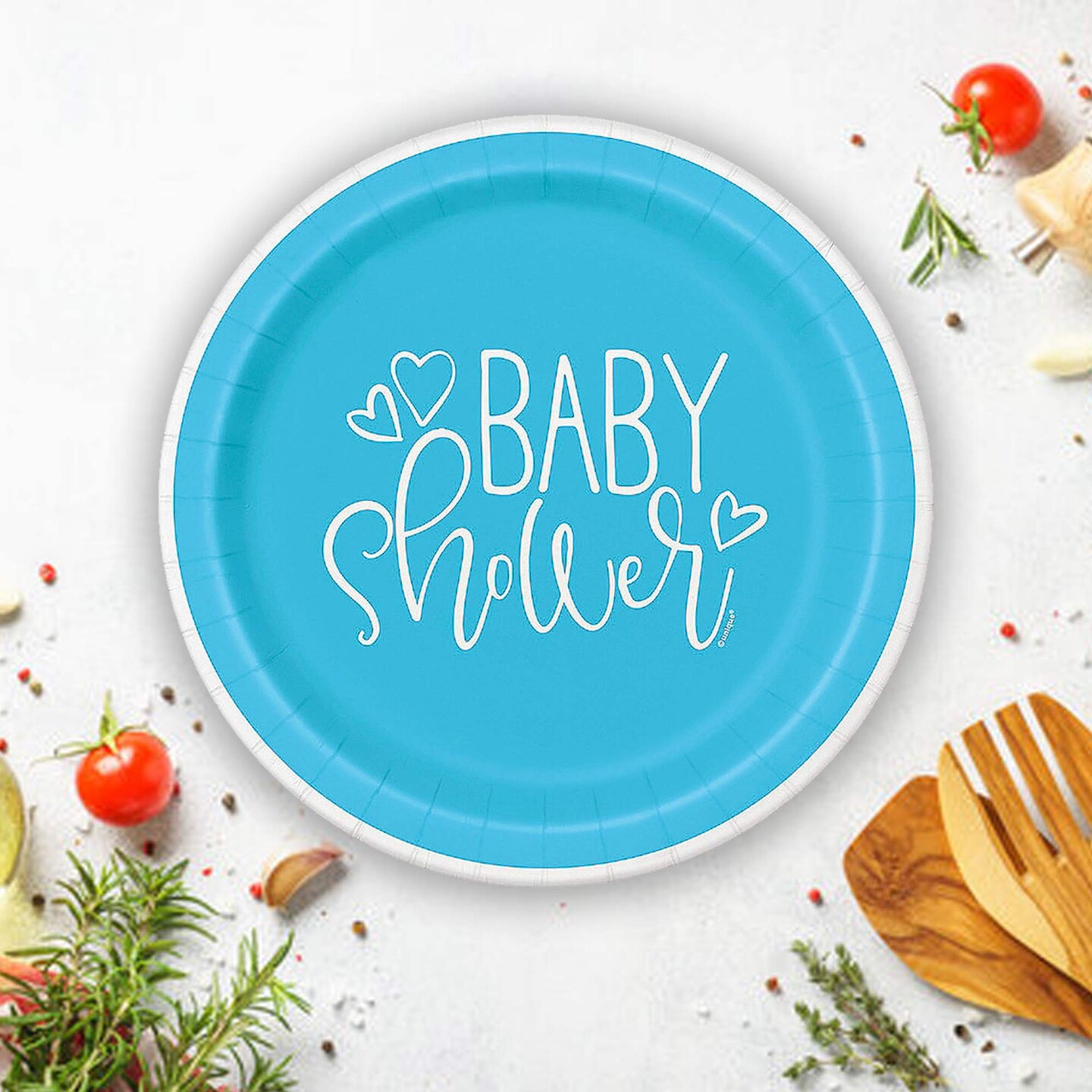 8 Count Blue Hearts Baby Shower Paper Dessert Plates 7 Inch Disposable Tableware for Boys Celebration