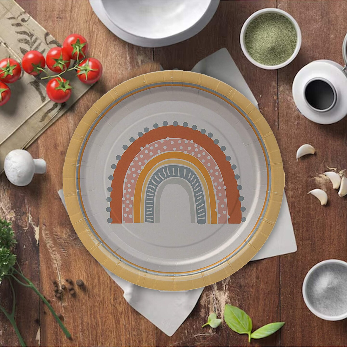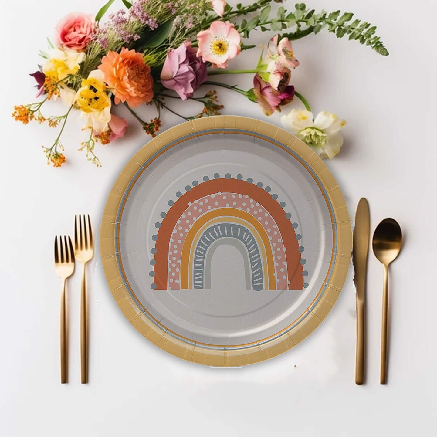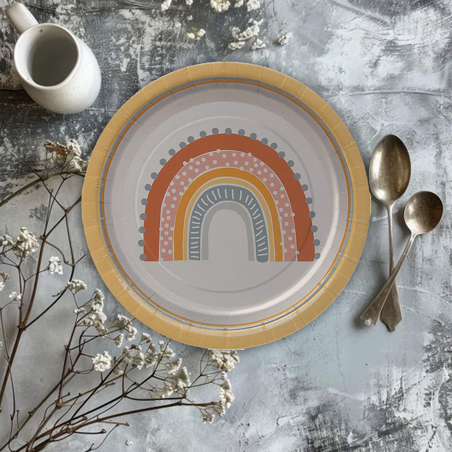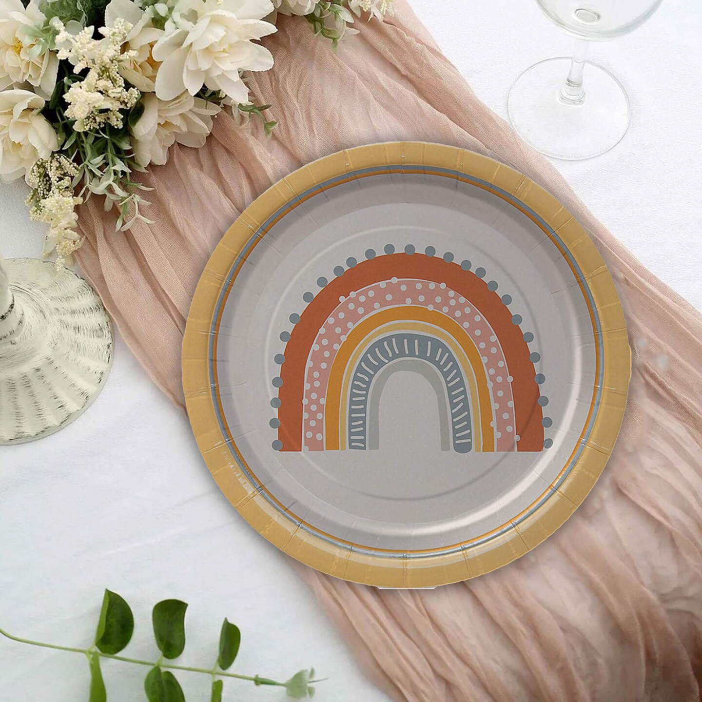 8 Count Boho Rainbow Party Paper Dessert Plates 7 Inch