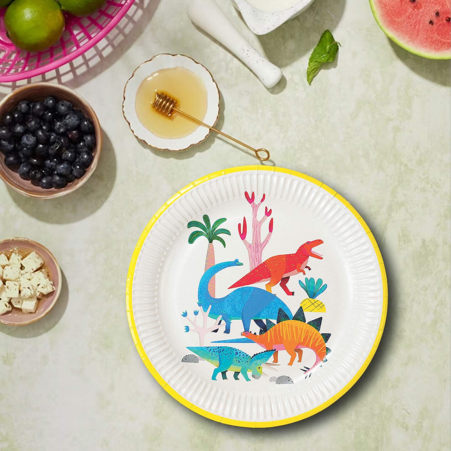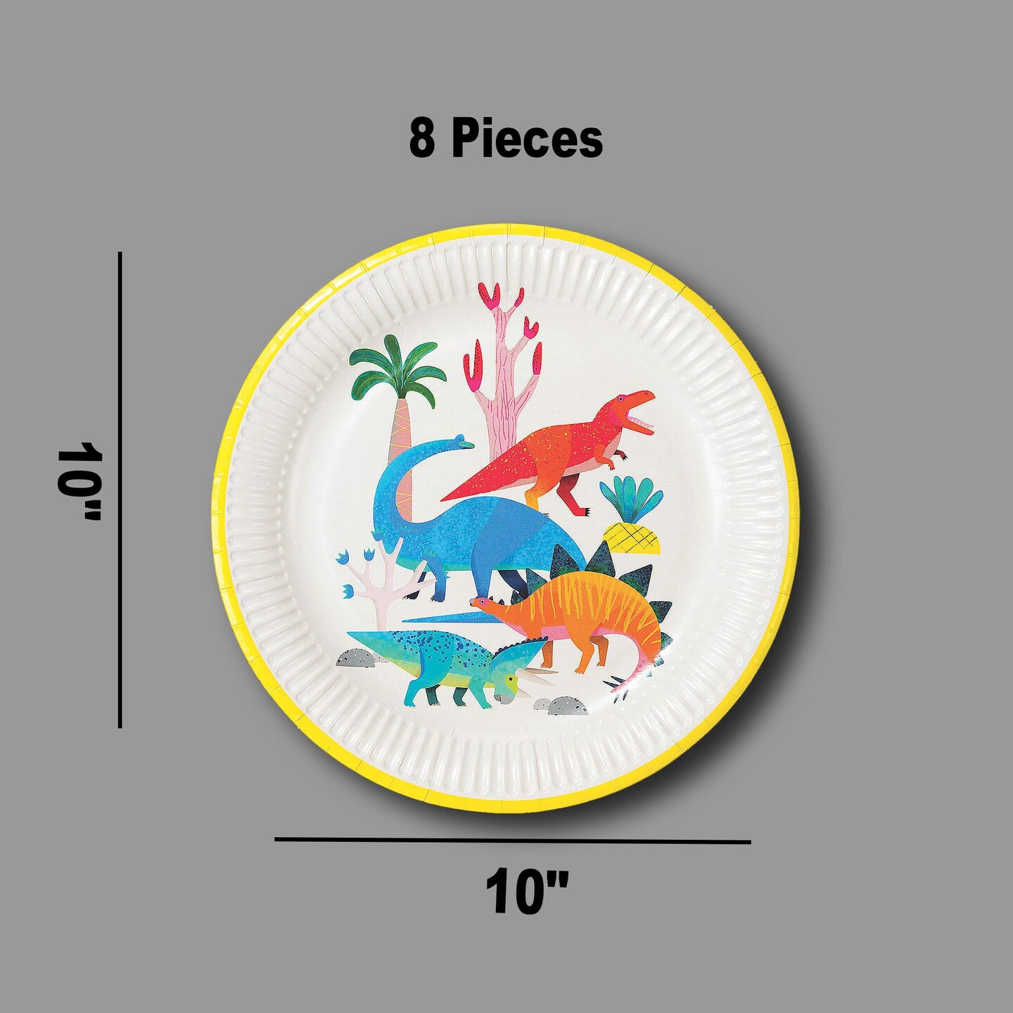 8 Count Bright Dinosaur Party Paper Dinner Plates Pastel Designs 10 Inch