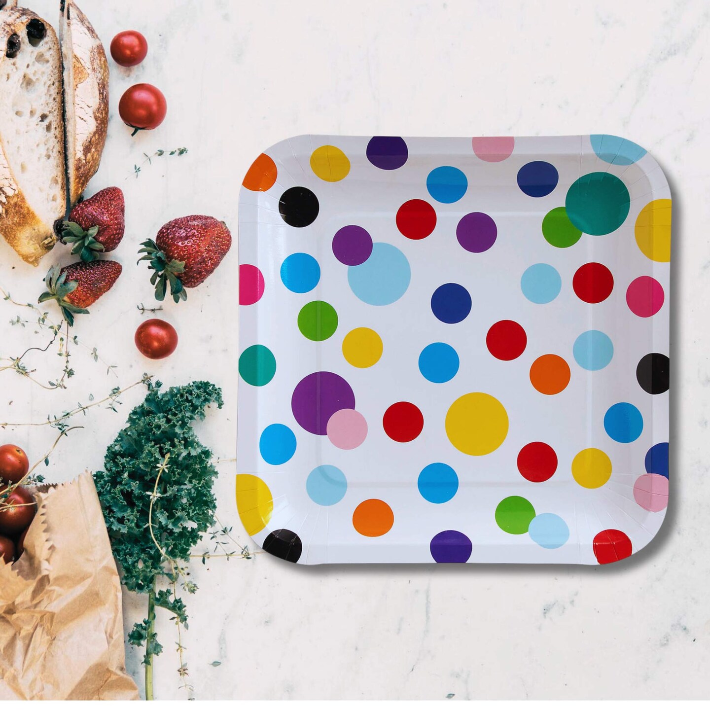 8 Count Colorful Polka Dot Paper Plates 9" Round Dinner Party Tableware