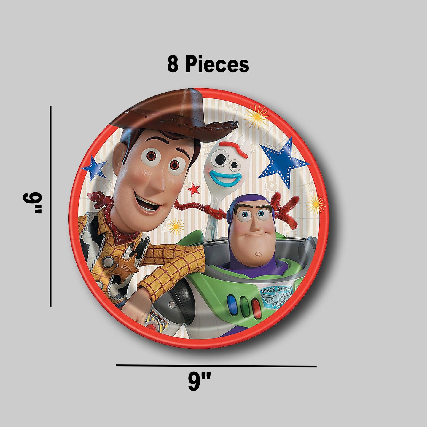 8 Count Disney Toy Story 4 Paper Dinner Plates 9" Durable Disposable Plates for Kids’ Birthday Parties