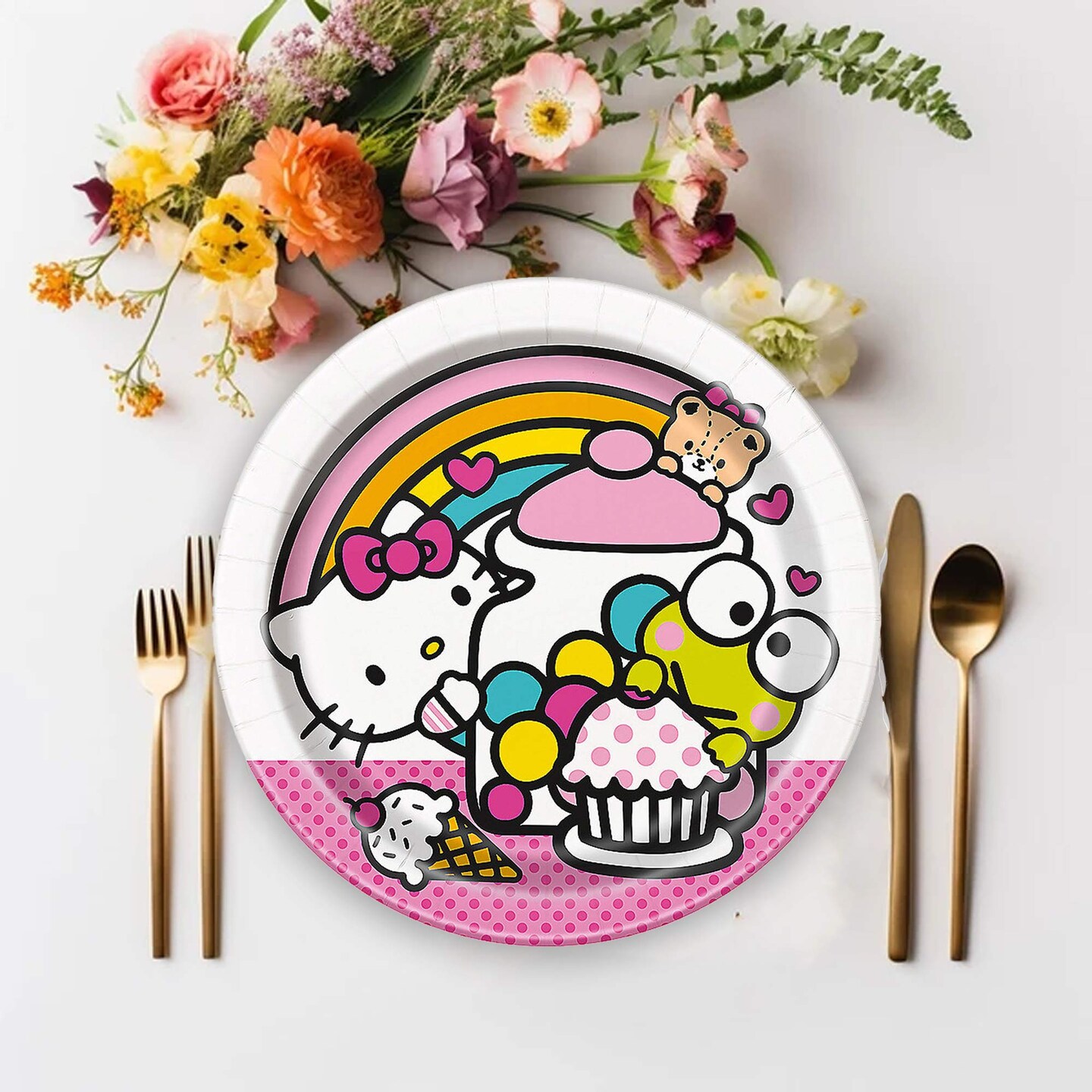 8 Count Hello Kitty Keroppi Paper Dessert Plates 7 Inch Disposable Party Tableware for Kids Birthday