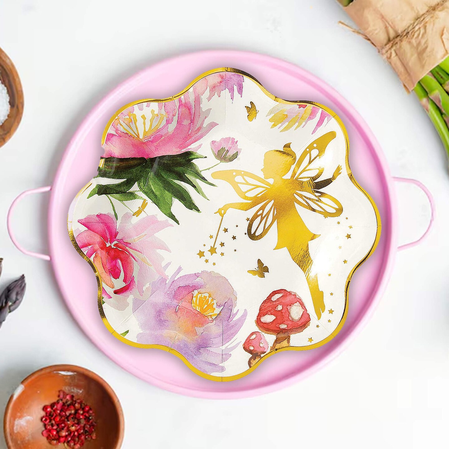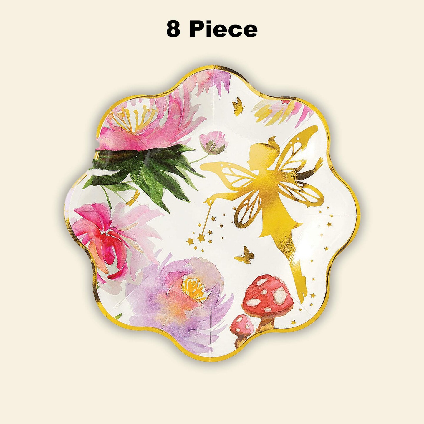 8 Count Iridescent Fairy Paper Plates Gold Trimmed Party Disposable Dinnerware 9"