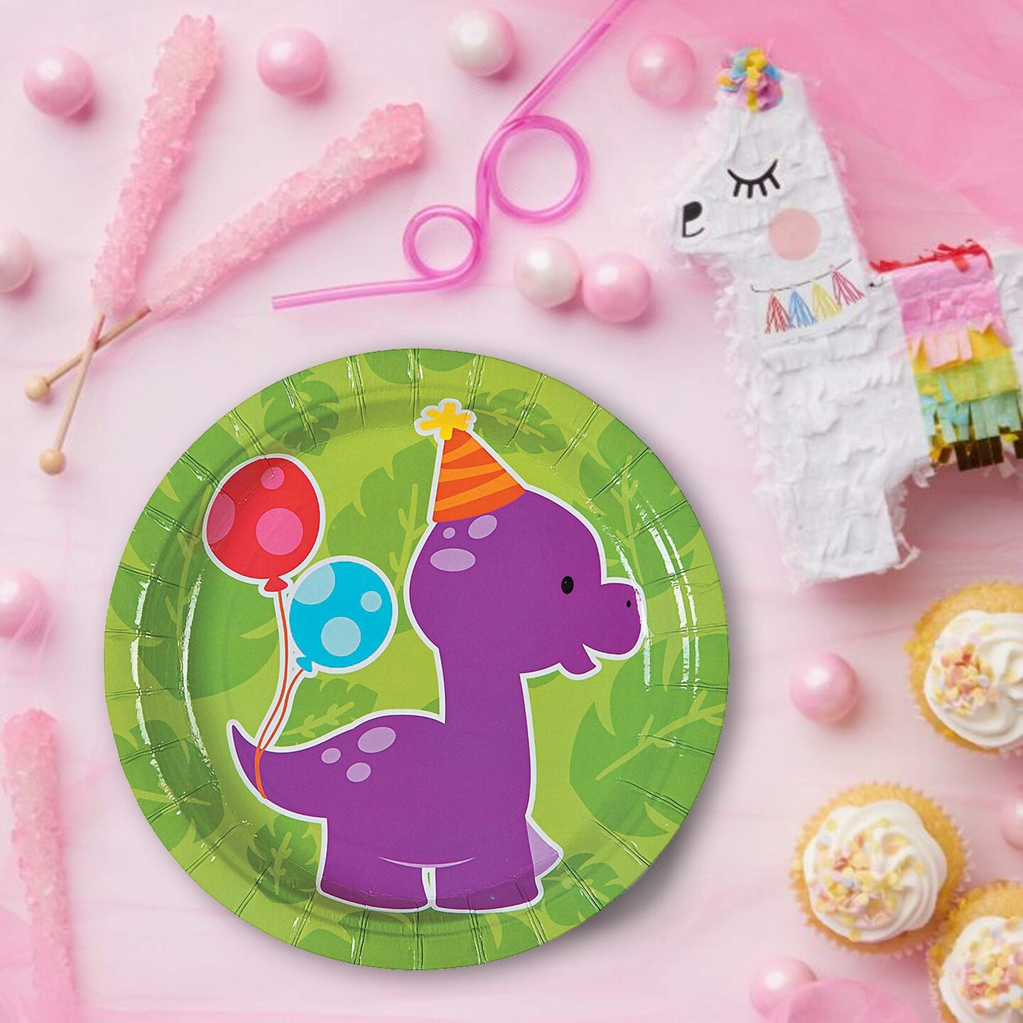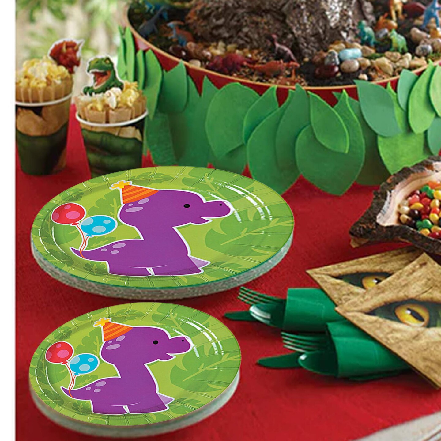 8 Count Little Dino Brontosaurus Paper Dessert Plates 7-Inch Dinosaur Party Tableware