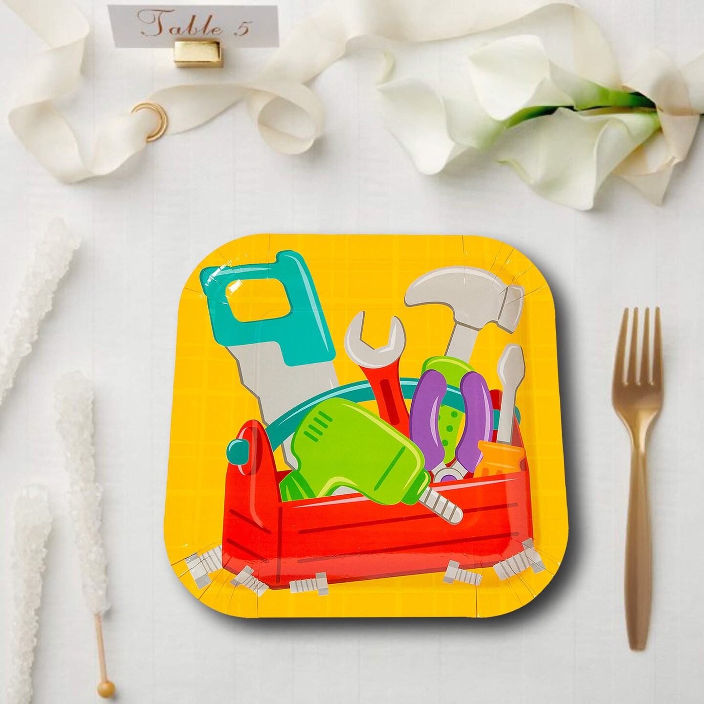 8 Count Little Handyman Paper Plates 9 1/4 Inch Tool Party Birthday Supplies