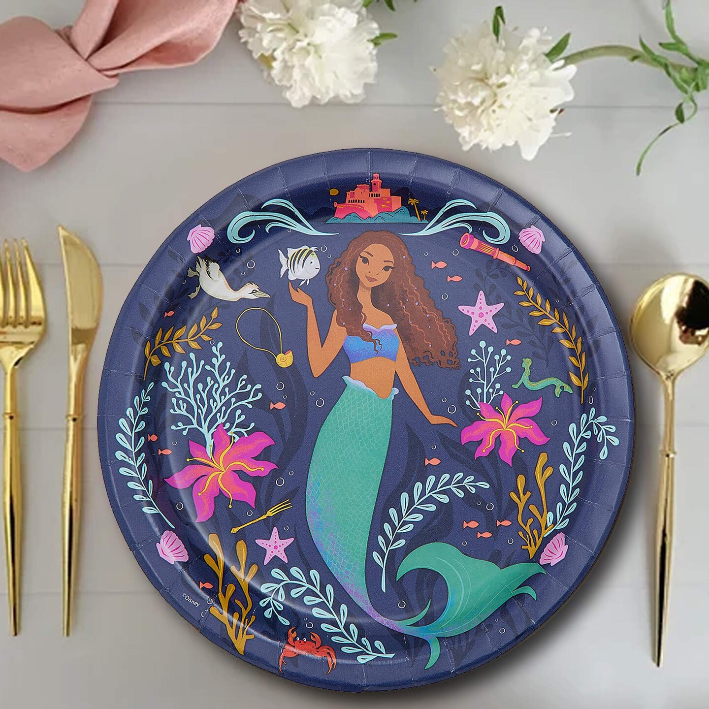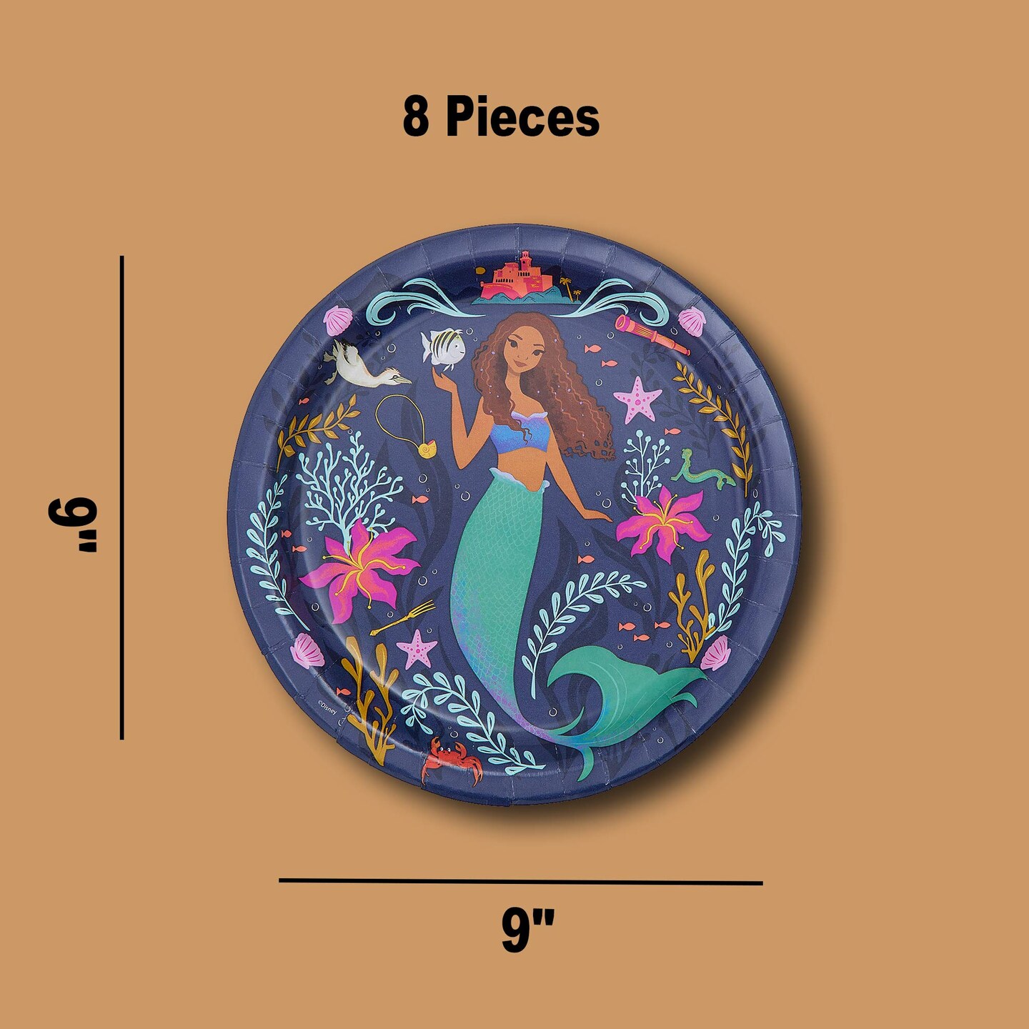 8 Count Mermaid Party Paper Dinner Plates 9" Ariel & Sea Friends Theme for Birthday Celebrations