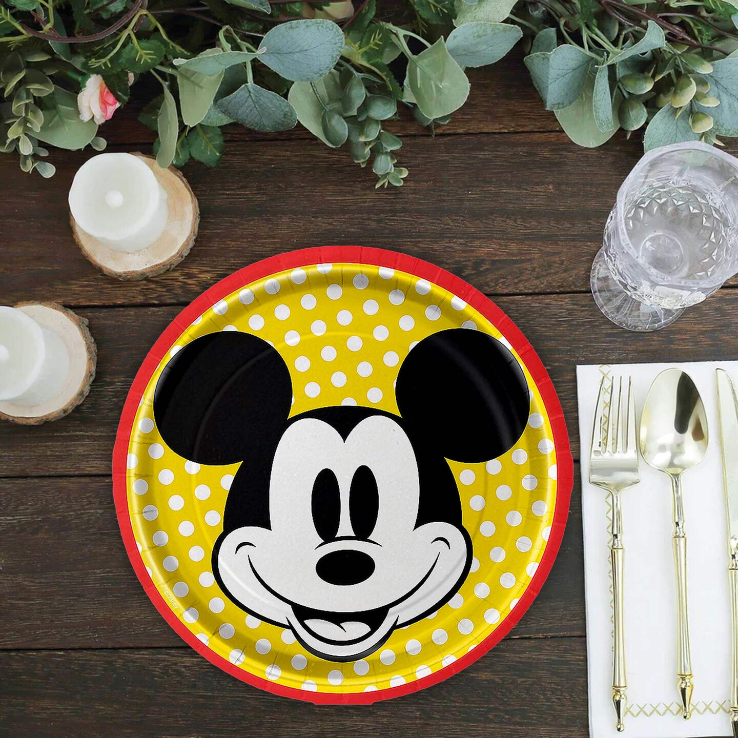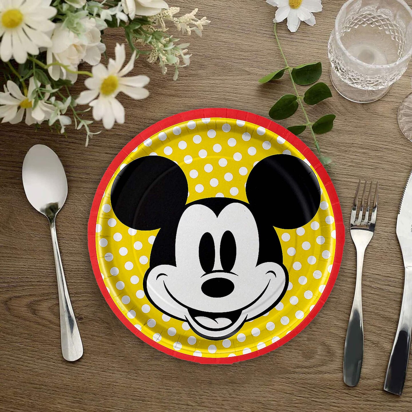 8 Count Mickey Mouse Party Paper Dessert Plates 7 Inch Disposable Tableware for Kids Birthday Celebration