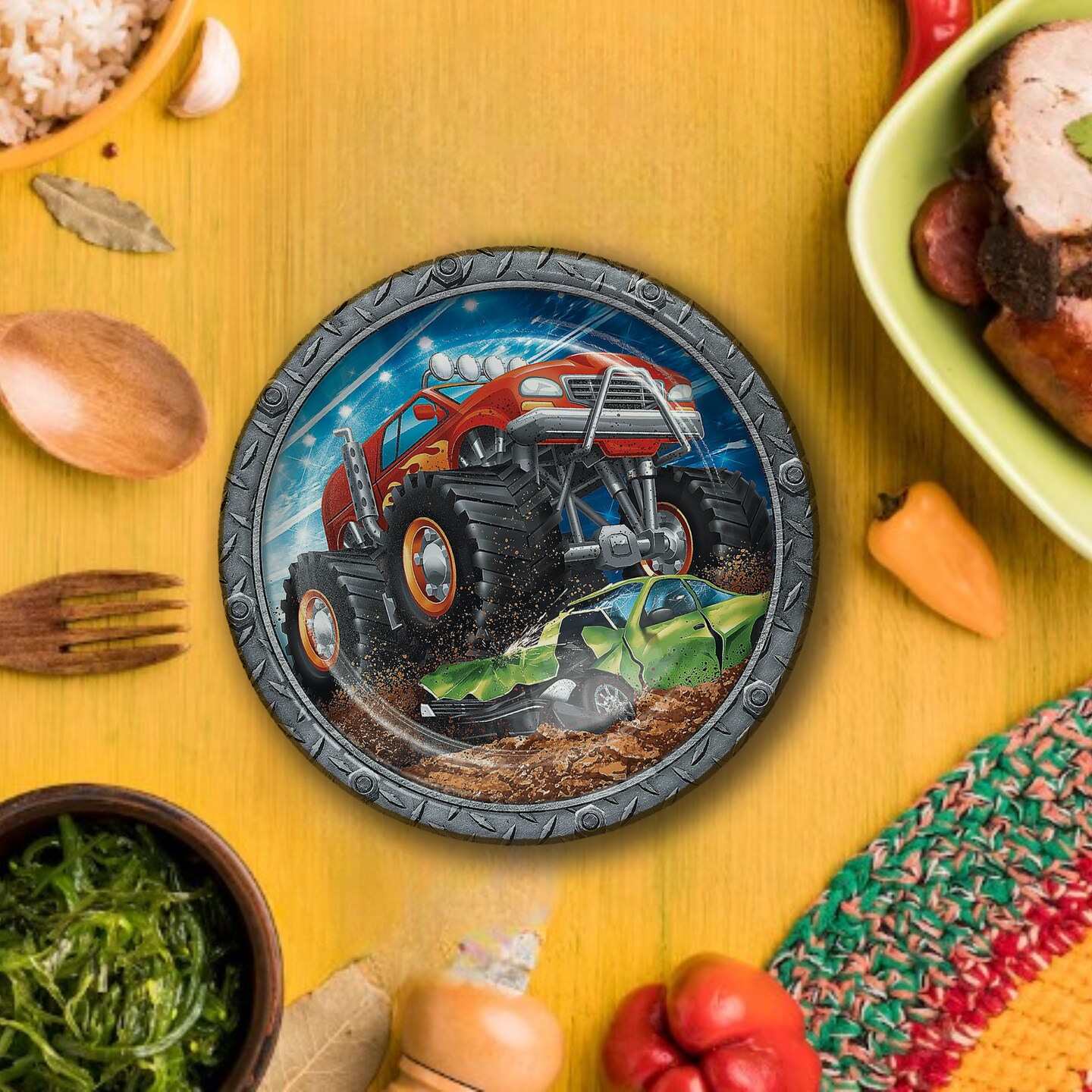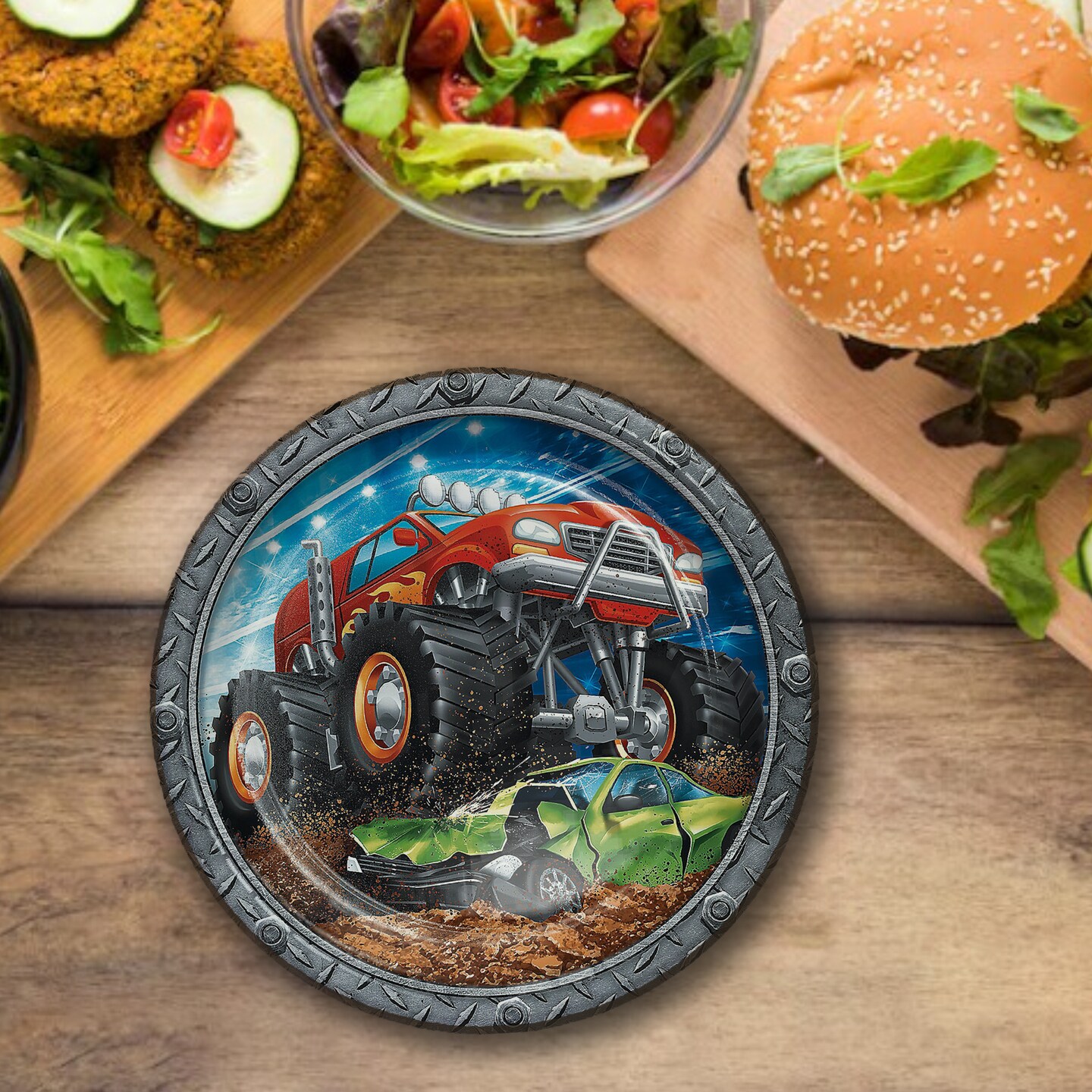 8 Count Monster Truck Party Paper Dinner Plates 8.75" Disposable Birthday Plates
