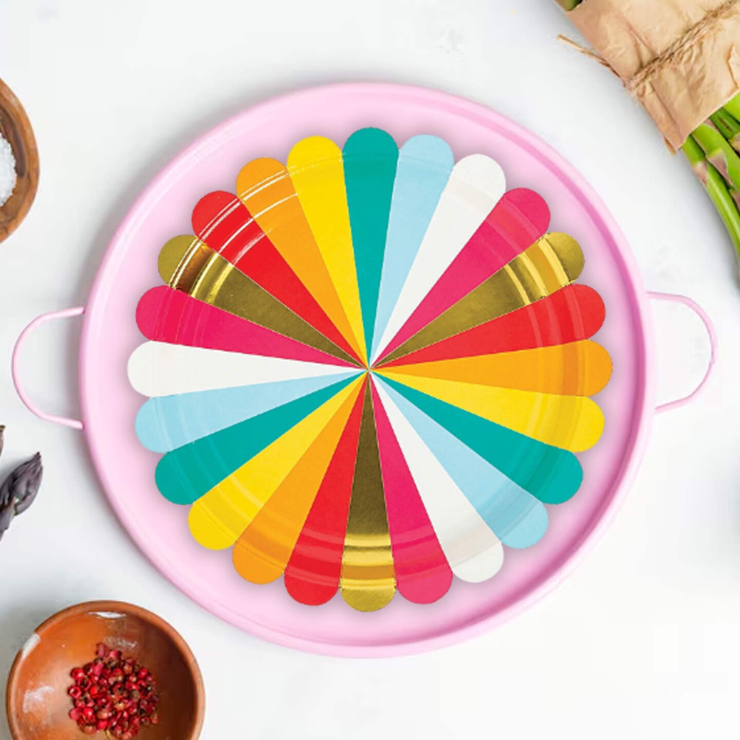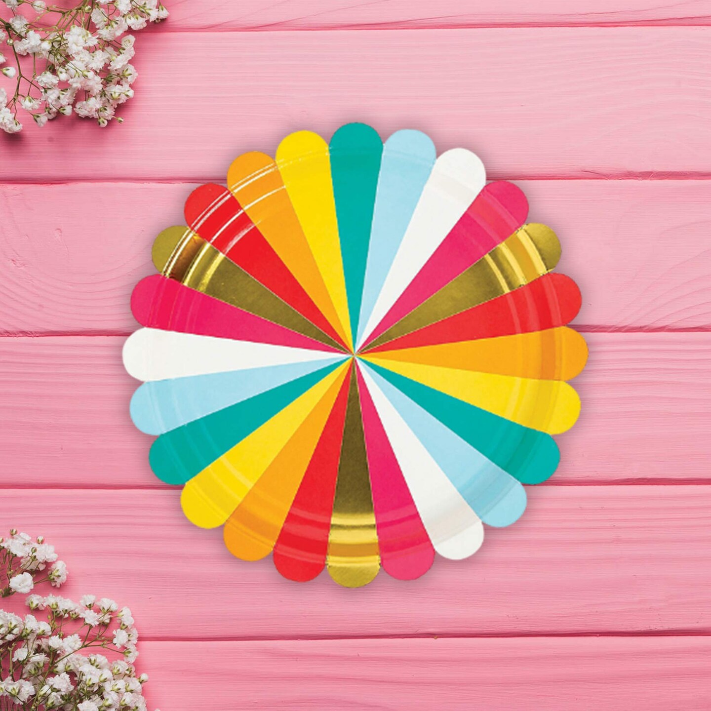8 Count Multicolored Paper Dinner Plates Disposable Party Celebrations Bright 9"