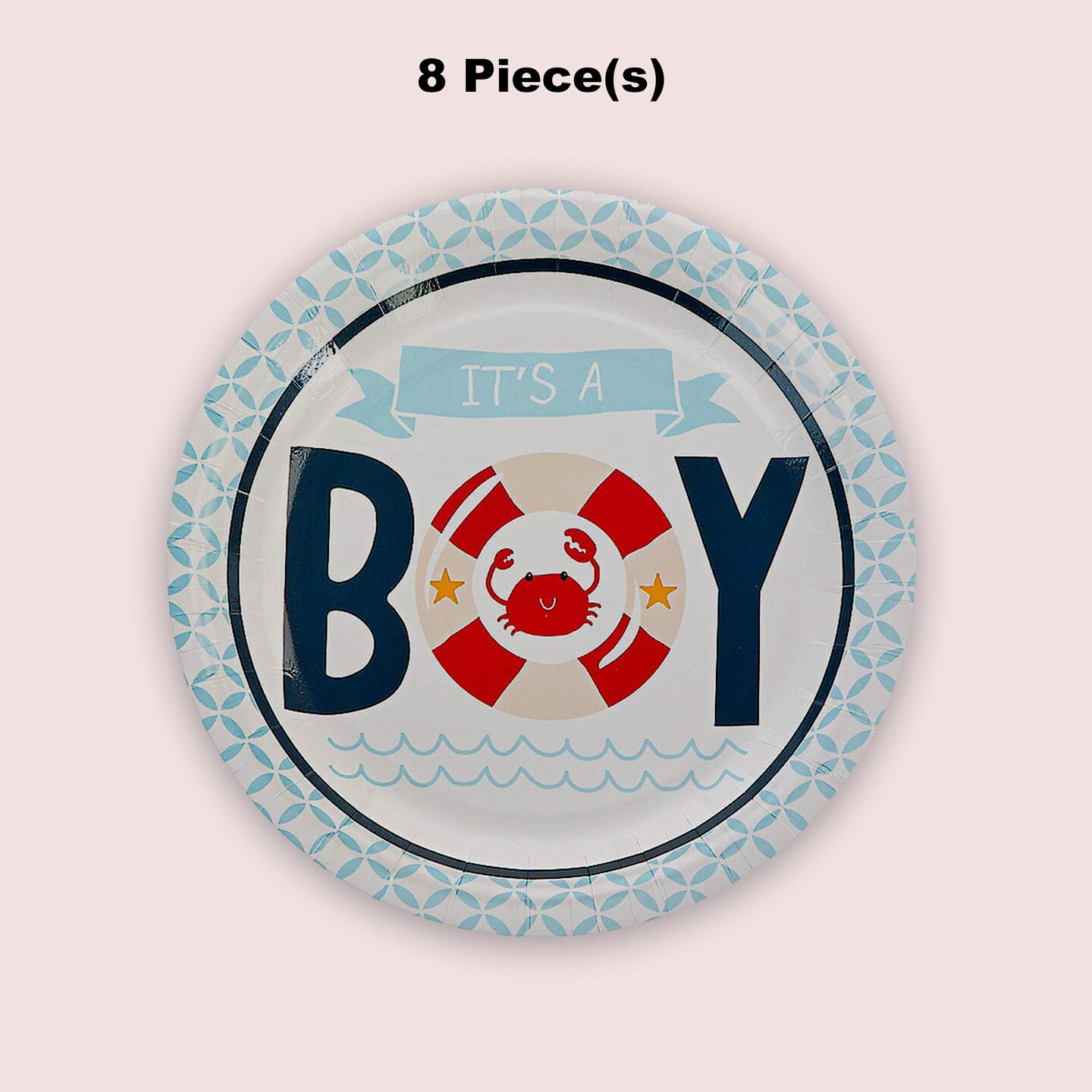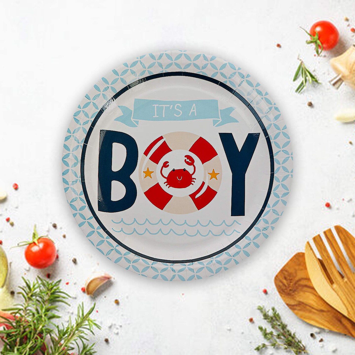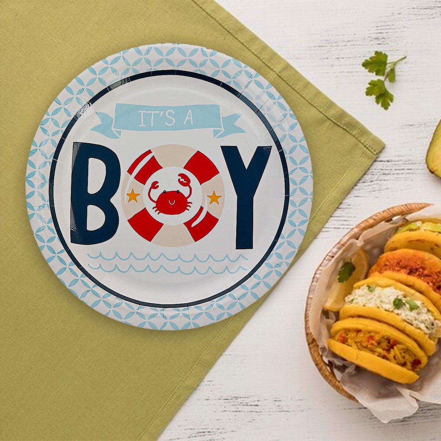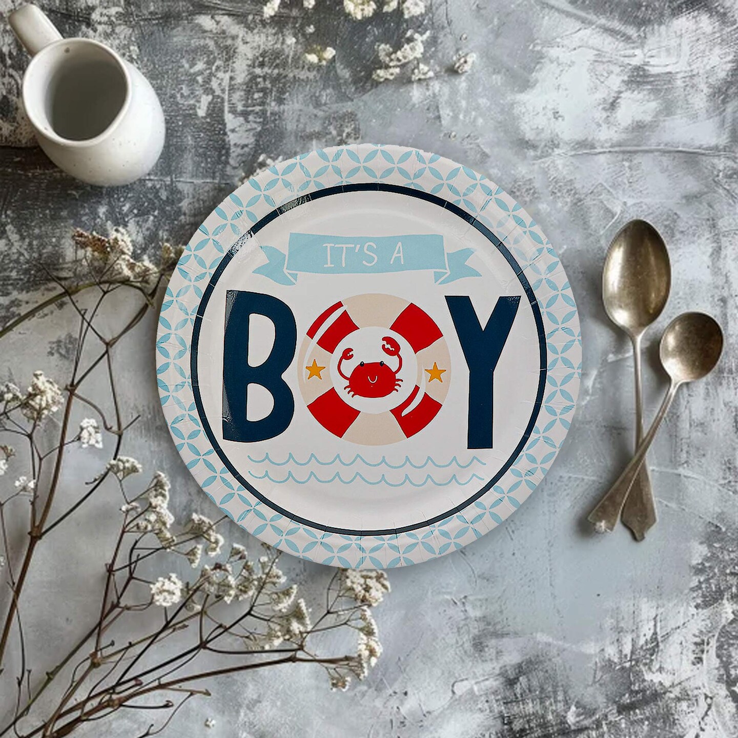 8 Count Nautical Baby Shower Paper Dessert Plates 7 3/8" Boy Baby Shower Tableware