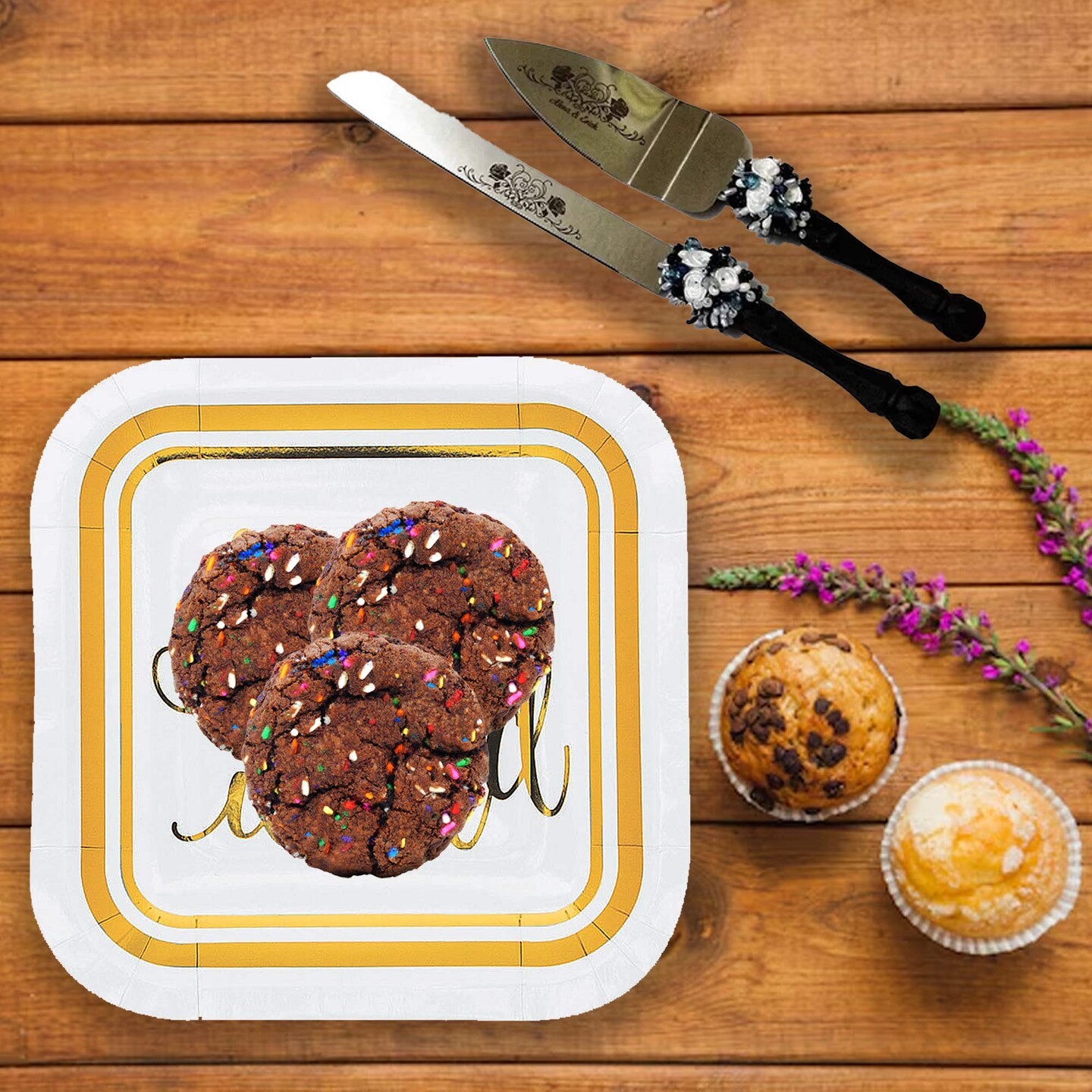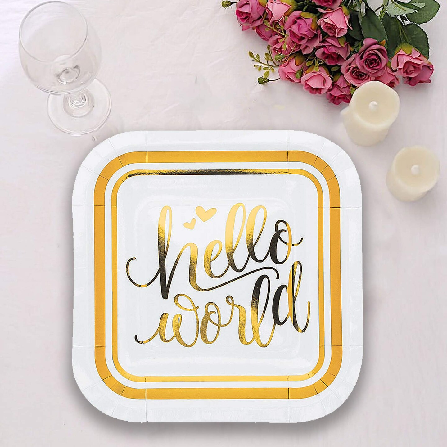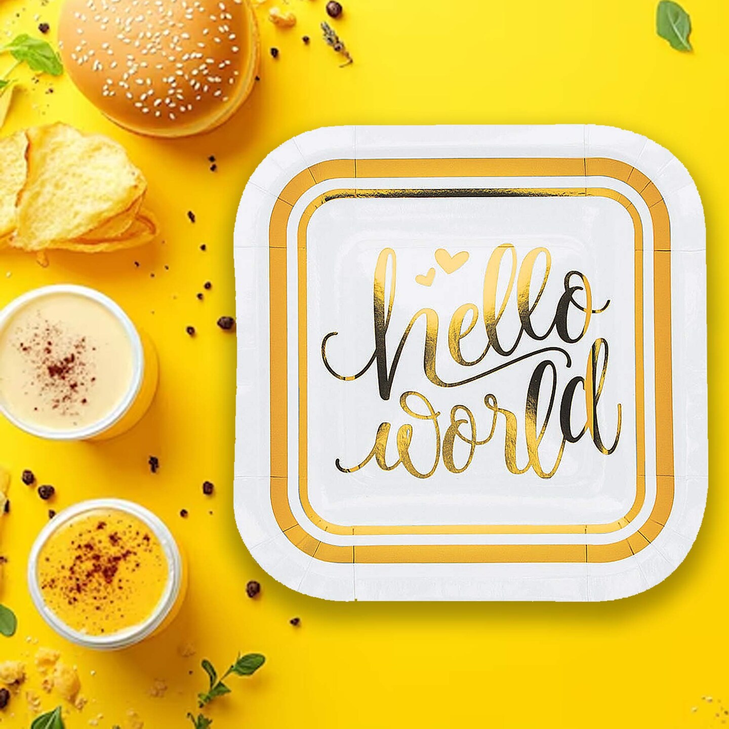 8 Count Oh Baby Gold Hello World Square Dessert Plates 7" Baby Shower Paper Plates