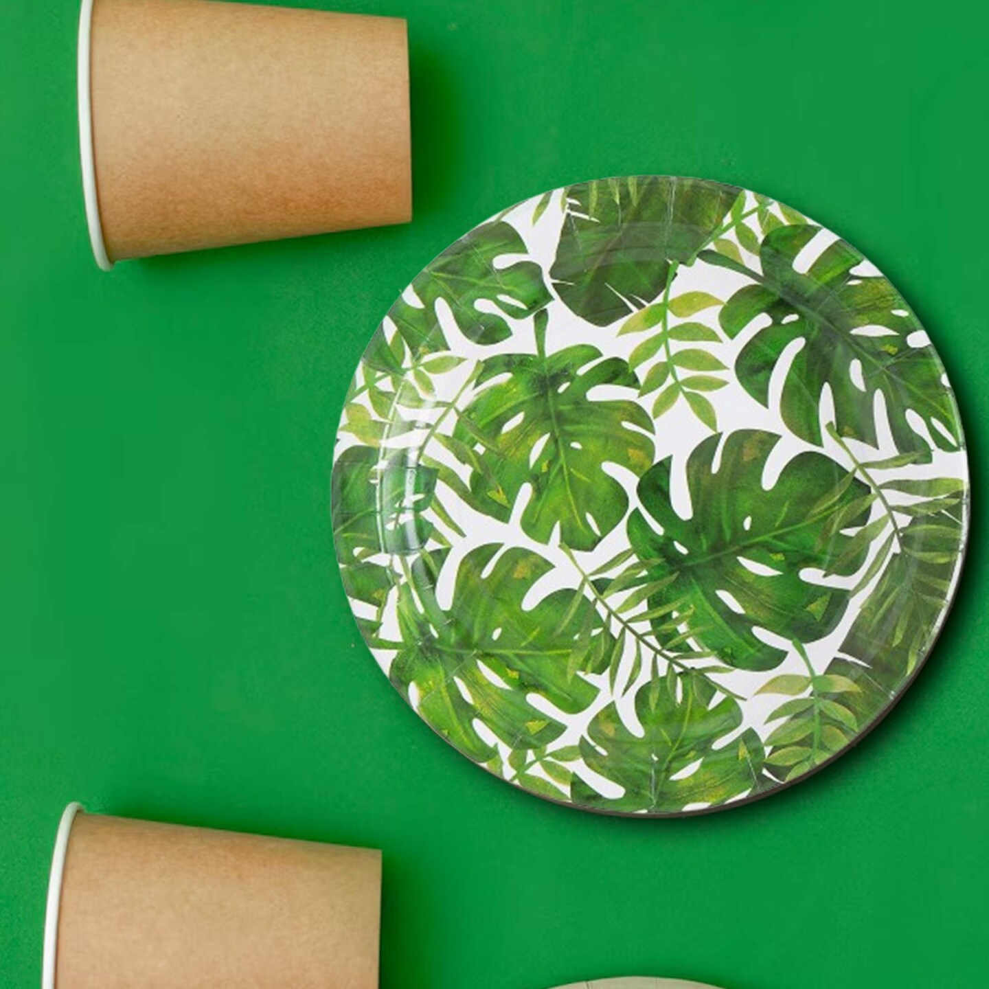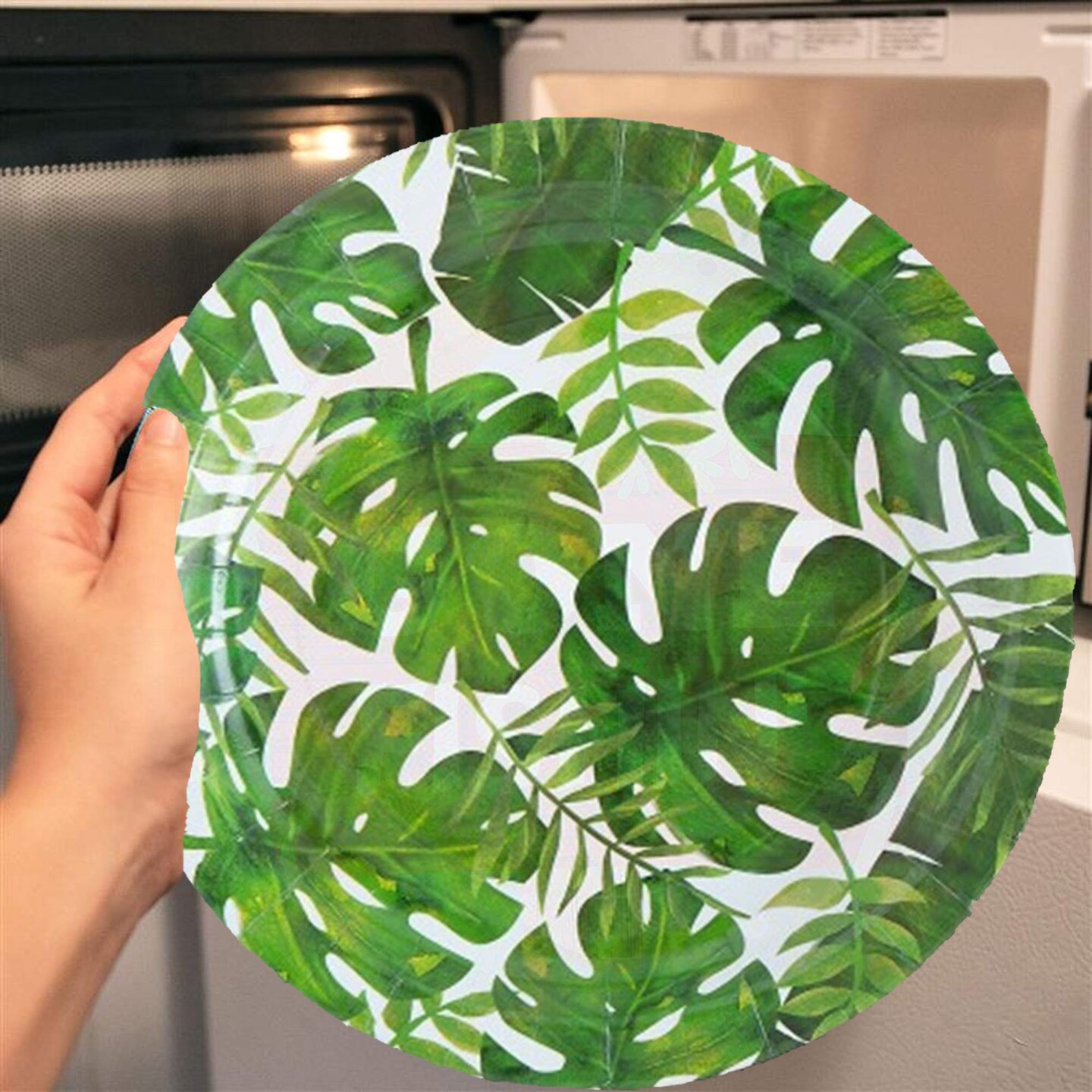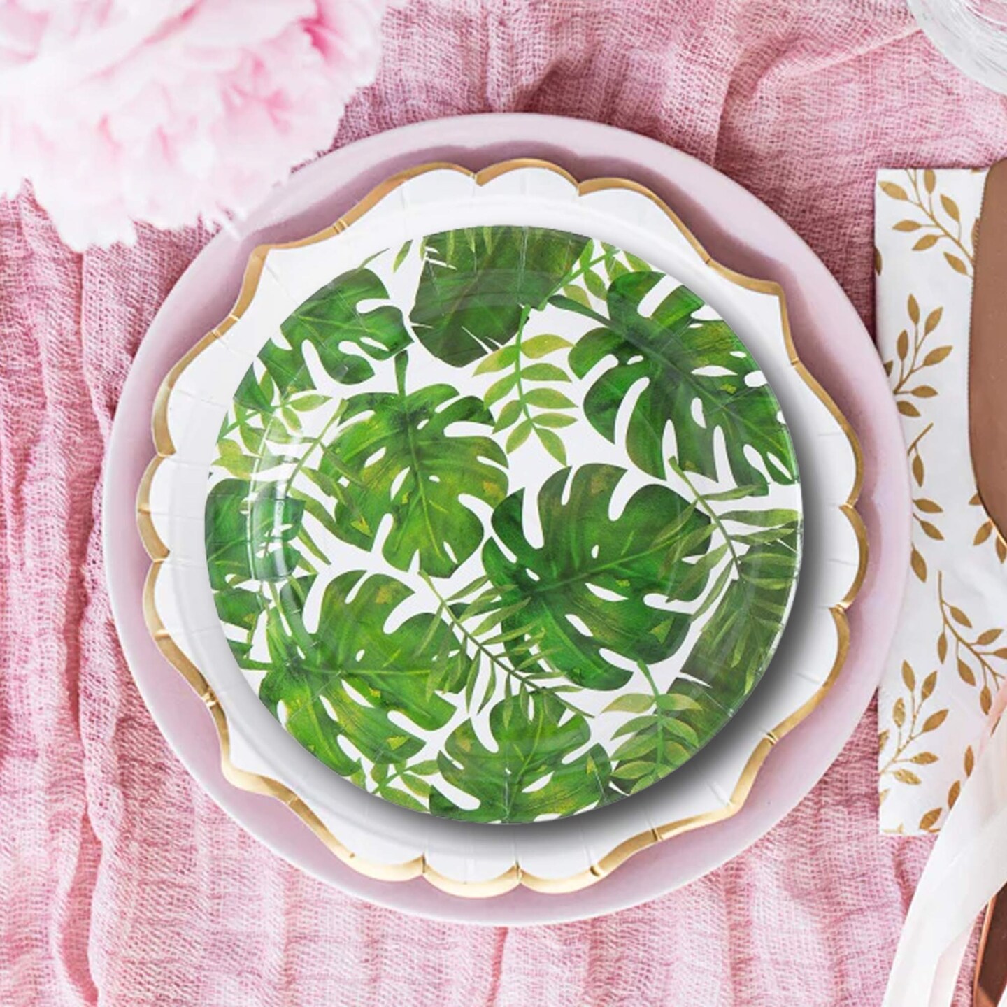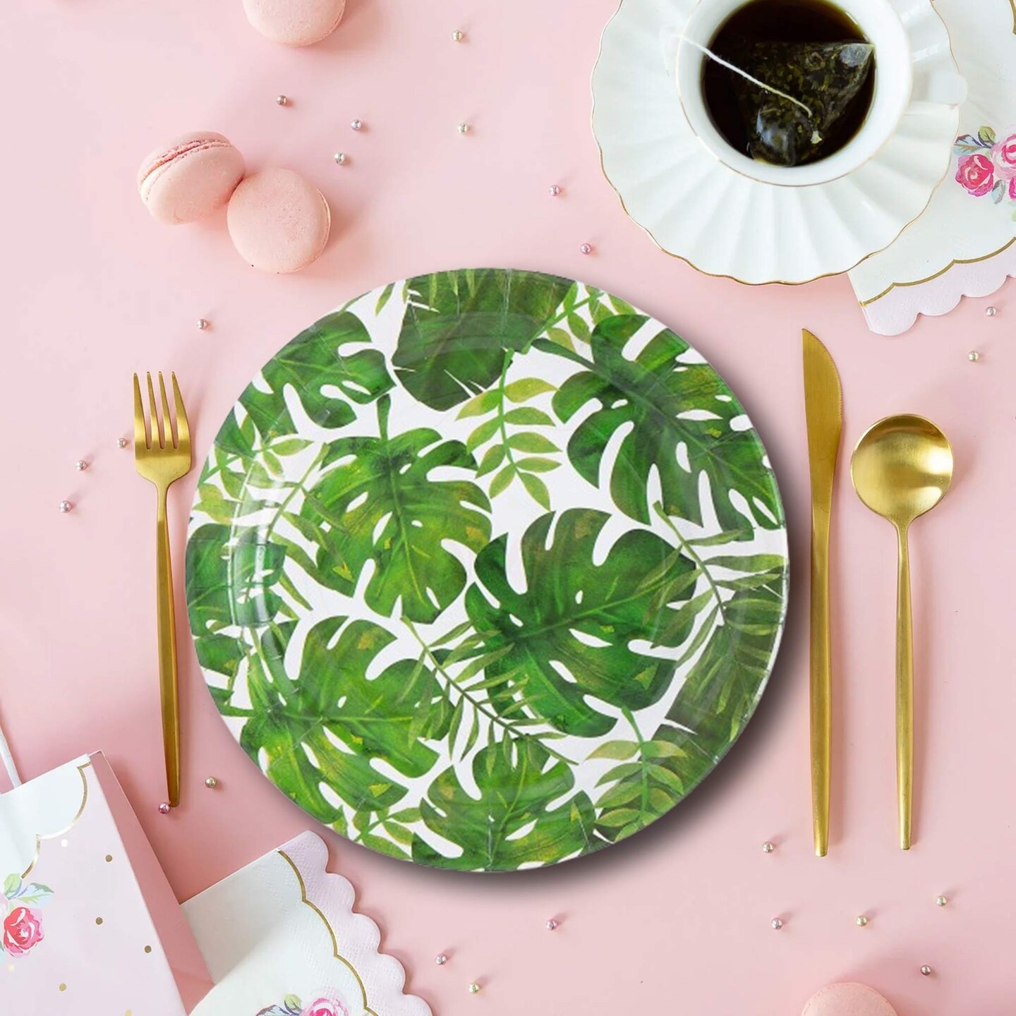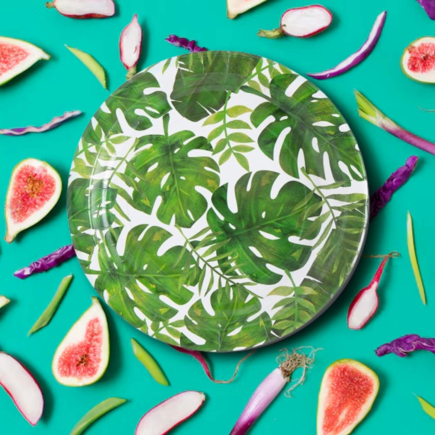 8 Count Palm Leaf Tropical Party Paper Dinner Plates 9 Inch for Luau or Summer Celebration