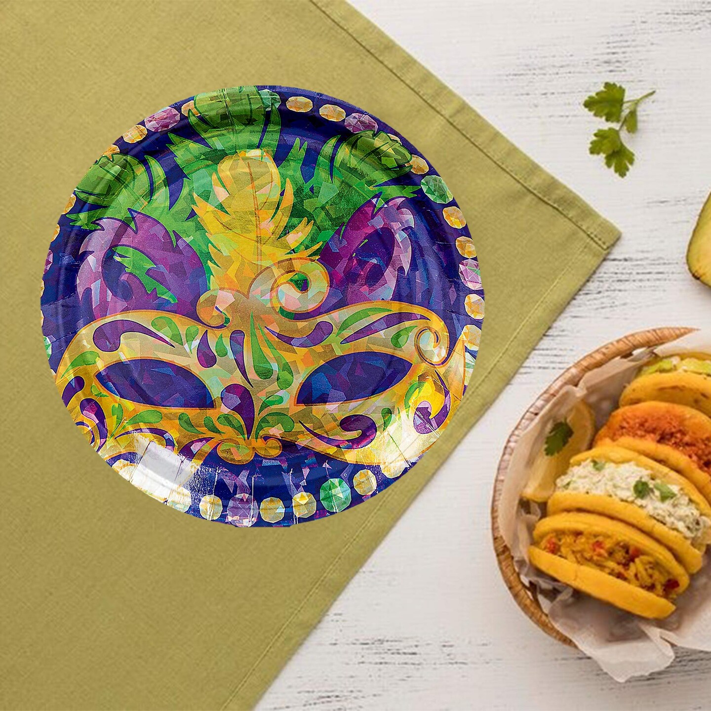 8 Count Prismatic Mardi Gras Dessert Plates 7 Inch Disposable Party Supplies Print Tableware for Birthday Celebration