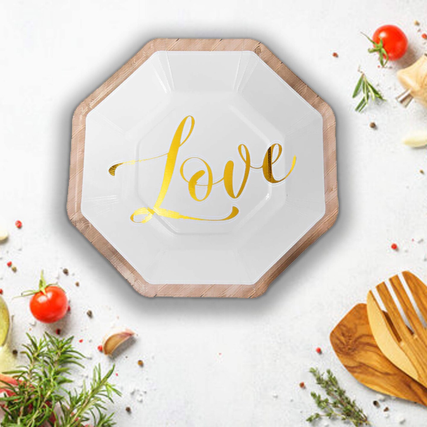 8 Count Rustic Wedding Octagon Paper Dessert Plates 7 Inches