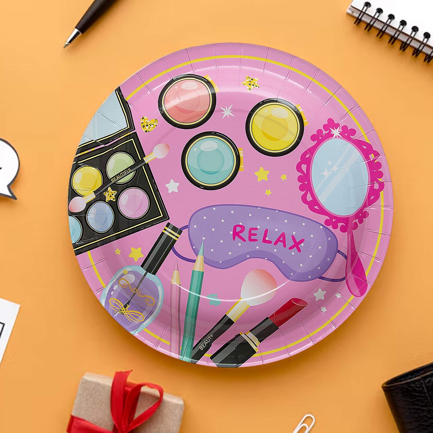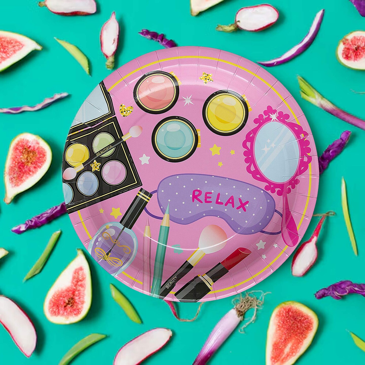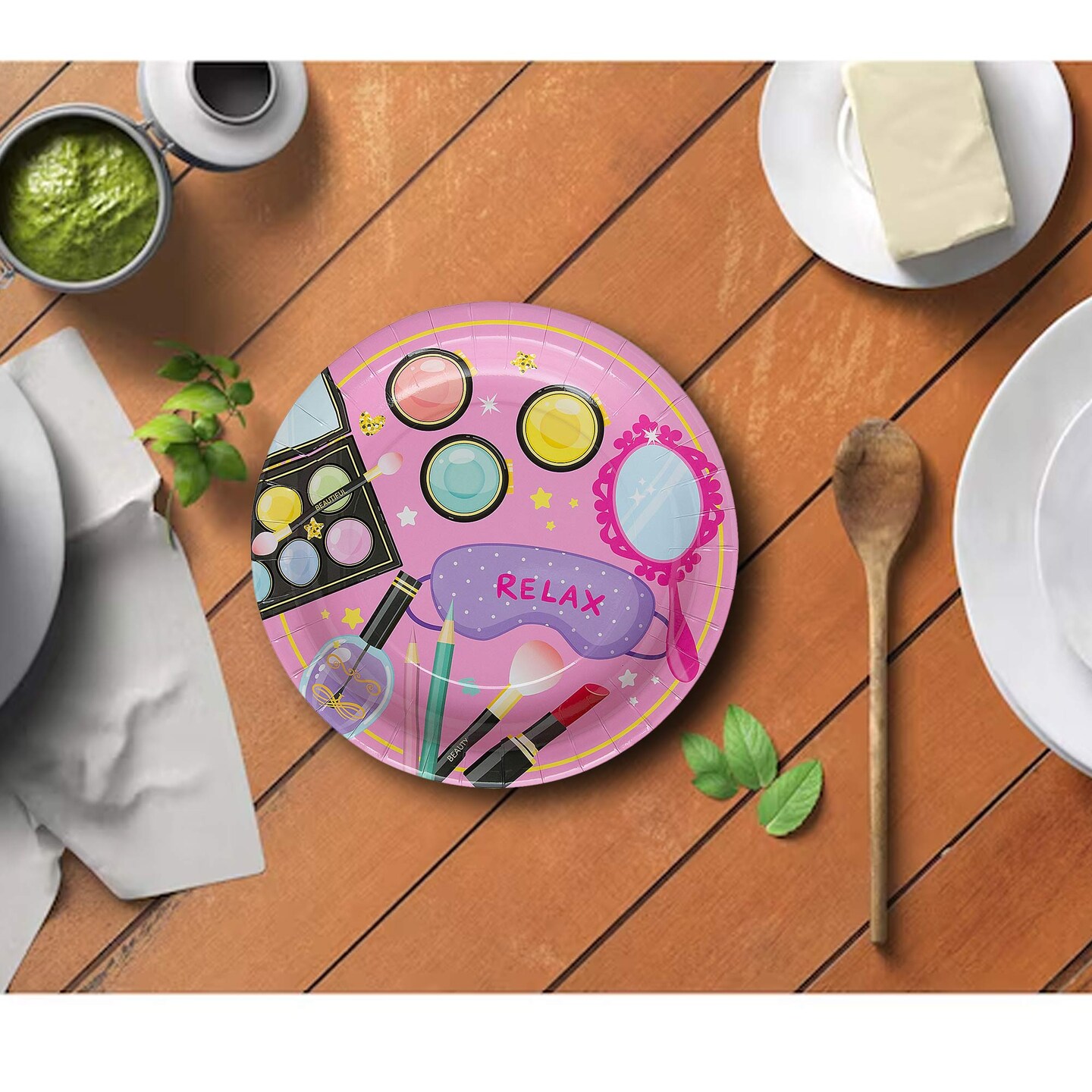 8 Count Spa Party Pink Color Paper Dinner Plates 9 Inch for Girls Night and Bridal Shower