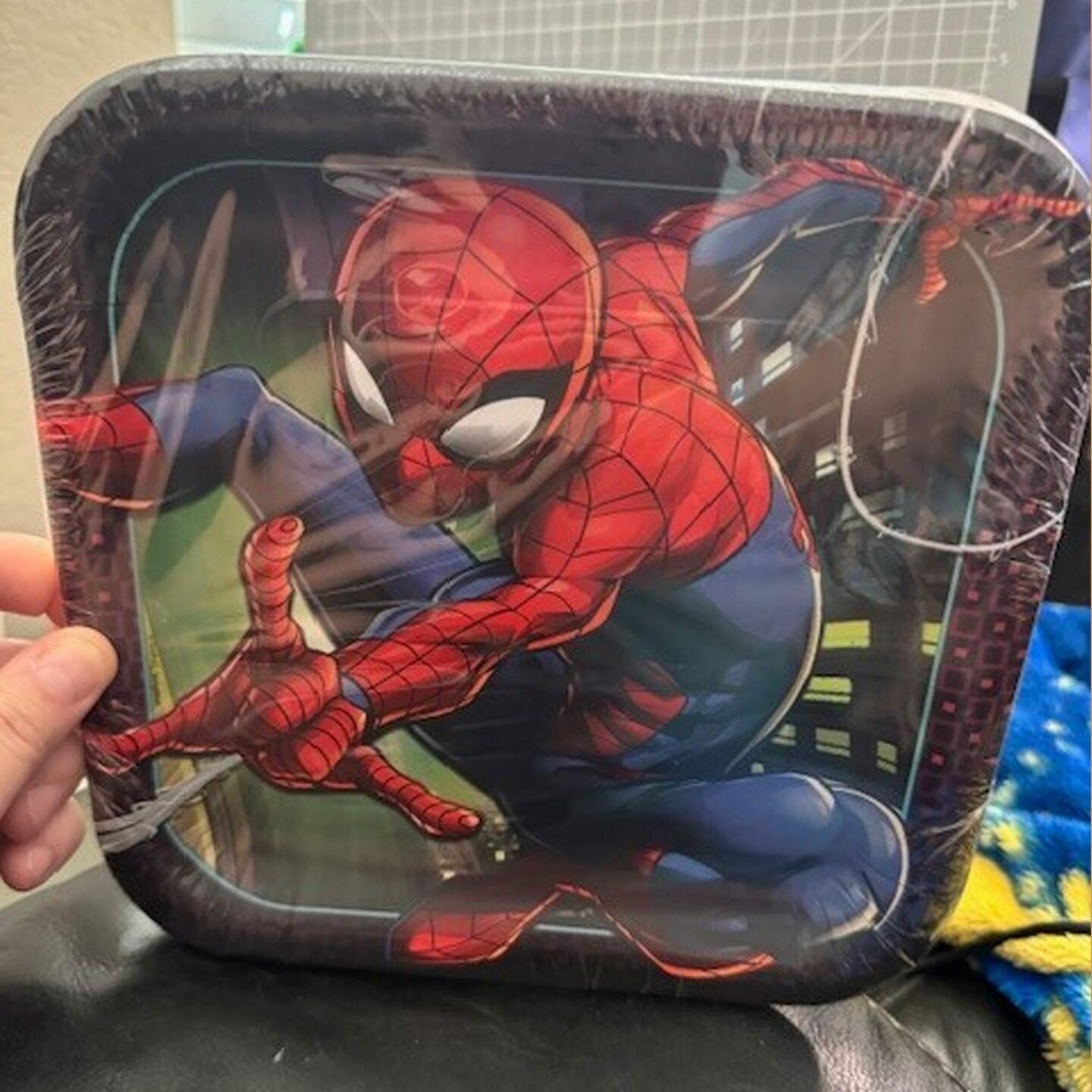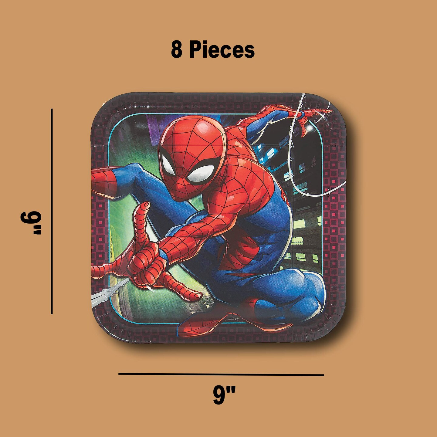 8 Count Spider Hero Party Square Paper Dinner Plates 9" Superhero Birthday Plates for Kids