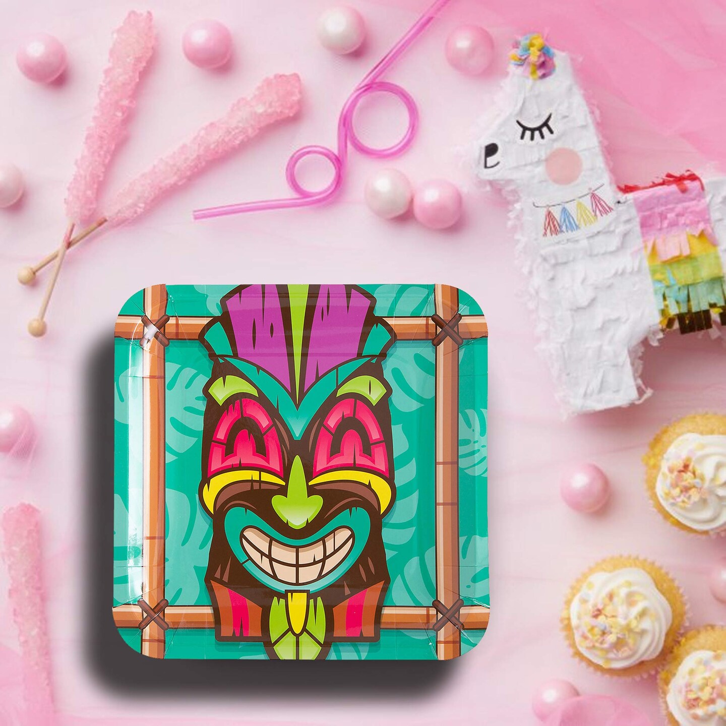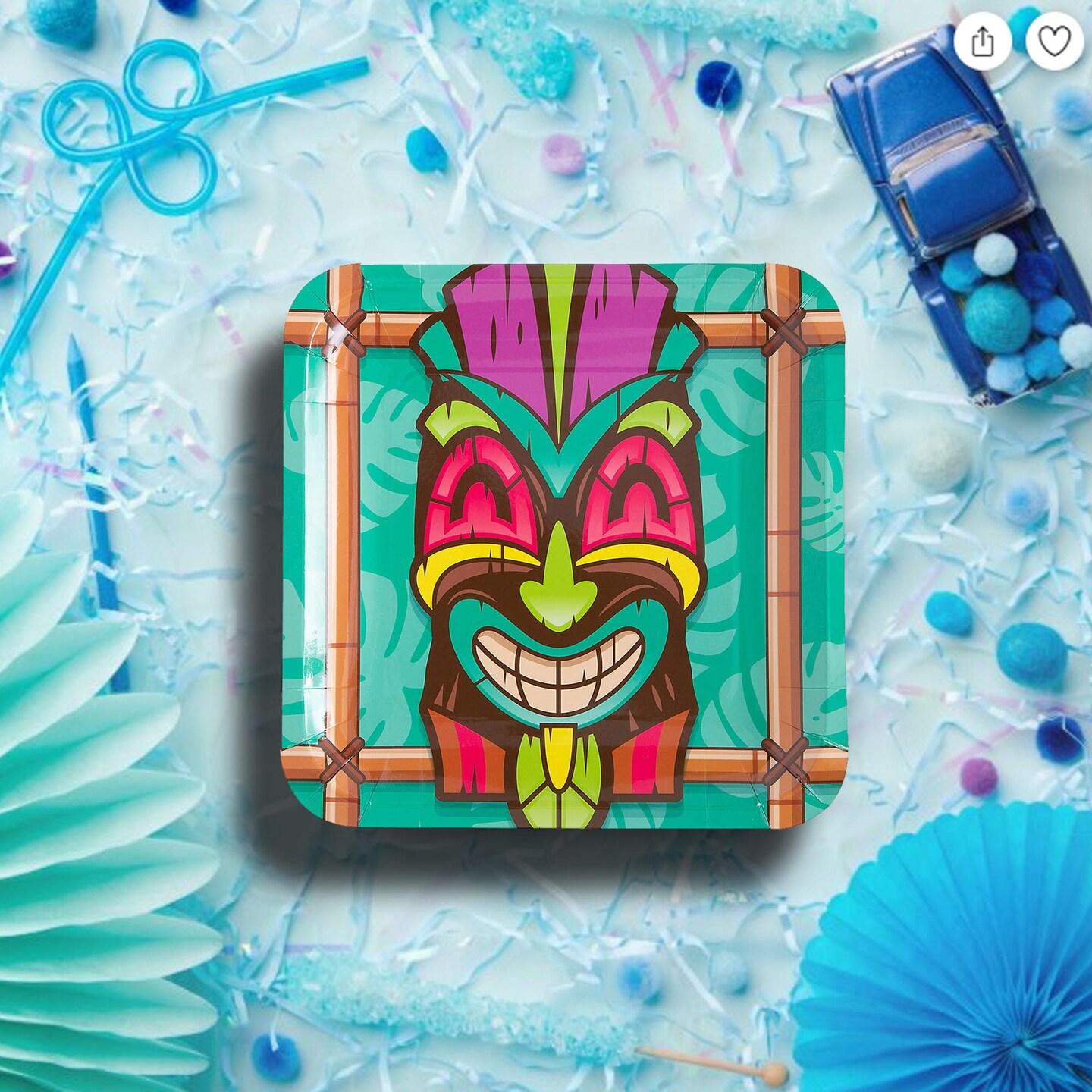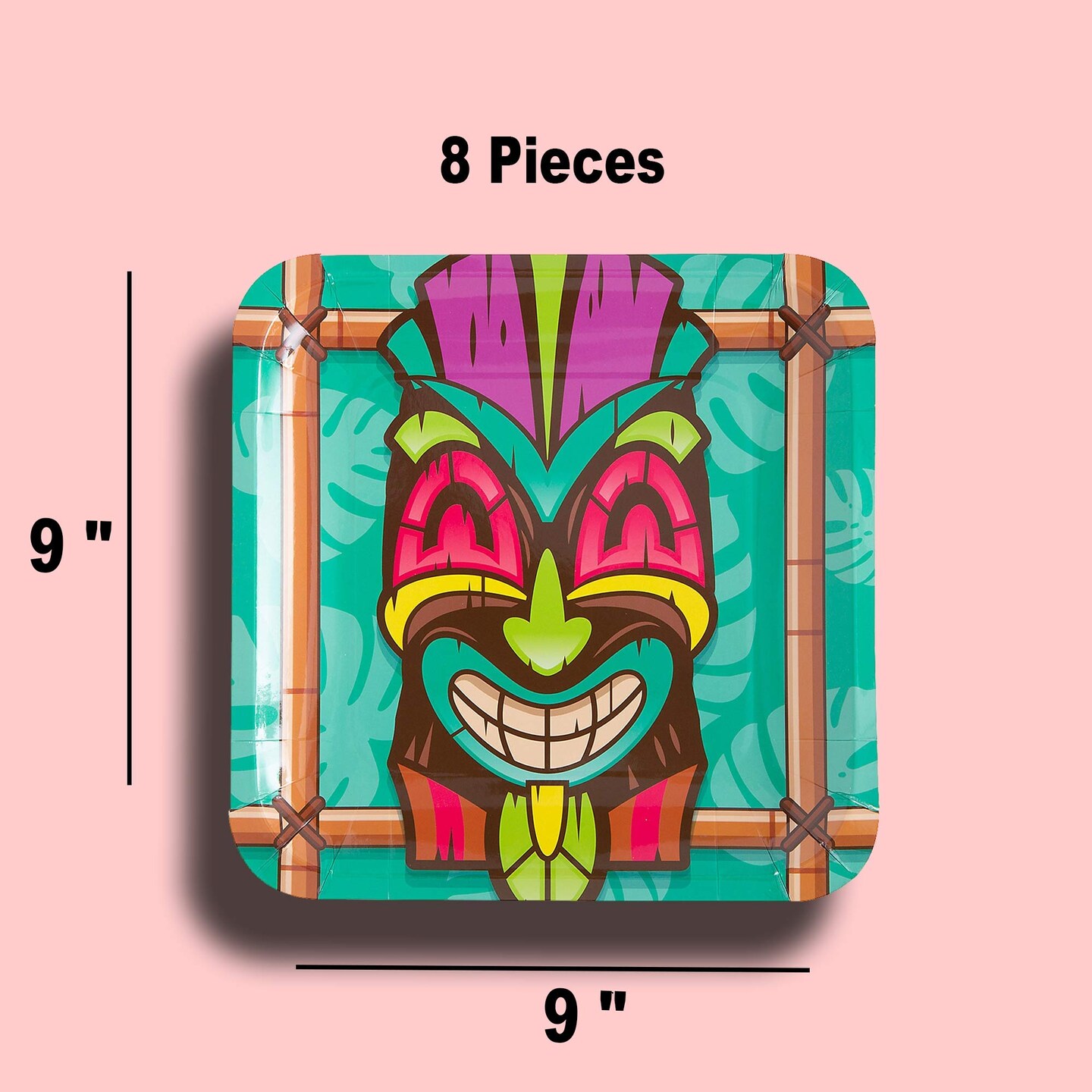 8 Count Teal Tiki Paper Dinner Plates 9" Luau Party Tableware