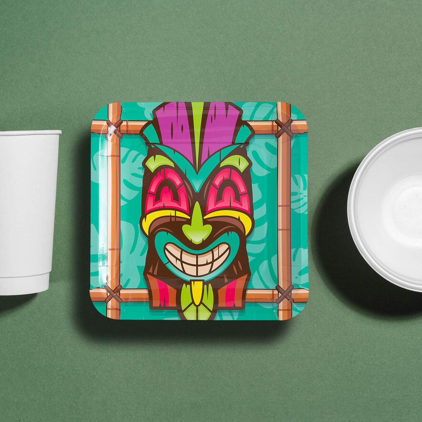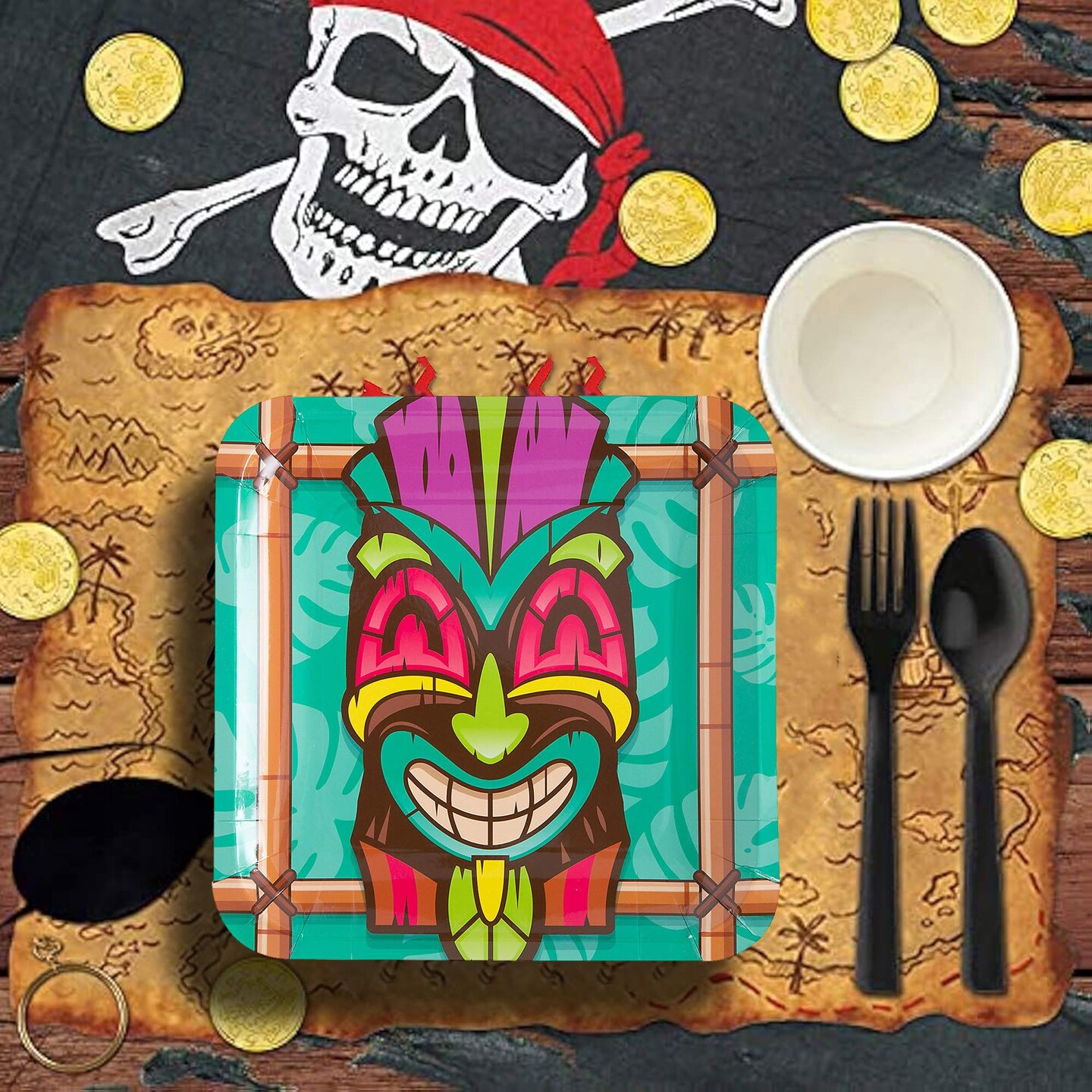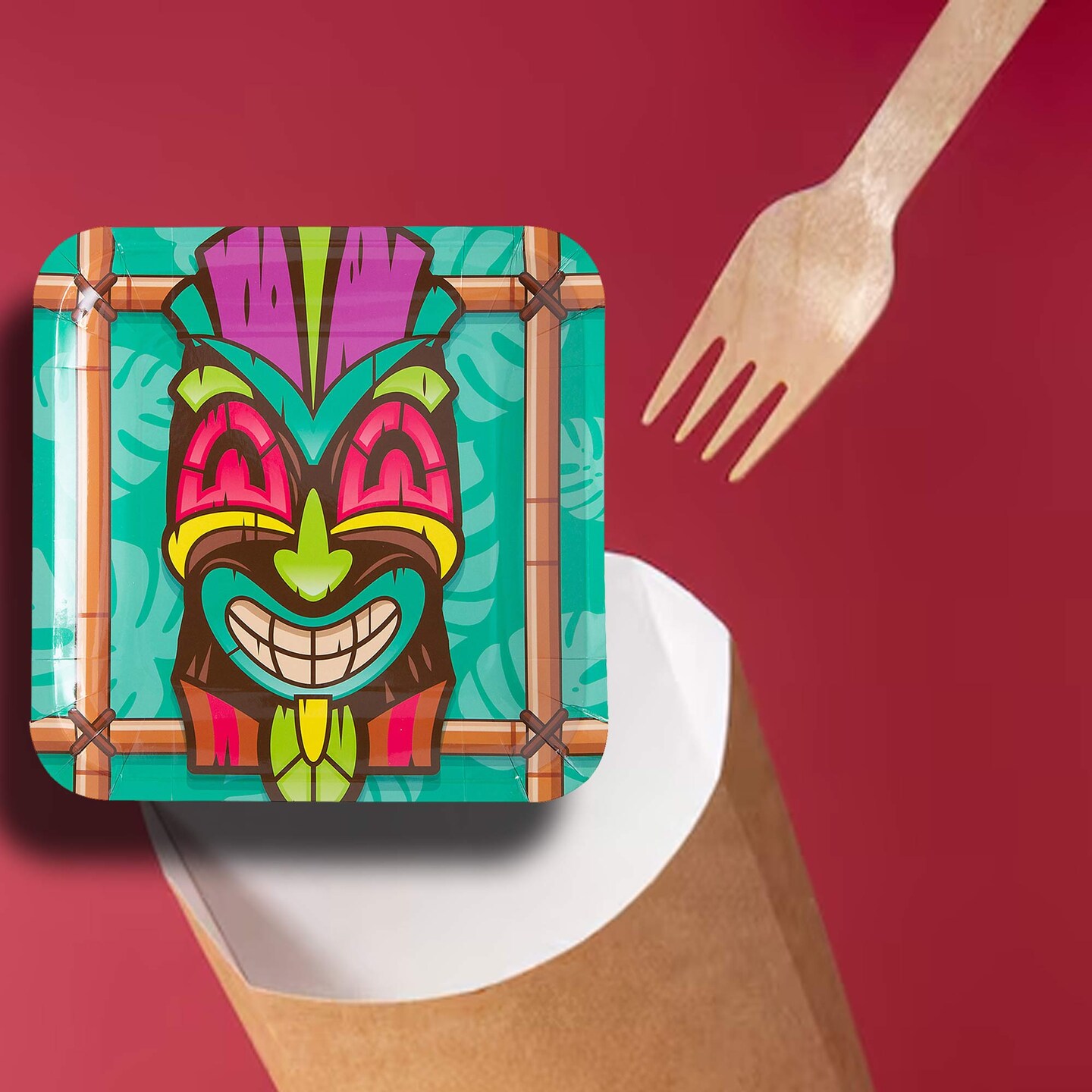 8 Count Teal Tiki Paper Dinner Plates 9" Luau Party Tableware