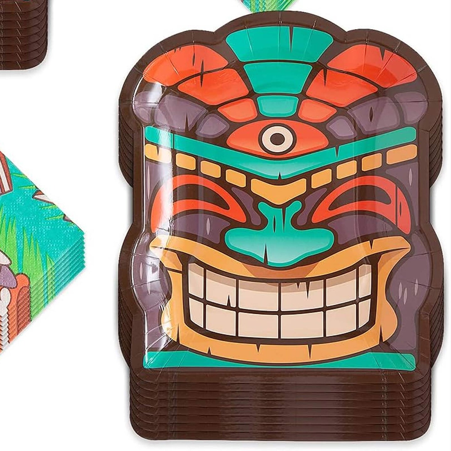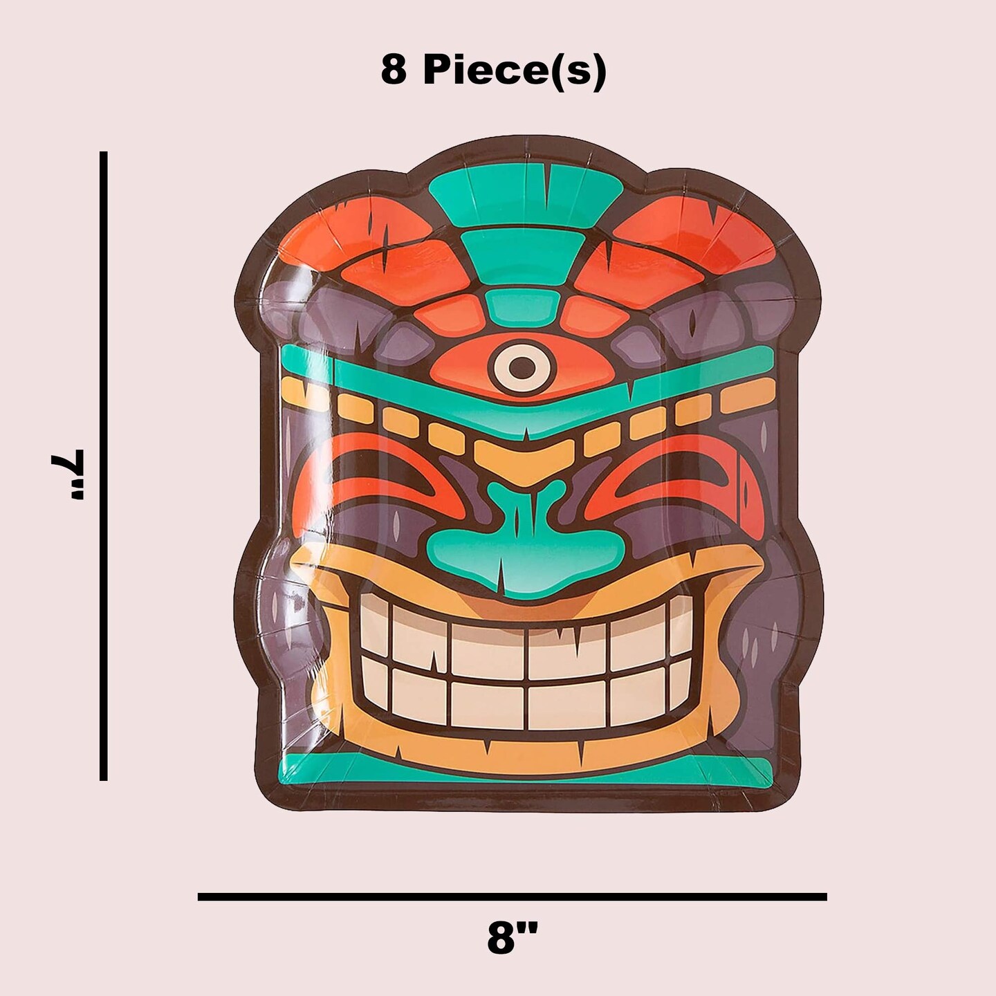 8 Count Tiki Mask Shaped Paper Dessert Plates 7x8 Inch Disposable Party Tableware for Luau Tropical Party