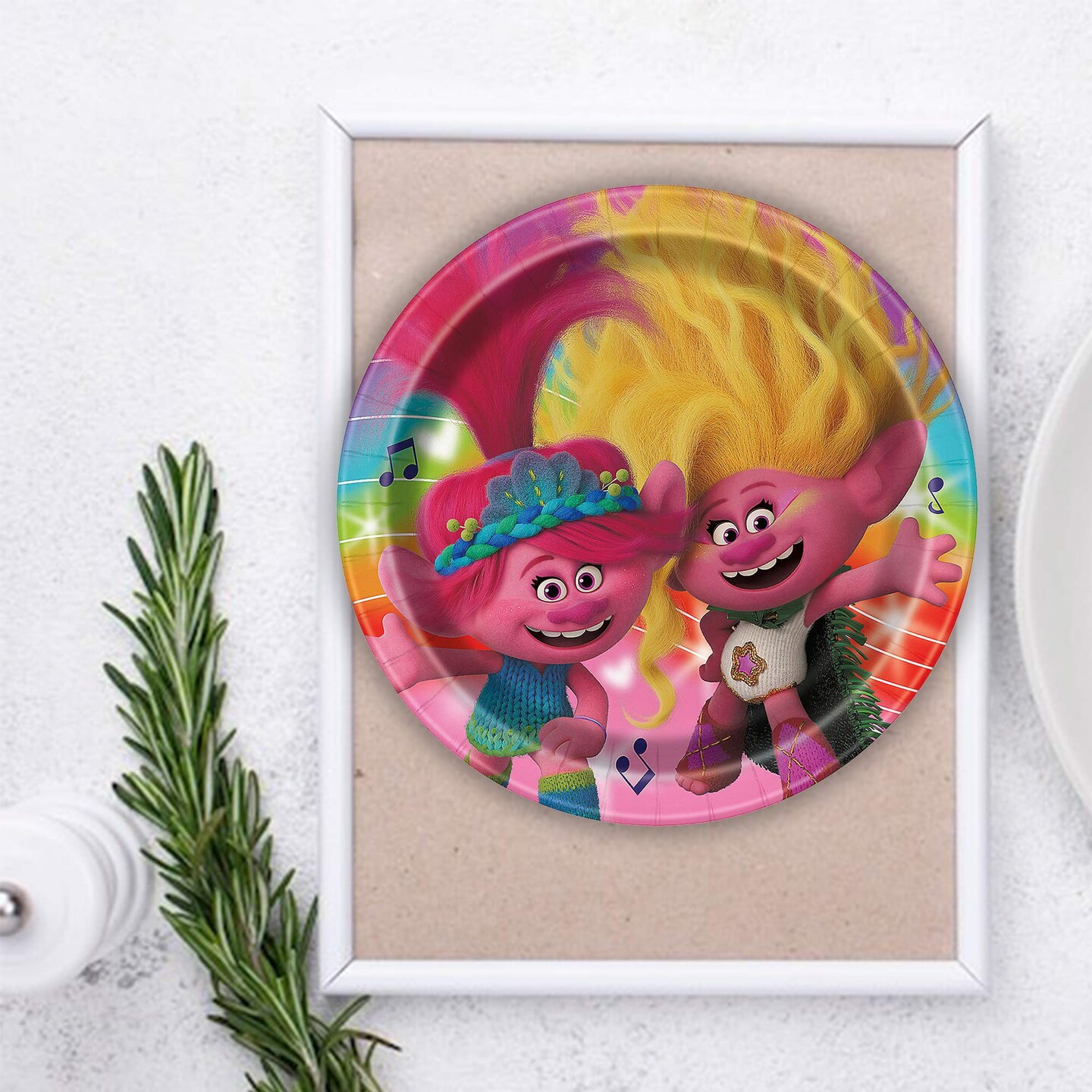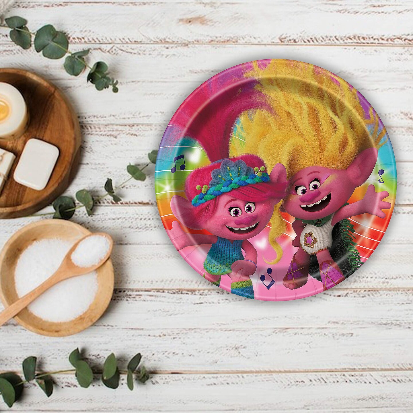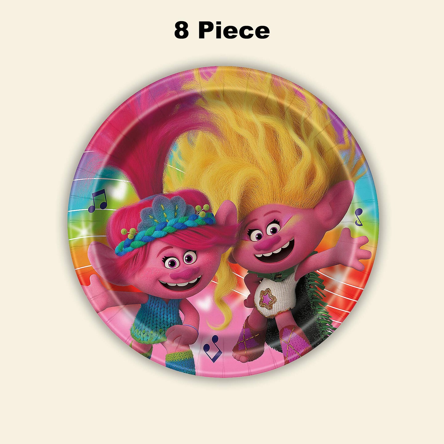 8 Count Trolls Paper Dinner Plates for Birthday Party Supplies and Kids Celebration Use 9 Inch
