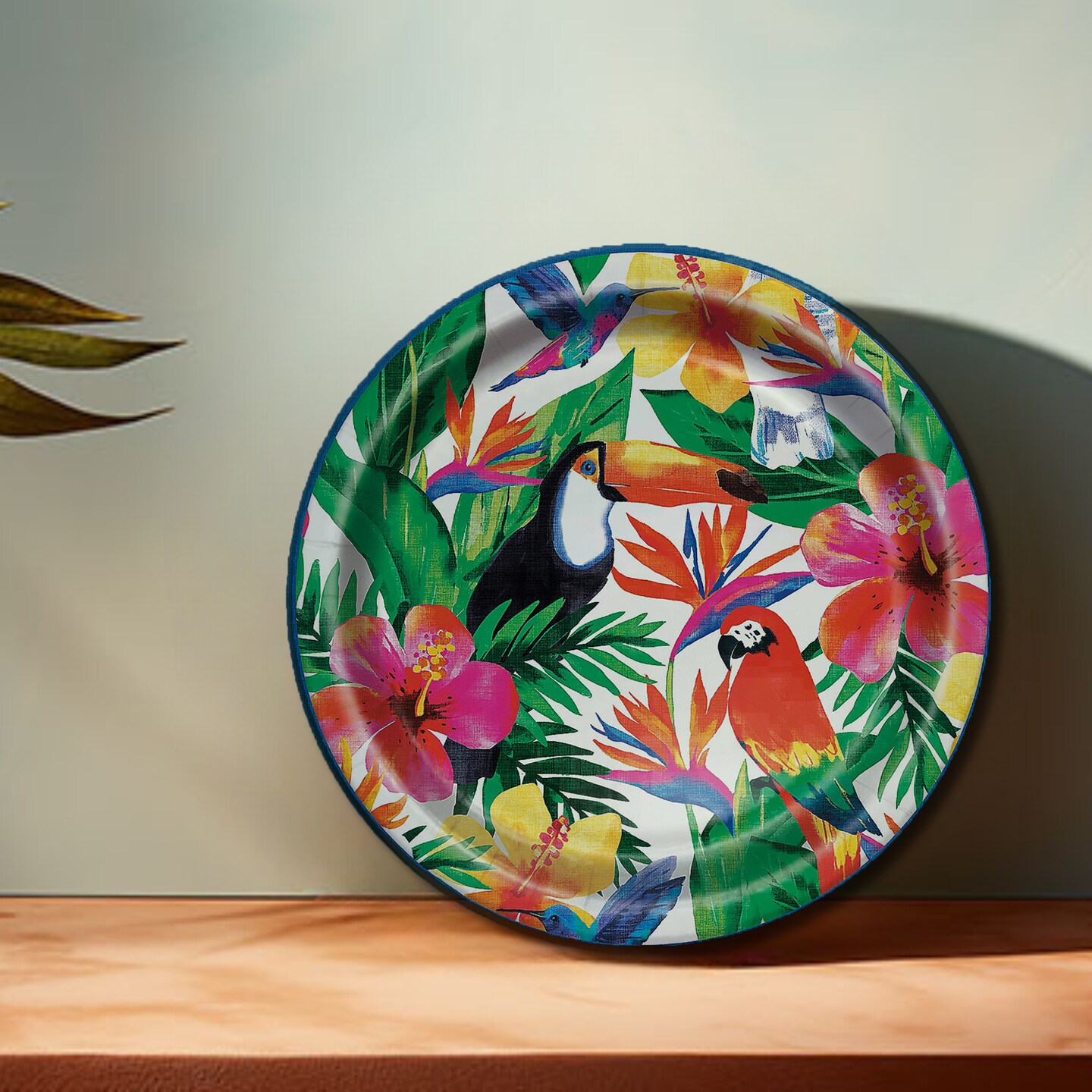 8 Count Tropical Palm Leaves Luau Party Paper Dinner Plates 9" Tropical Party Supplies